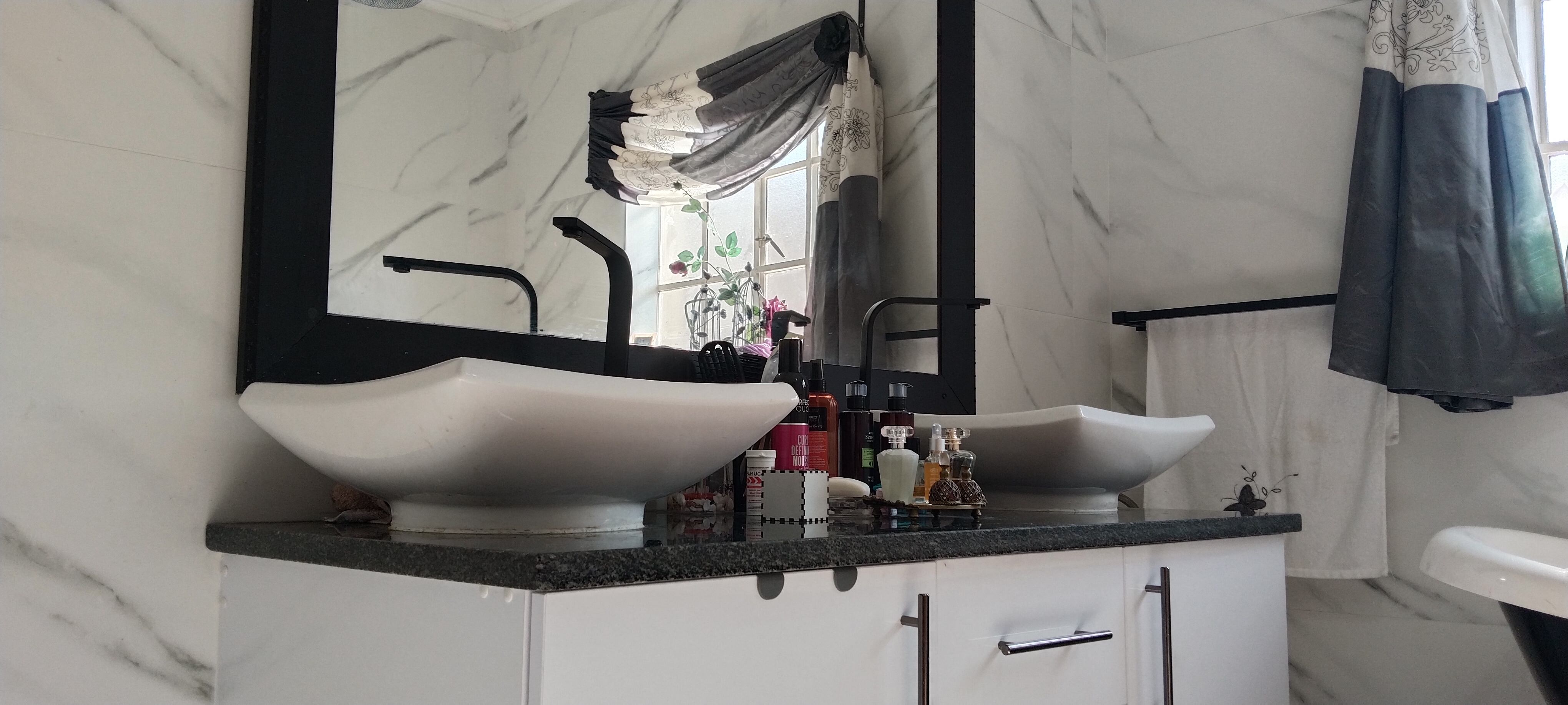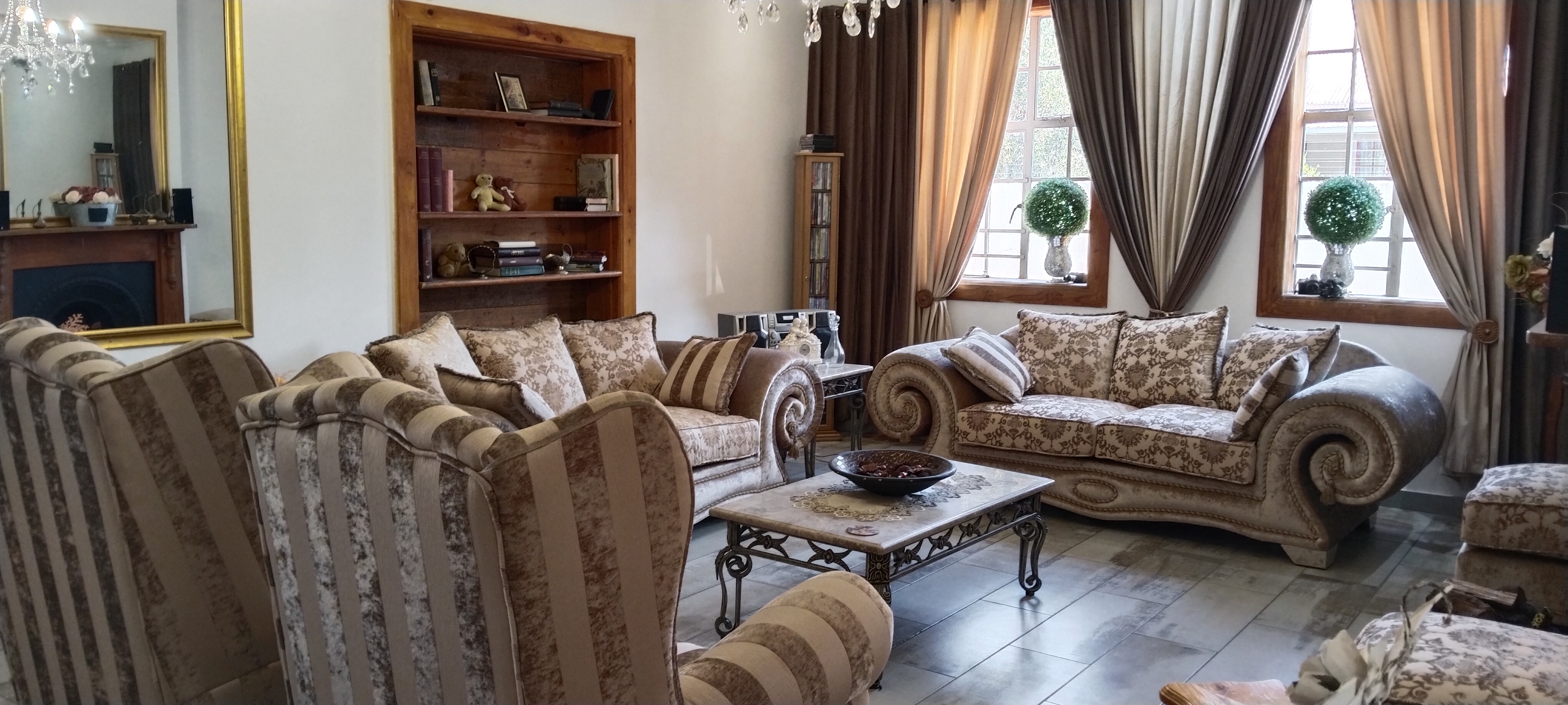 The inviting living areas include a generous lounge adorned with a fireplace, authentic bookshelf, and elegant crystal chandeliers, which also grace the dining room and entrance hall, adding a touch of classic sophistication. A modern kitchen with ample cupboard space features a 5-plate gas stove with rotisserie and multiple plug points — designed to make cooking and hosting a breeze.