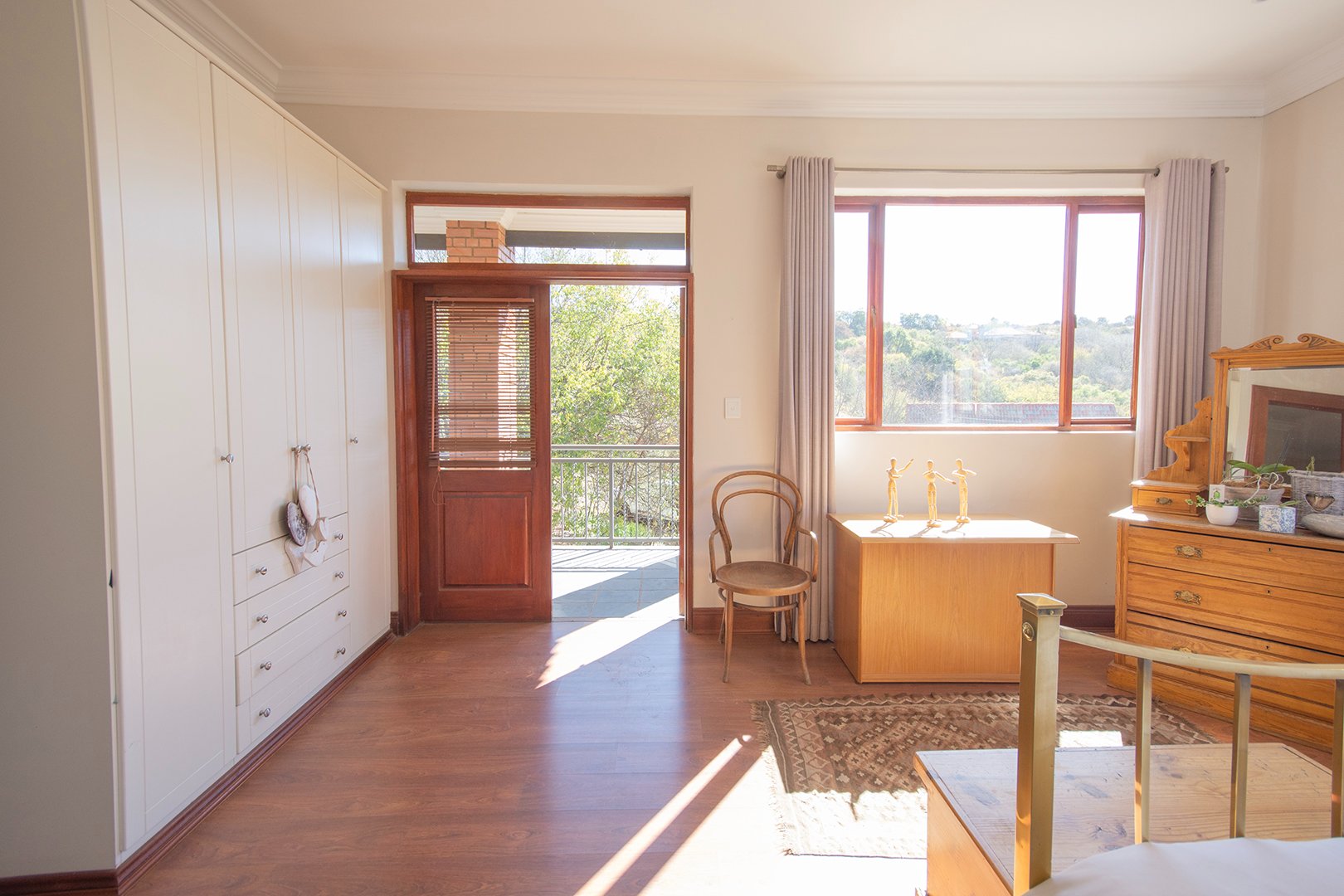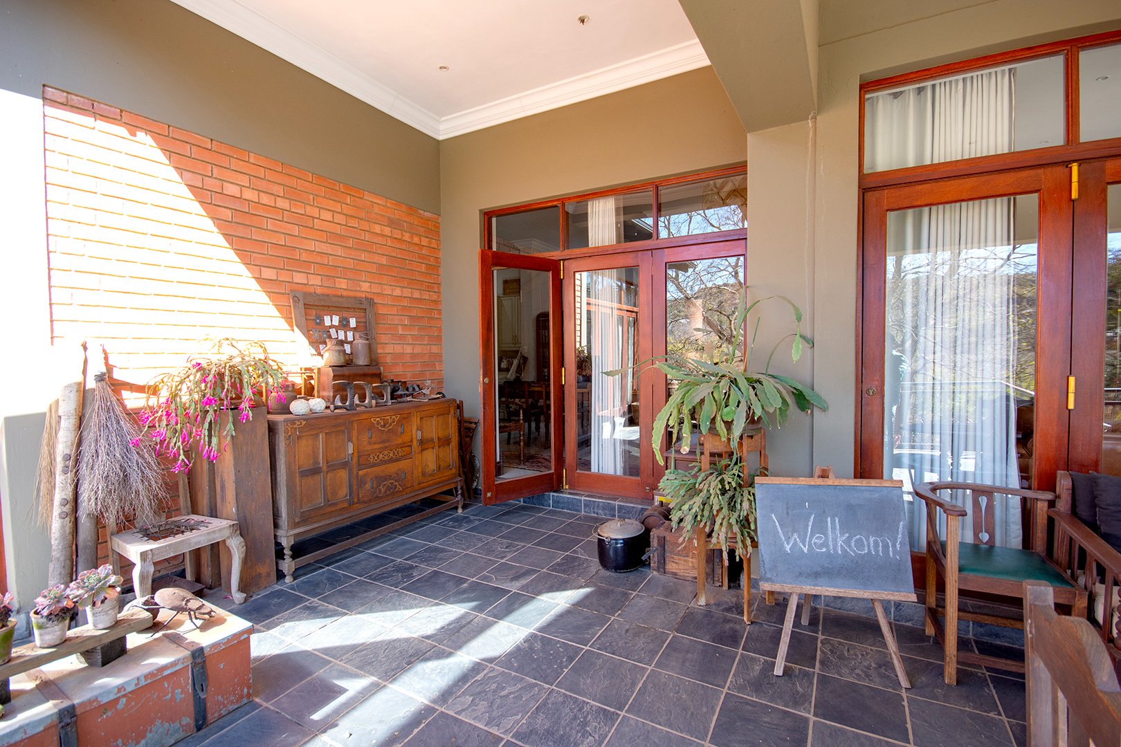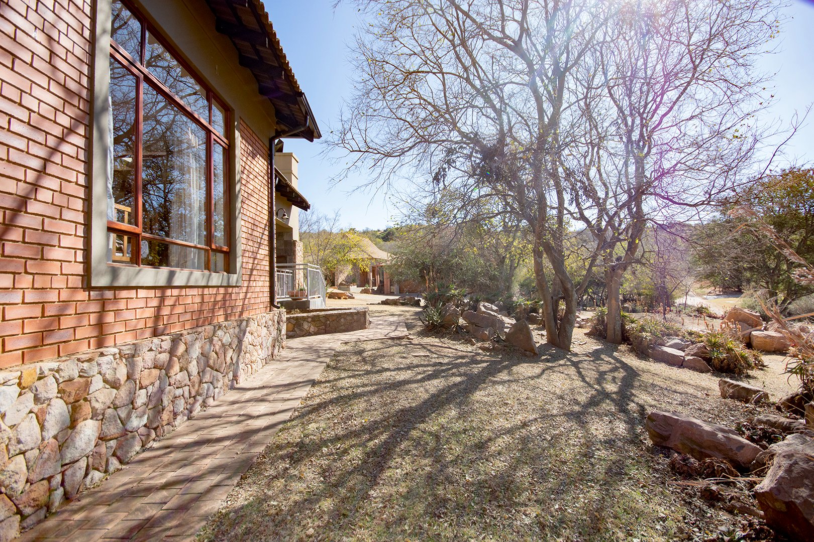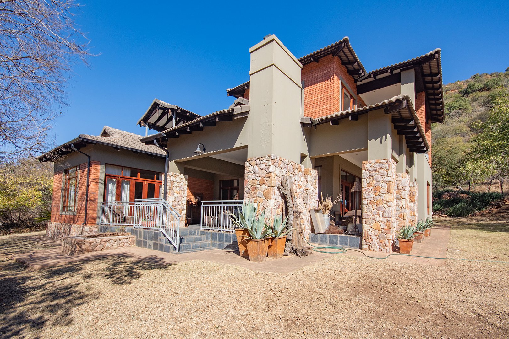 The patio, ideal for entertaining, features a braai area and offers breathtaking views of the surrounding nature. The estate’s abundant wildlife often visits, providing a unique and delightful experience for residents.