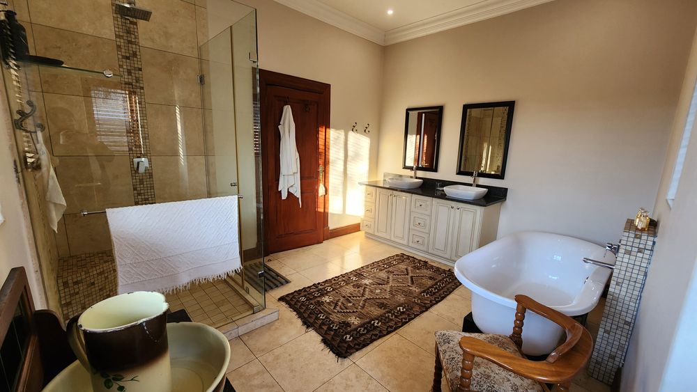 The master suite, positioned to embrace the morning sun with its east-facing orientation, opens entirely onto the entertainment terrace through fold-away doors—a seamless flow that invites nature in. From the moment you rise to the close of day, you're accompanied by the gentle presence of antelope grazing freely, just beyond your doorstep.