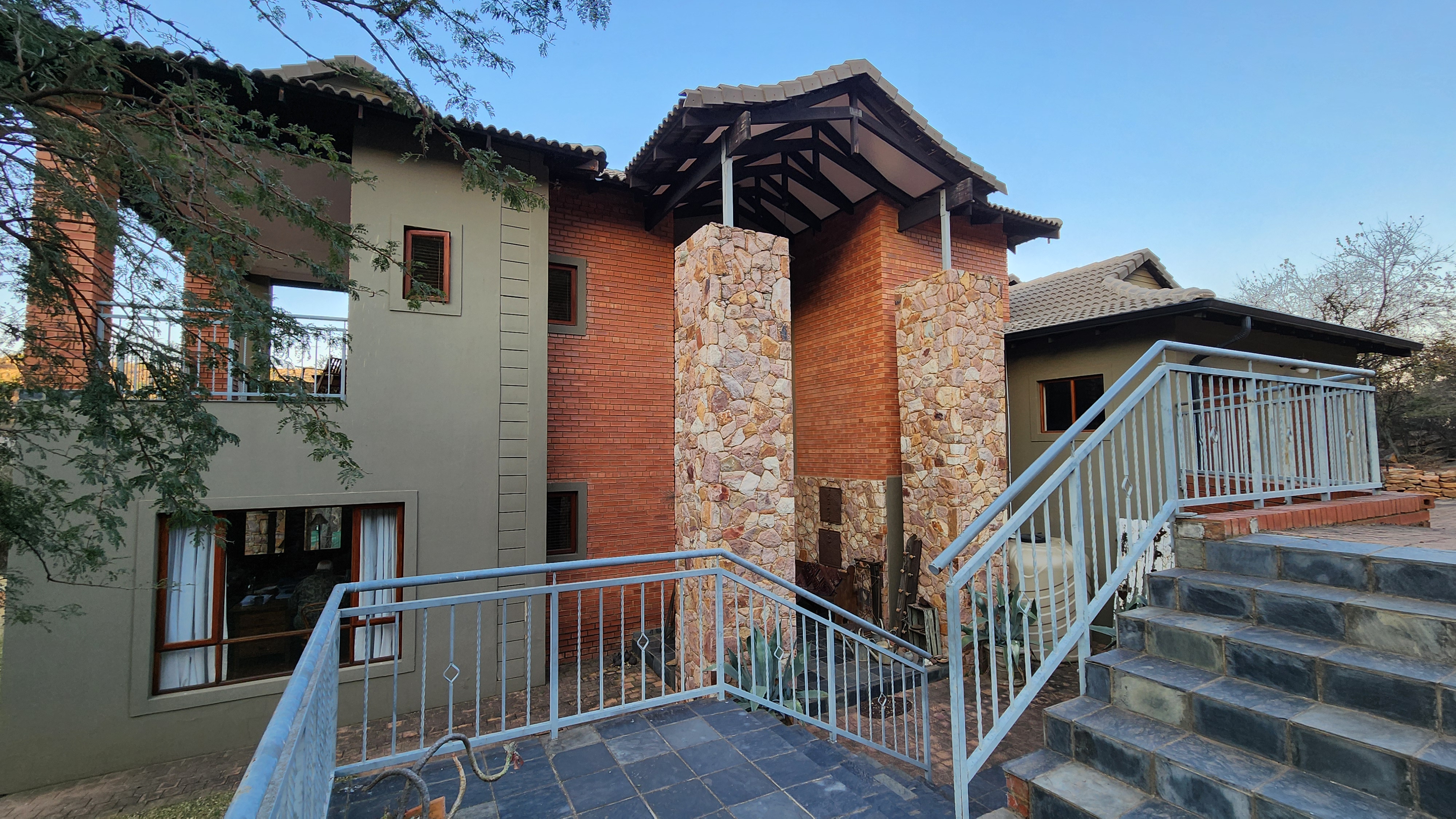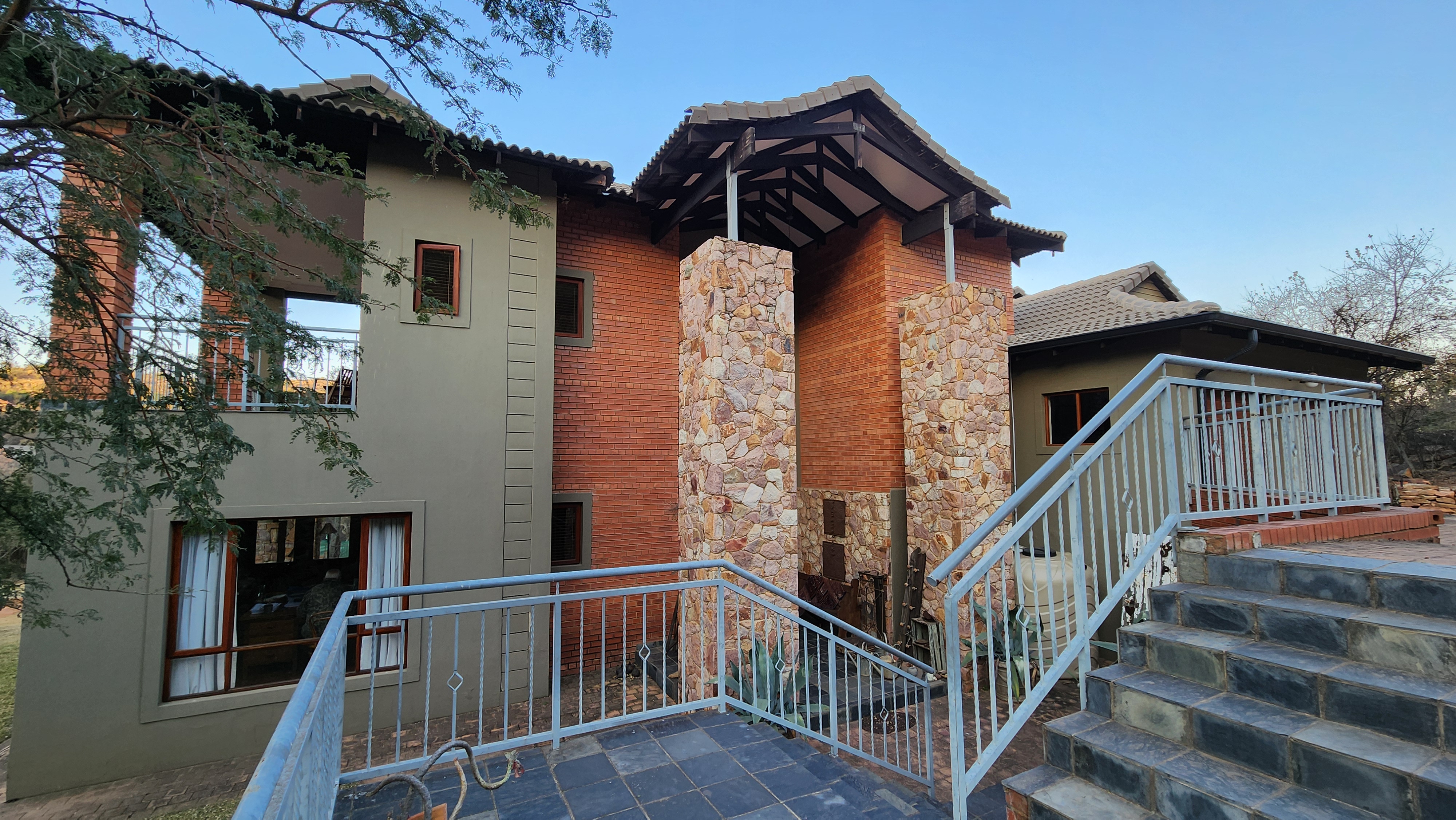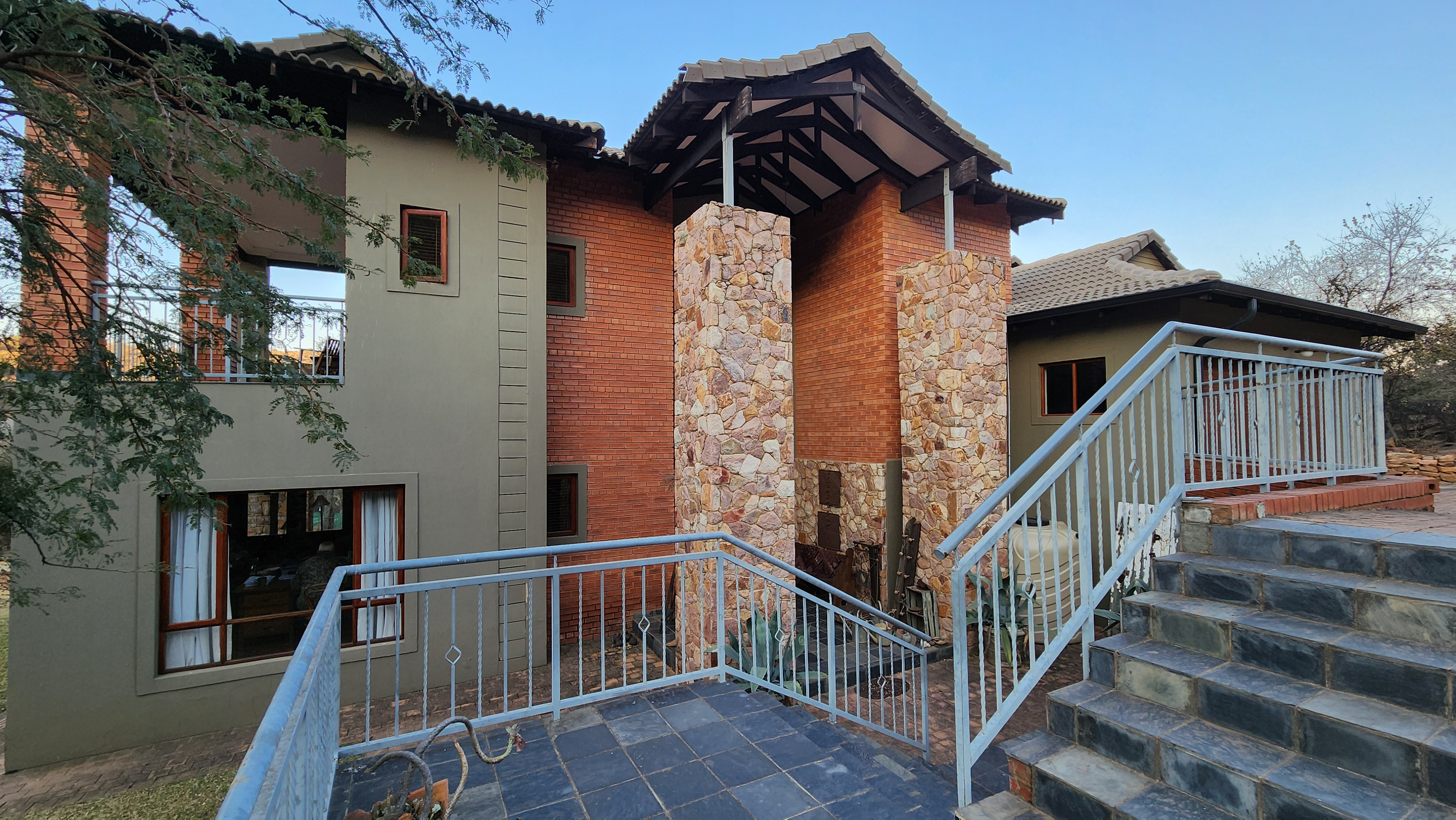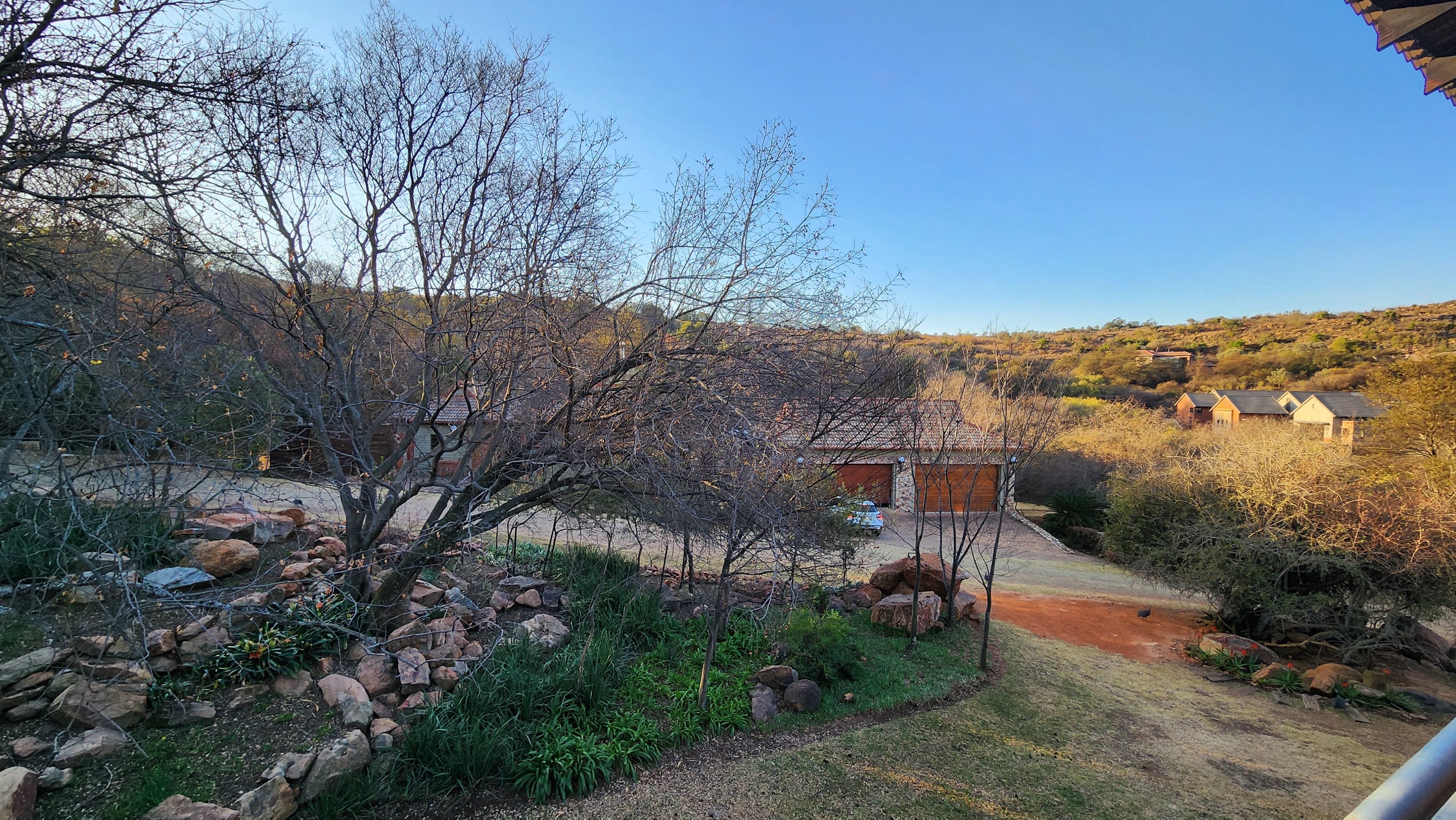 Looking down from the upper level, you catch a striking glimpse of the grand main entrance, framed by the breathtaking panorama of the Suikerbosrand Nature Reserve—your permanent backdrop of wild, protected beauty.