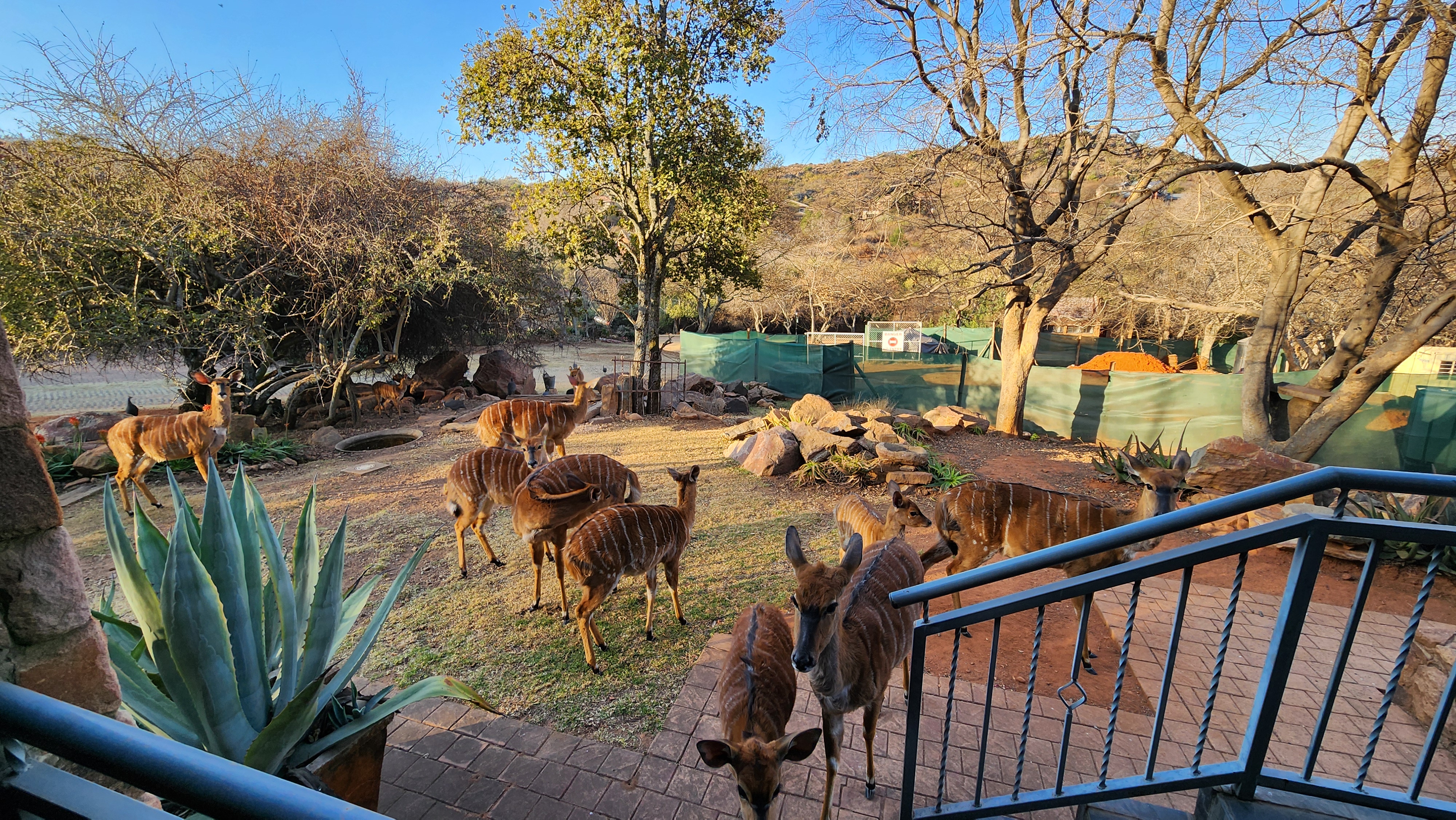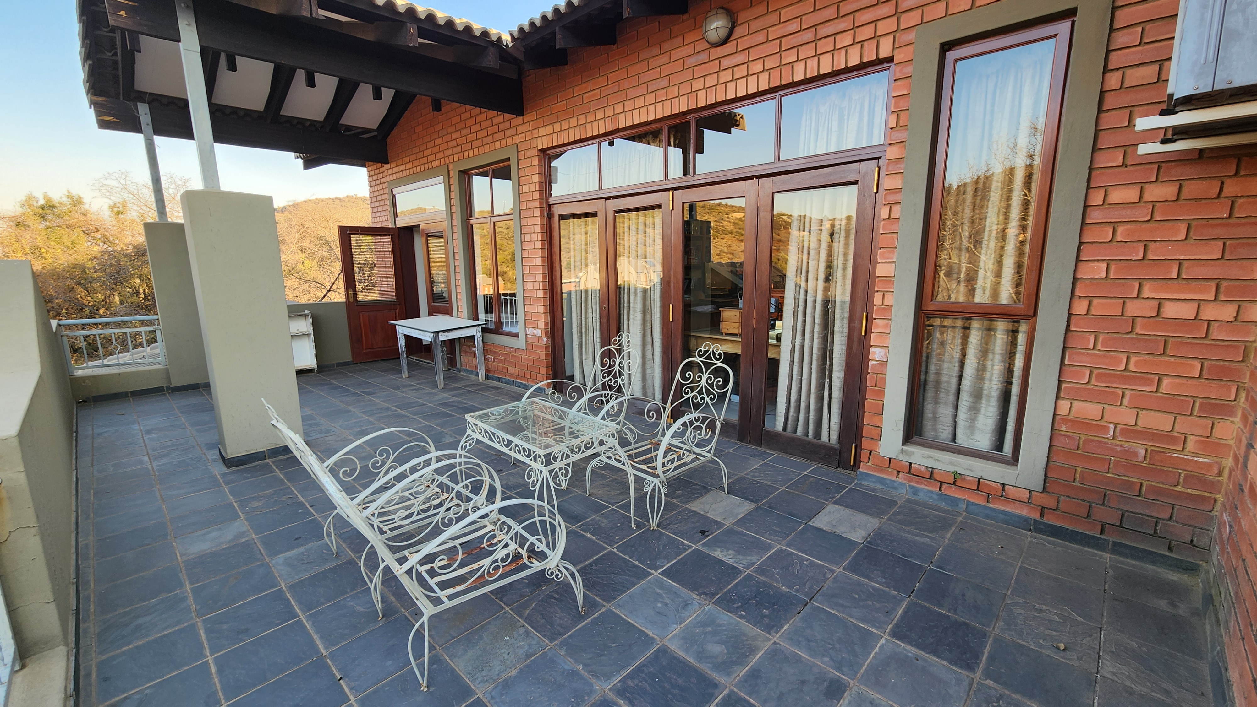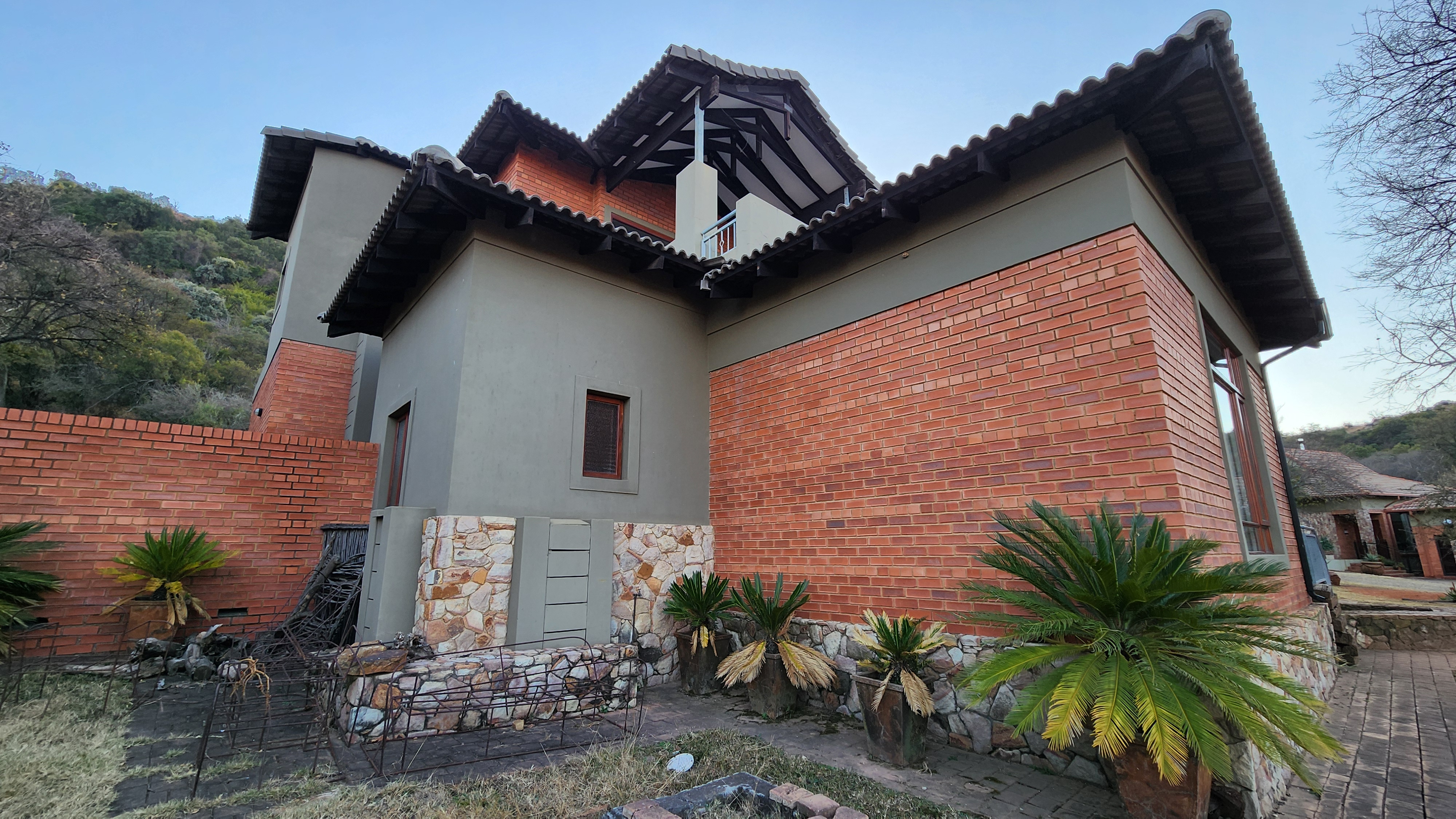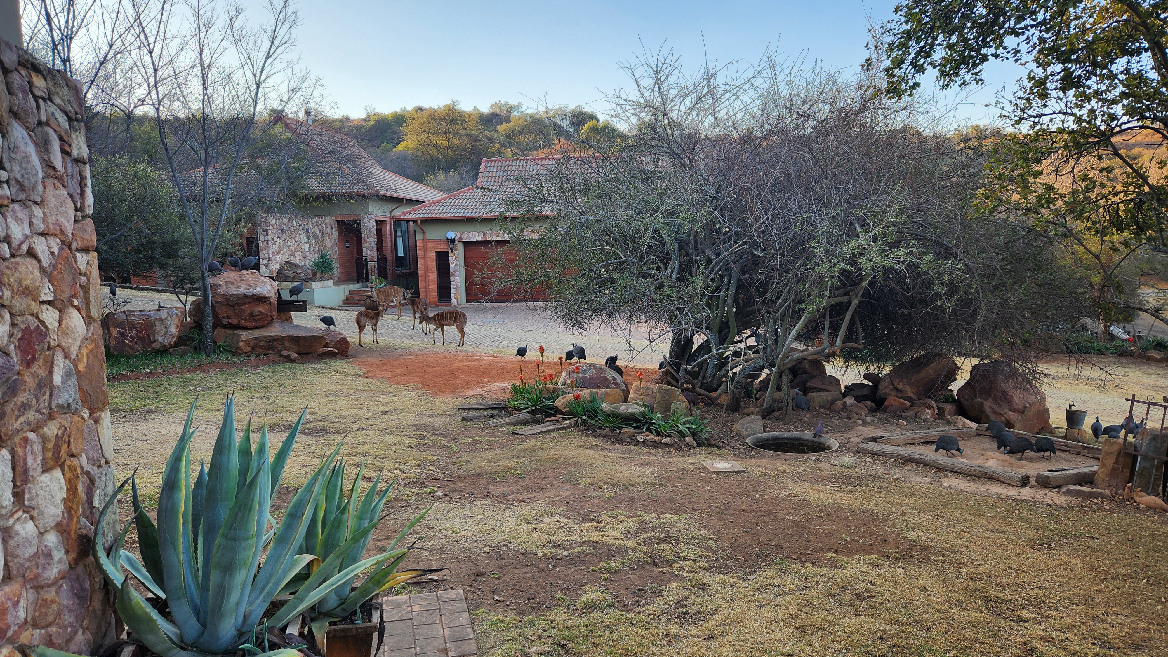 Looking down from the upper level, you catch a striking glimpse of the grand main entrance, framed by the breathtaking panorama of the Suikerbosrand Nature Reserve—your permanent backdrop of wild, protected beauty.