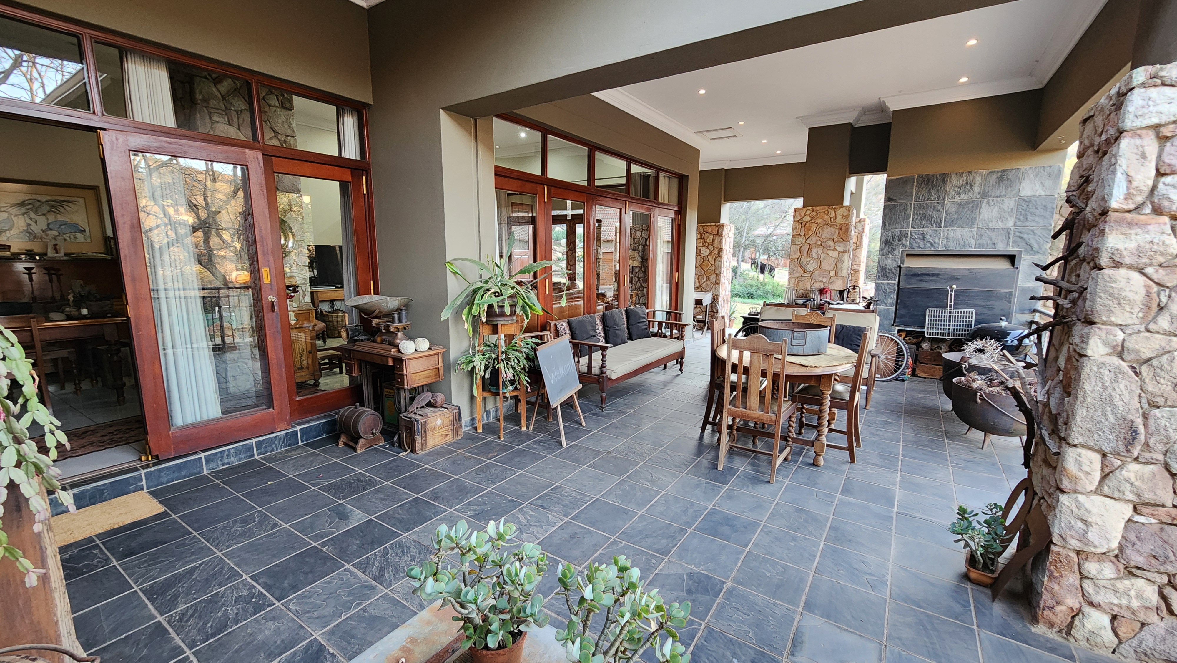 Expansive covered entertainment terrace, with built-in braai, overlooking wildlife-rich grasslands and private gardens.