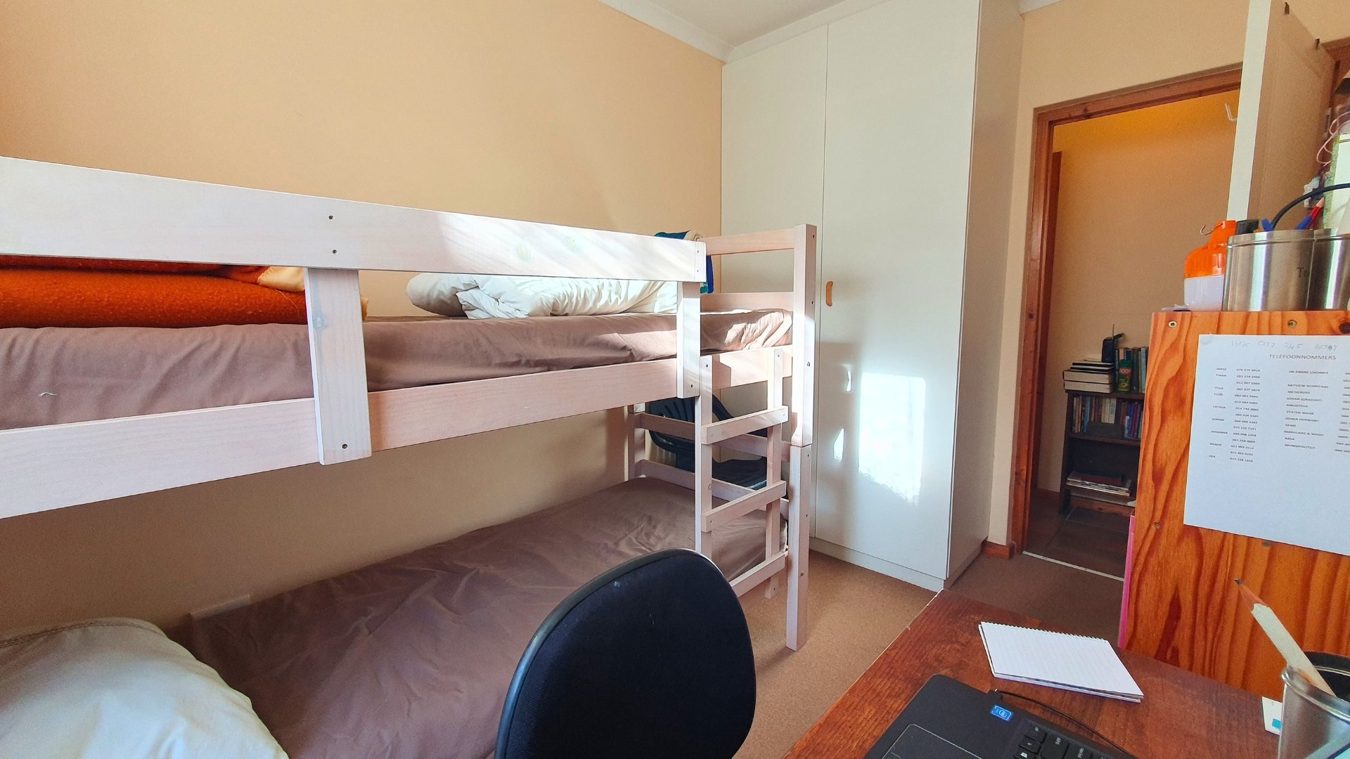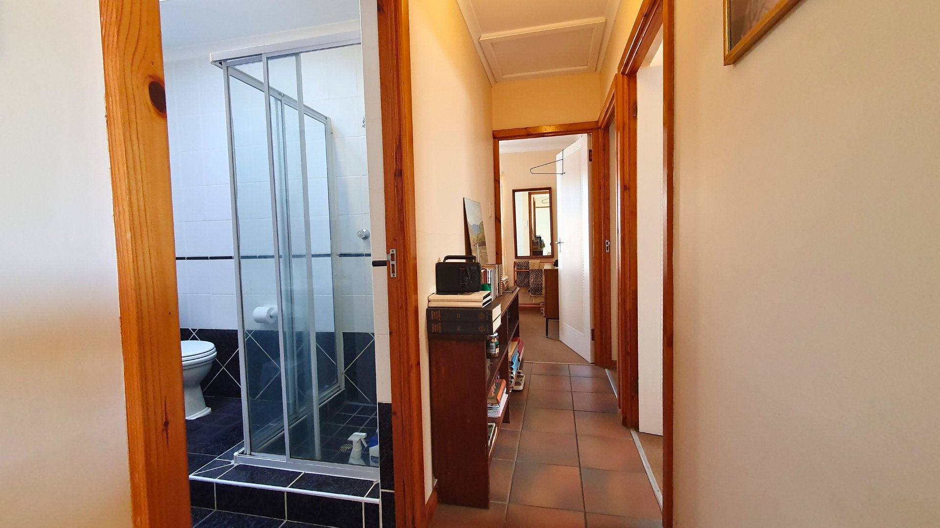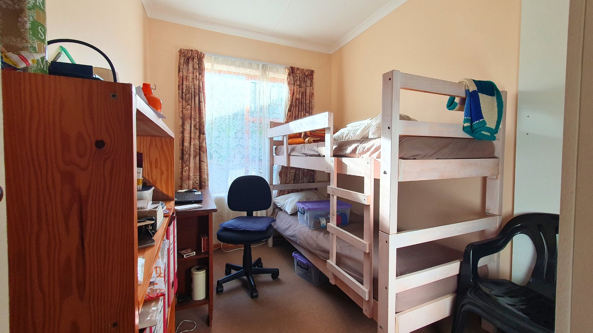 The interior consists of three bedrooms with floor carpets and built-in cupboards. The rooms share a single full bathroom. All rooms enjoy a spot of sunlight at various times of the day, keeping the home at an enjoyable temperature throughout the year.