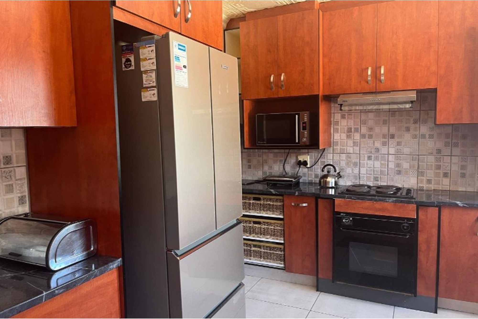 Experience the best of both indoor and outdoor living with a beautiful garden and a spacious veranda, ideal for weekend relaxation or entertaining guests. The 690 square meter lot also features a braai pit, perfect for those South African barbecues. You`ll appreciate the practicality of a 2-car garage, covered parking, and additional storage space, providing you ample room for all your needs. Plus, it`s wheelchair accessible for added convenience.