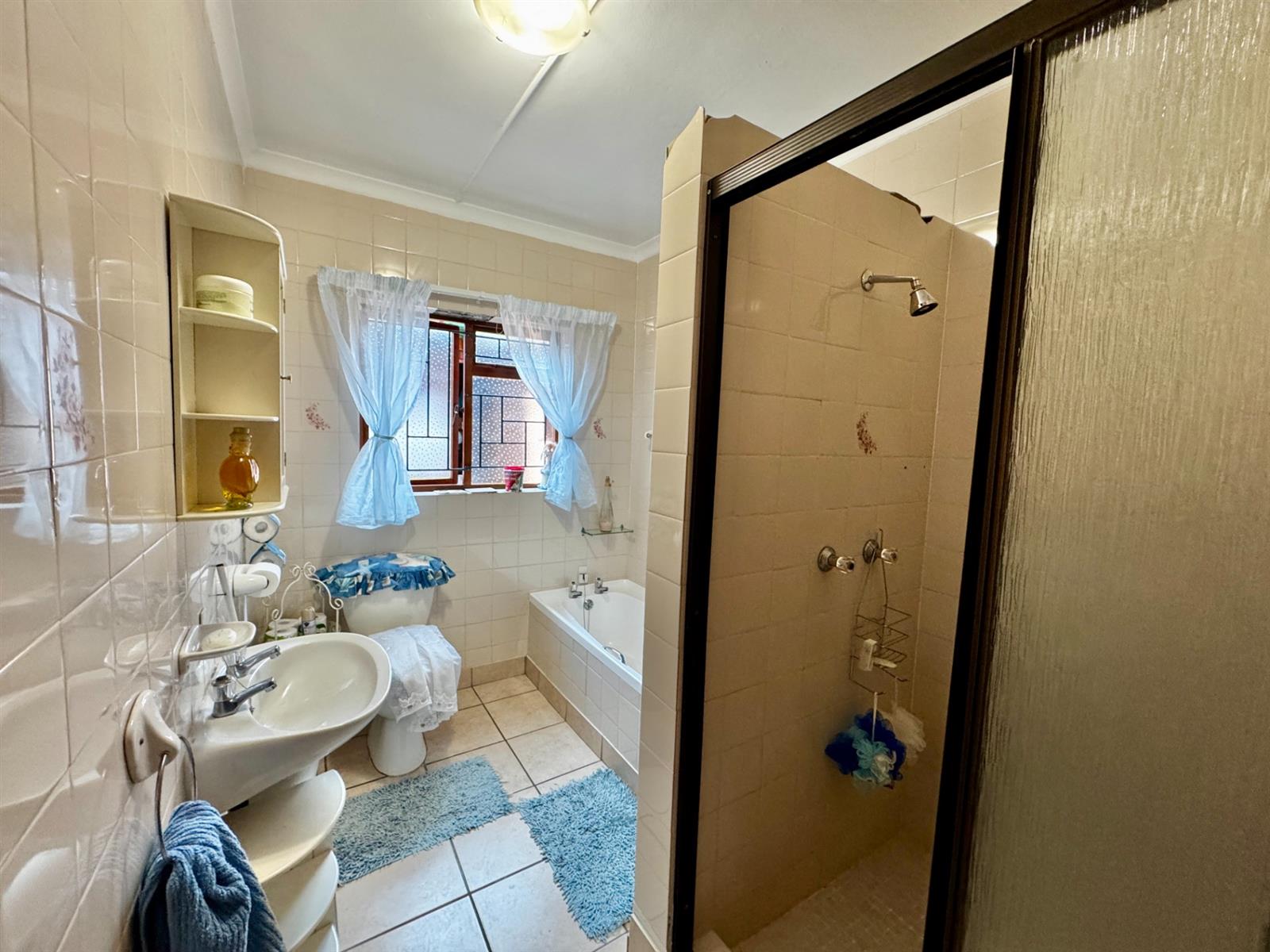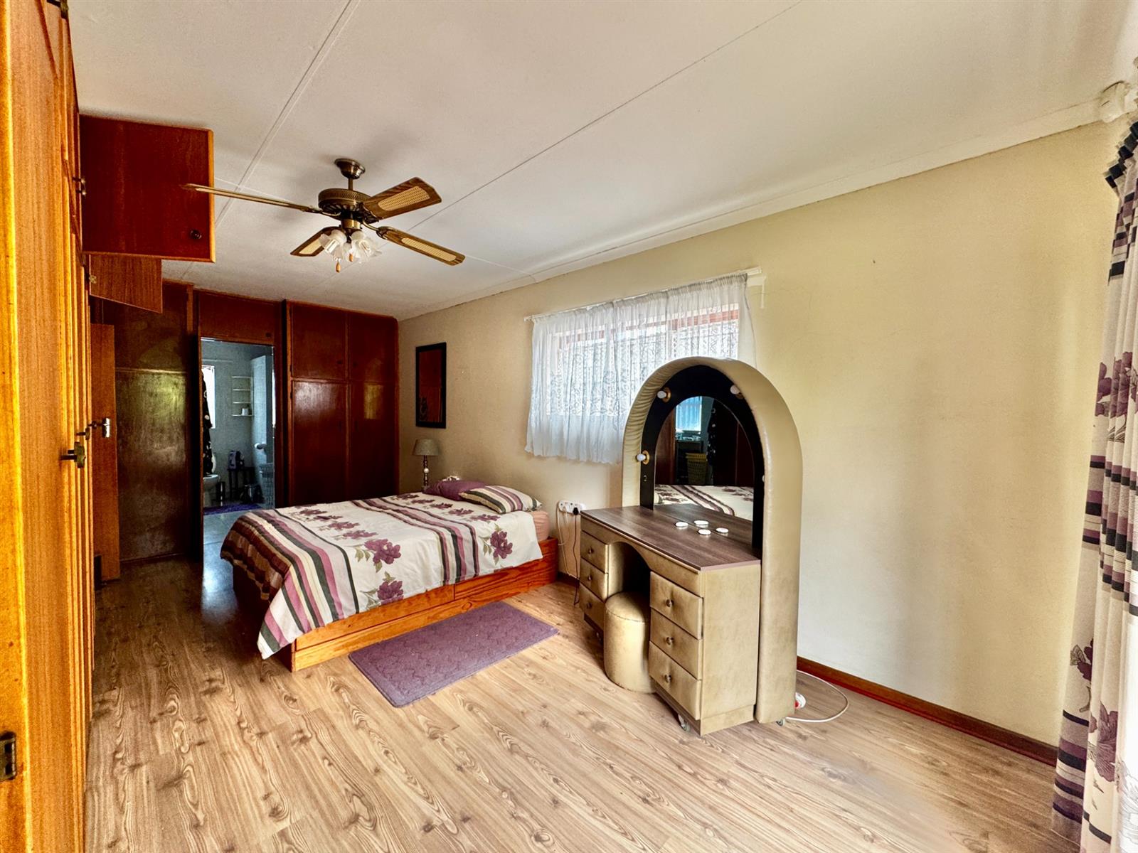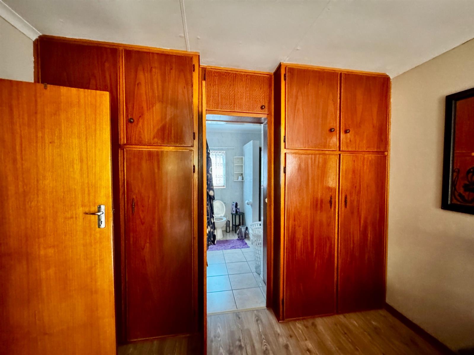 The home features three spacious bedrooms with built-in cupboards and two bathrooms. The main bedroom includes an en-suite bathroom, ensuring comfort and privacy.