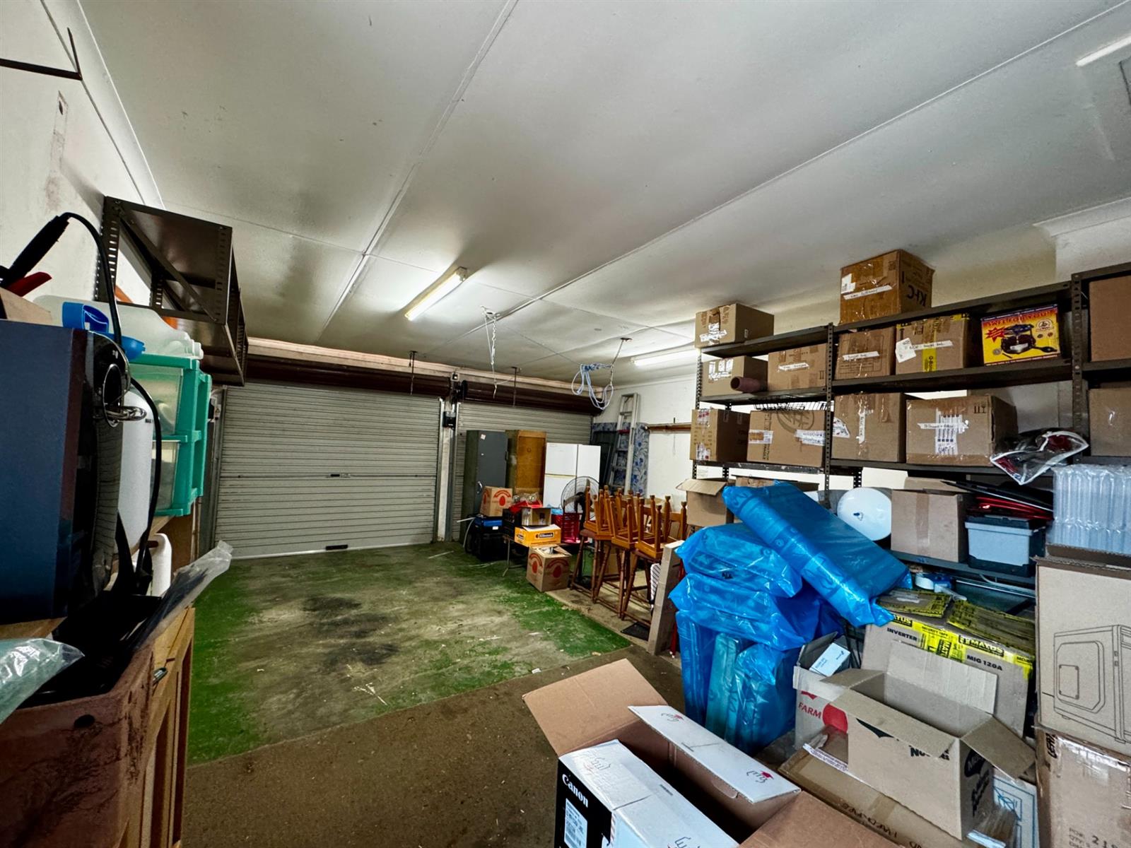 Parking is a standout feature, offering three garages, two with electric roll-up doors, as well as shaded parking for an additional three vehicles.