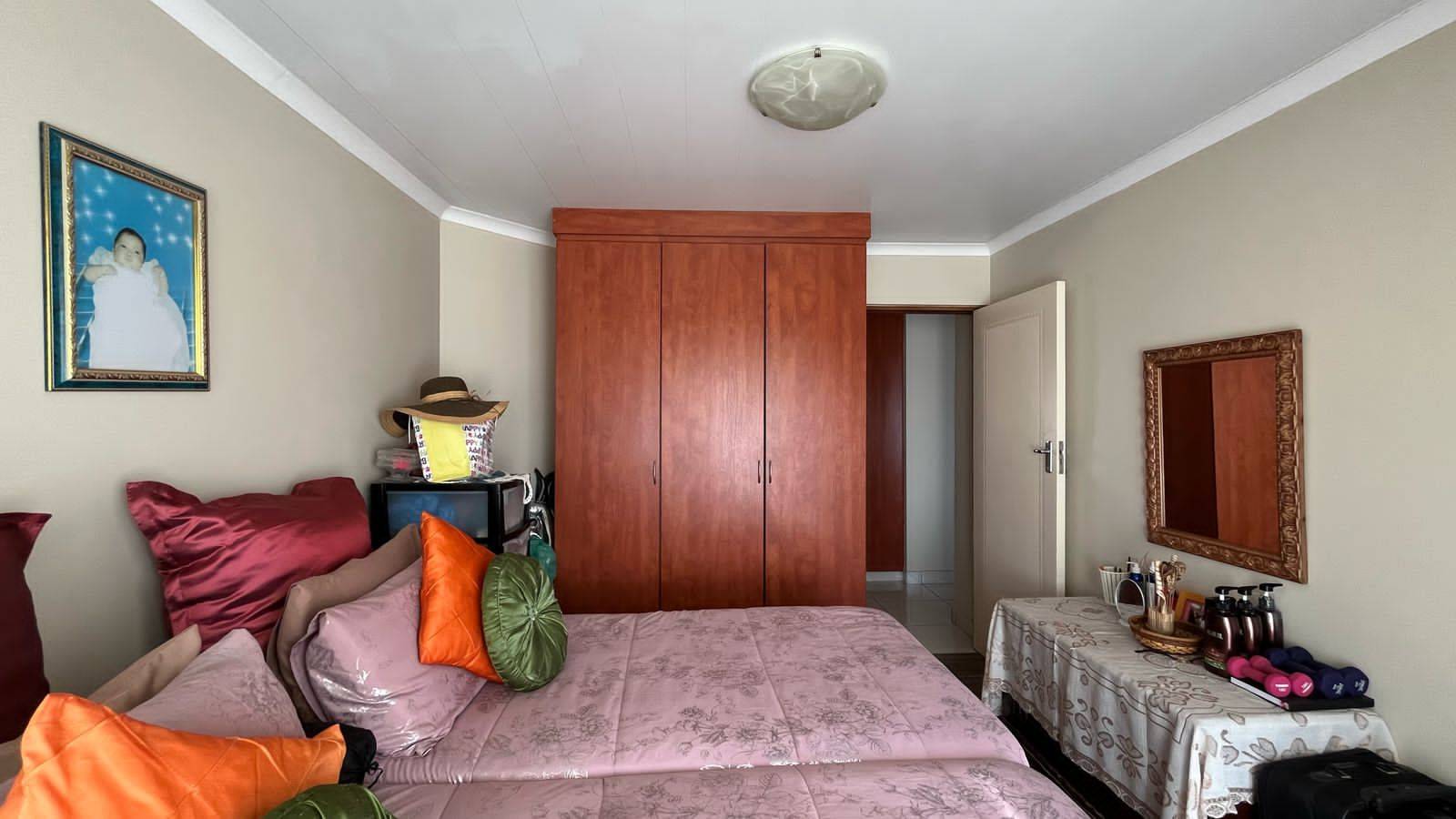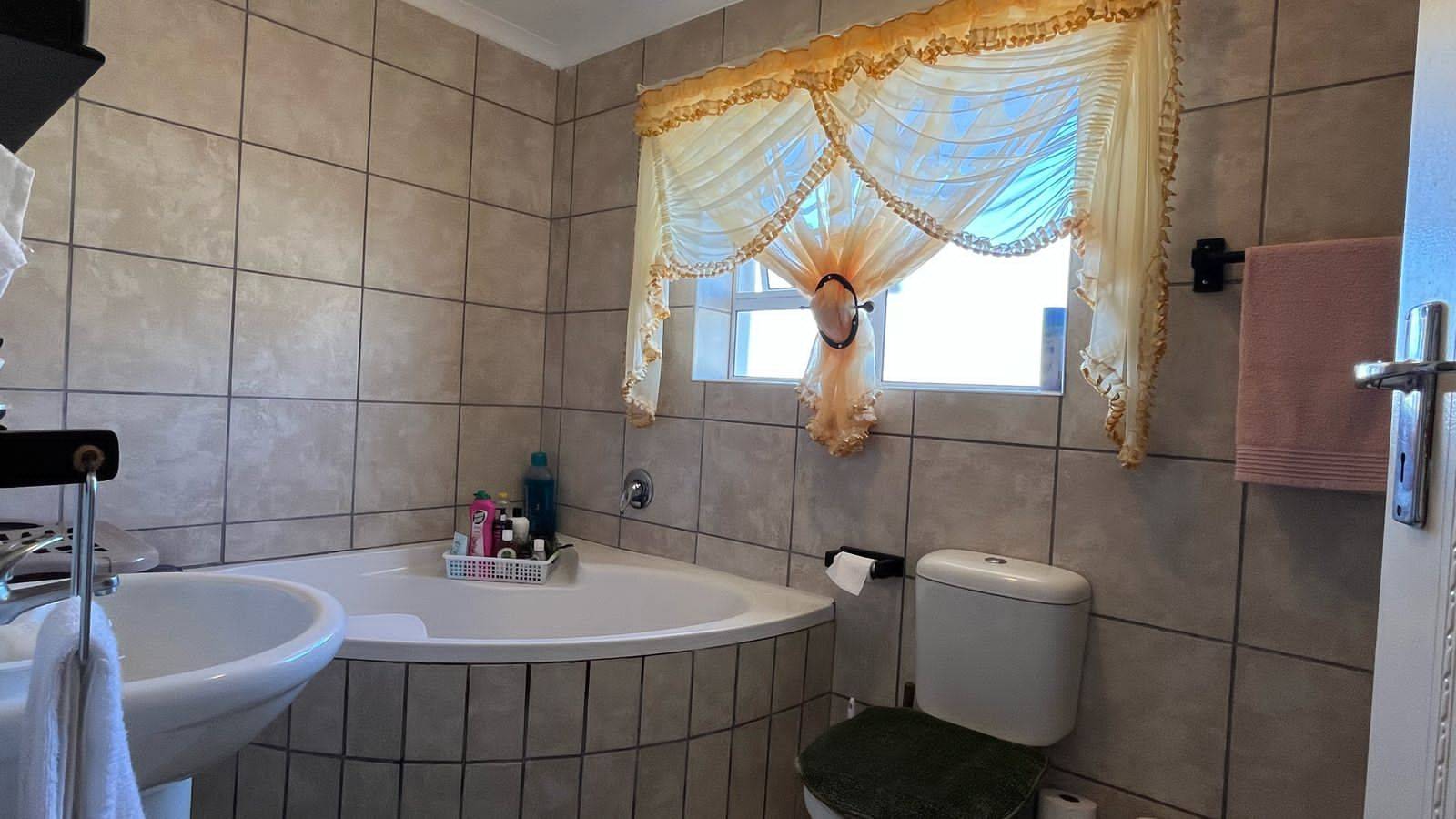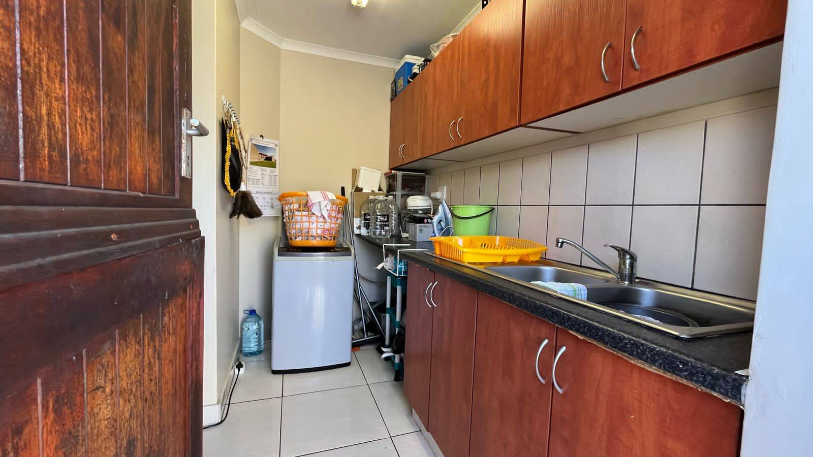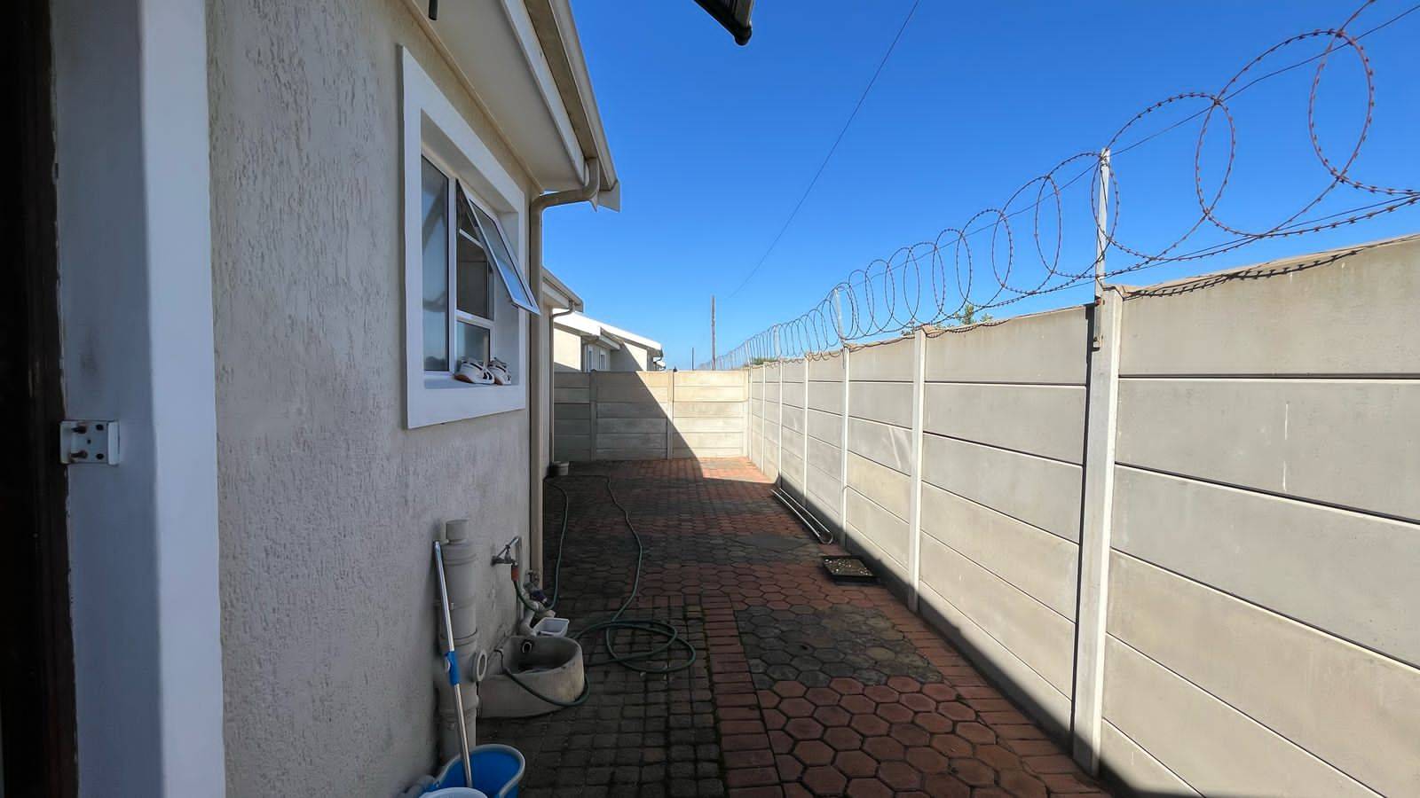 Security gates at all opening doors and burglar bars. The courtyard has space for your laundry. The courtyard is paved with a security gate to the front lawn.