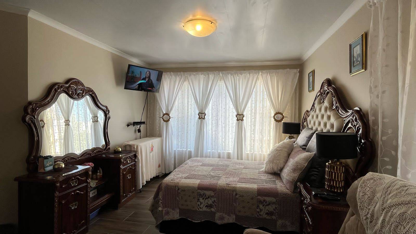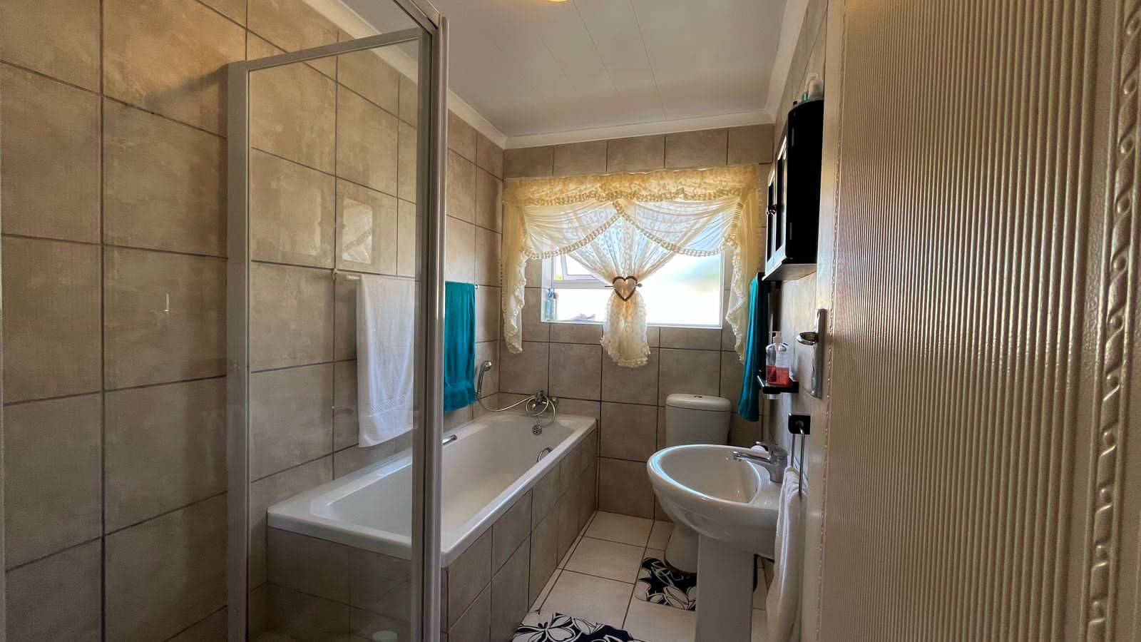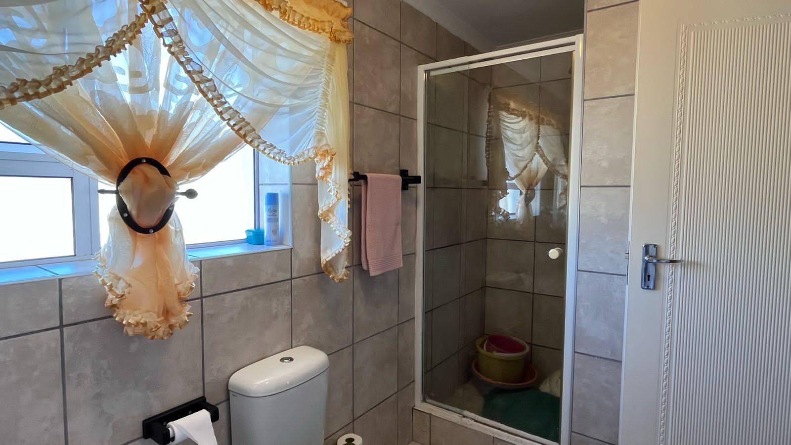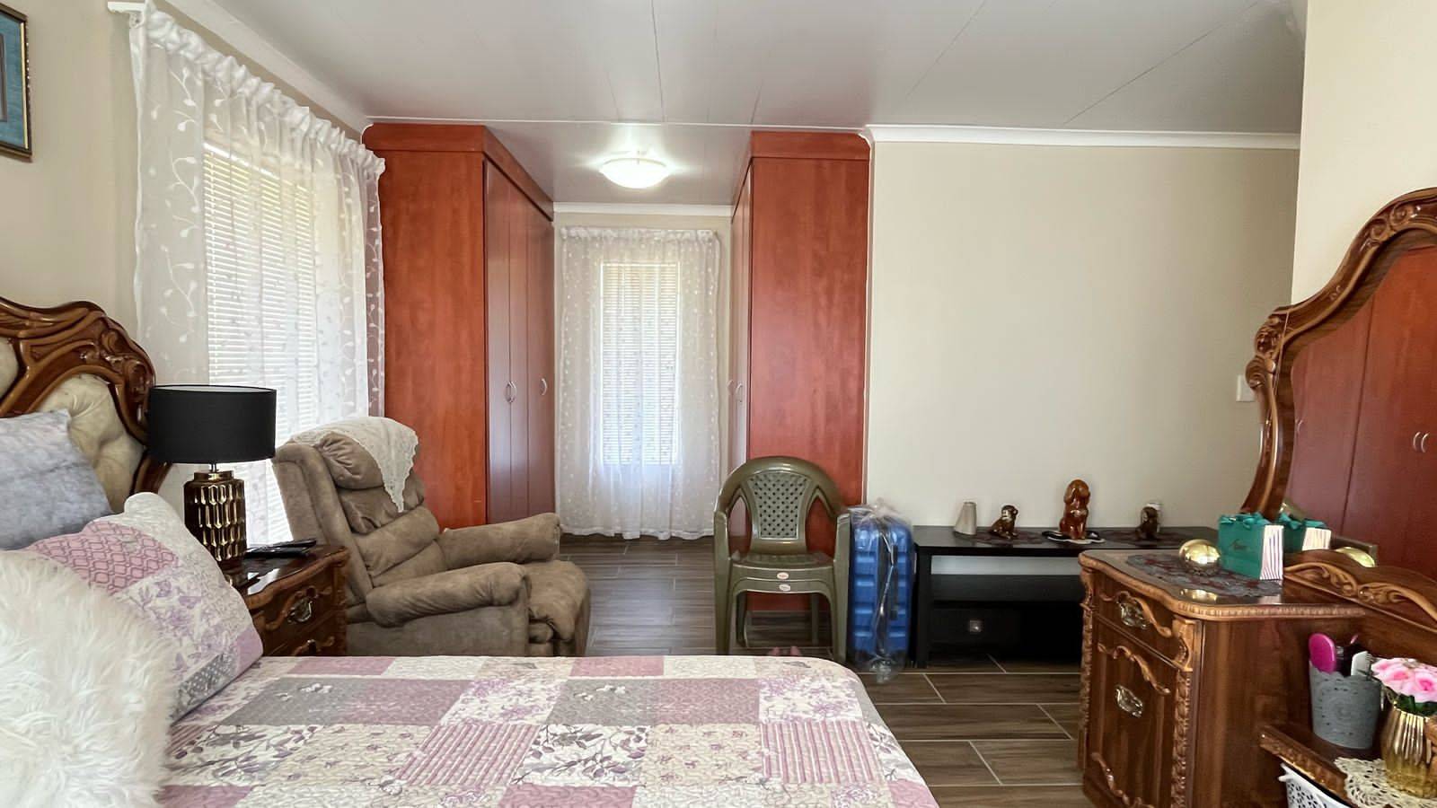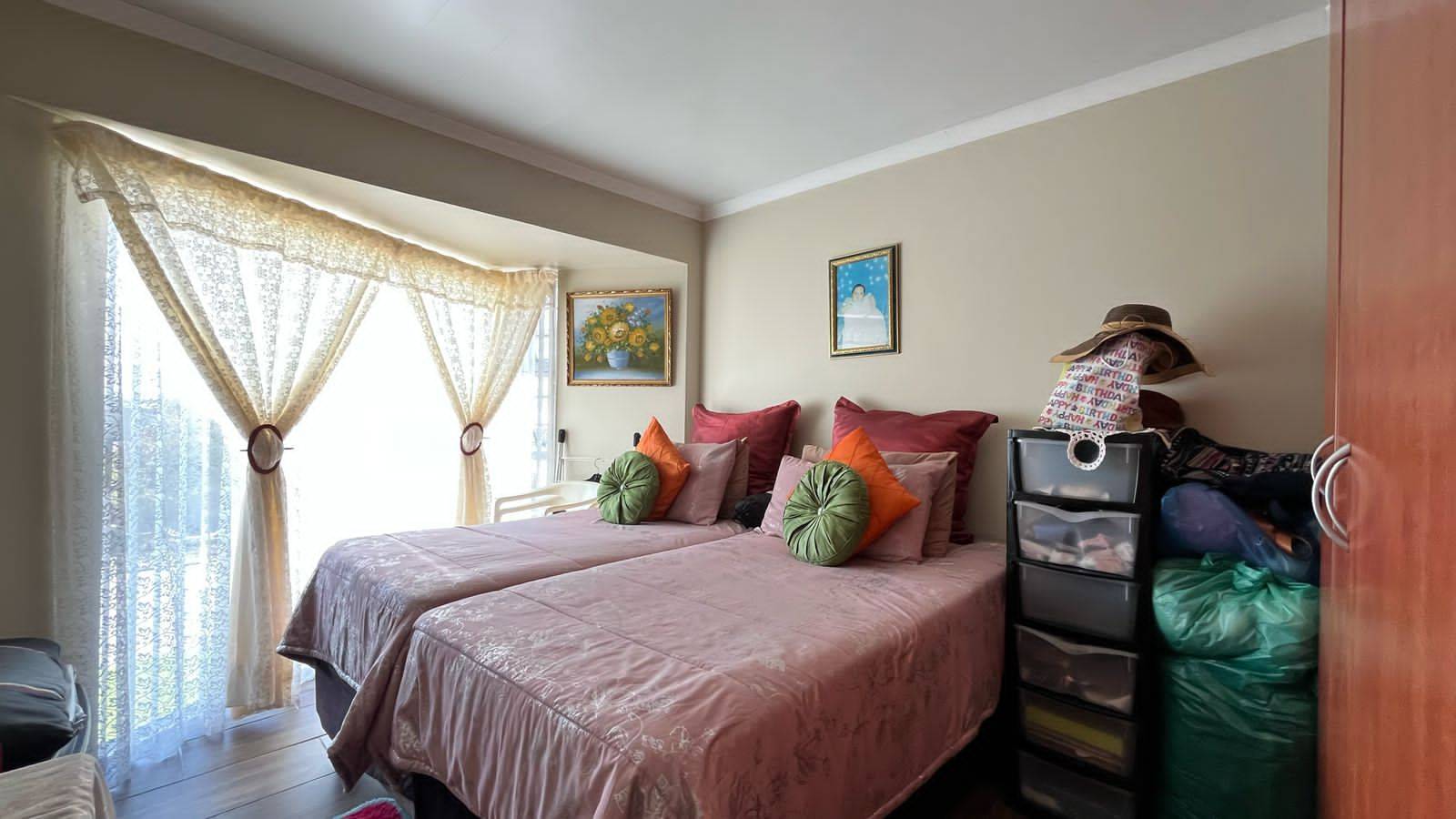 Security gates at all opening doors and burglar bars. The courtyard has space for your laundry. The courtyard is paved with a security gate to the front lawn.