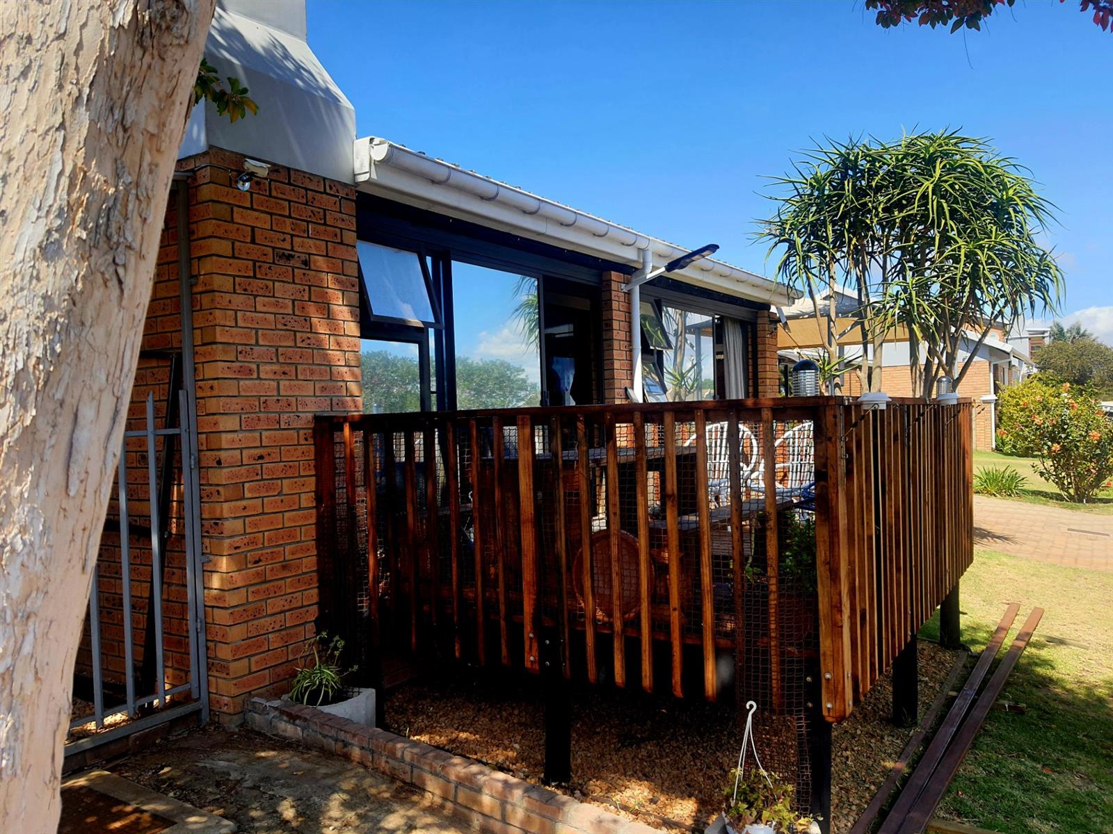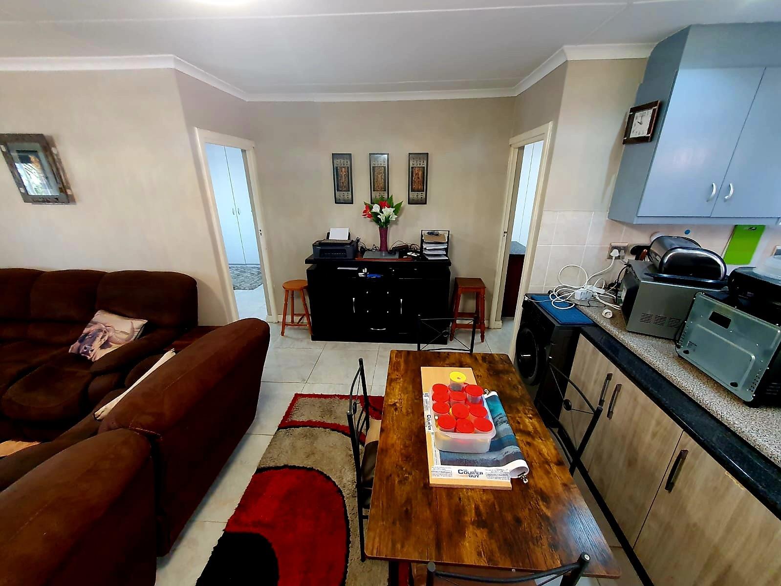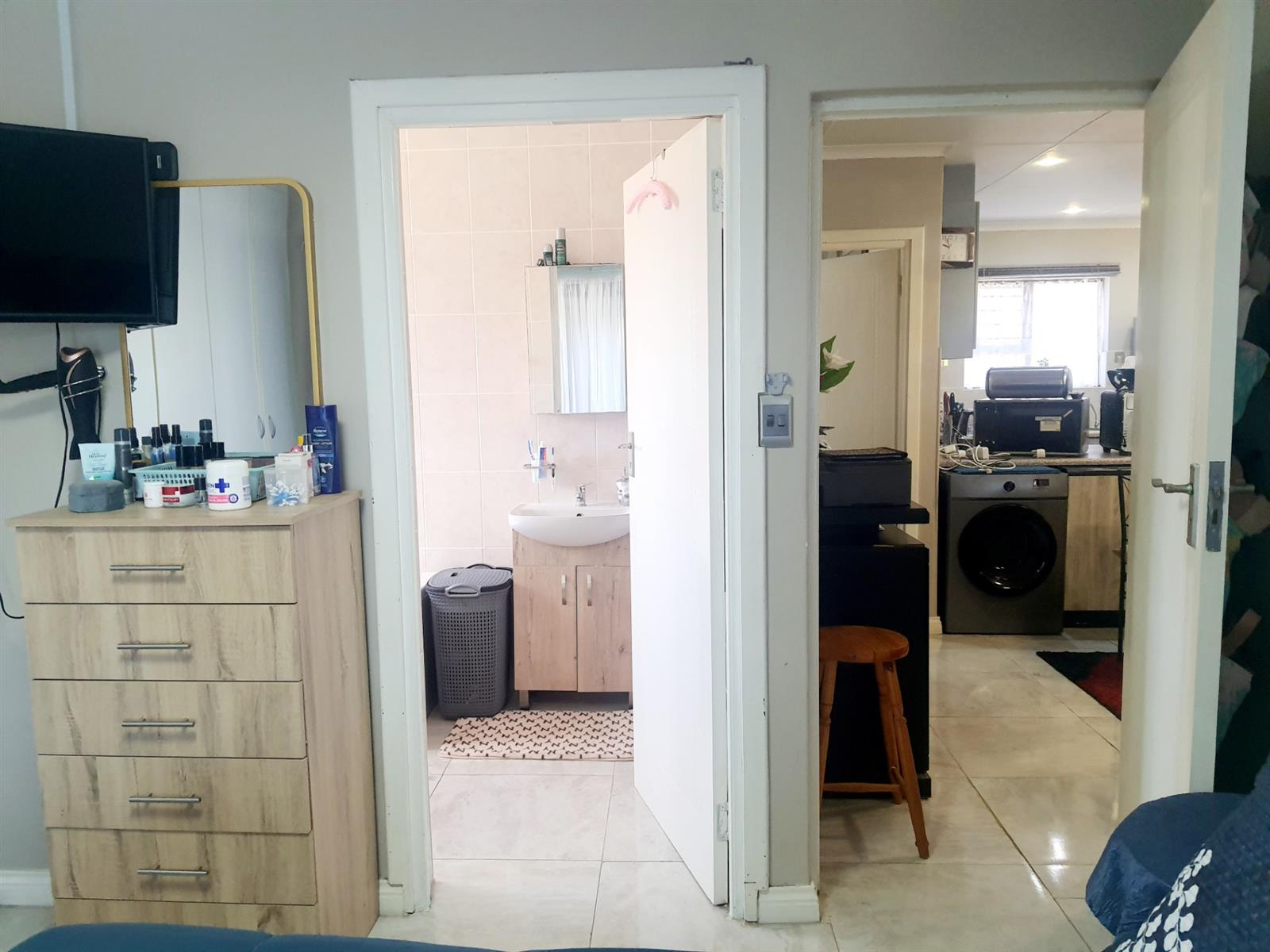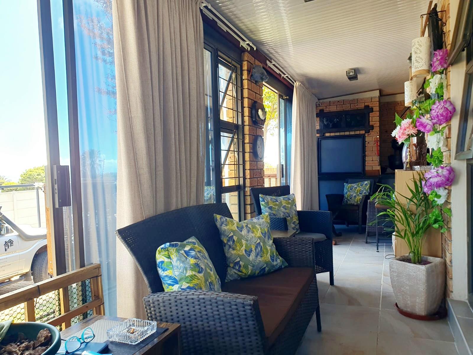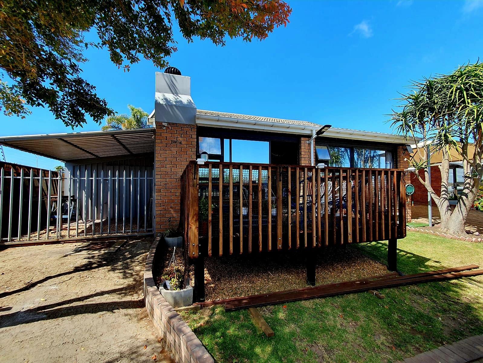 Adding to its appeal, this home includes an enclosed built-in braai area that opens directly onto a sunny front deck, creating a welcoming space for year-round entertaining. The garden is small and easy to maintain, with an enclosed section at the back of the home as well as a water tank for added convenience. The main bedroom features an en-suite bathroom fitted with a bath, while the second bedroom is serviced by a separate bathroom.