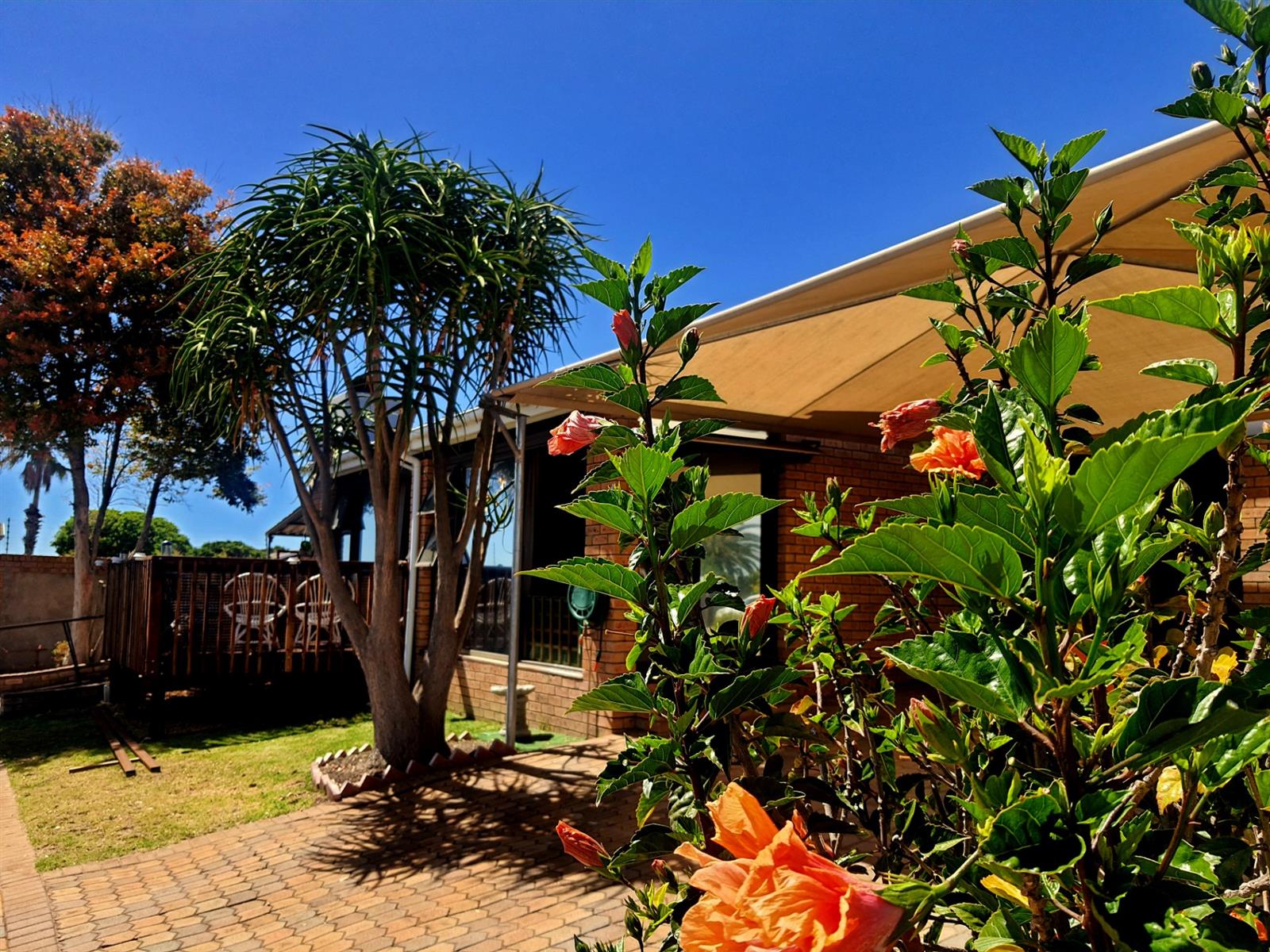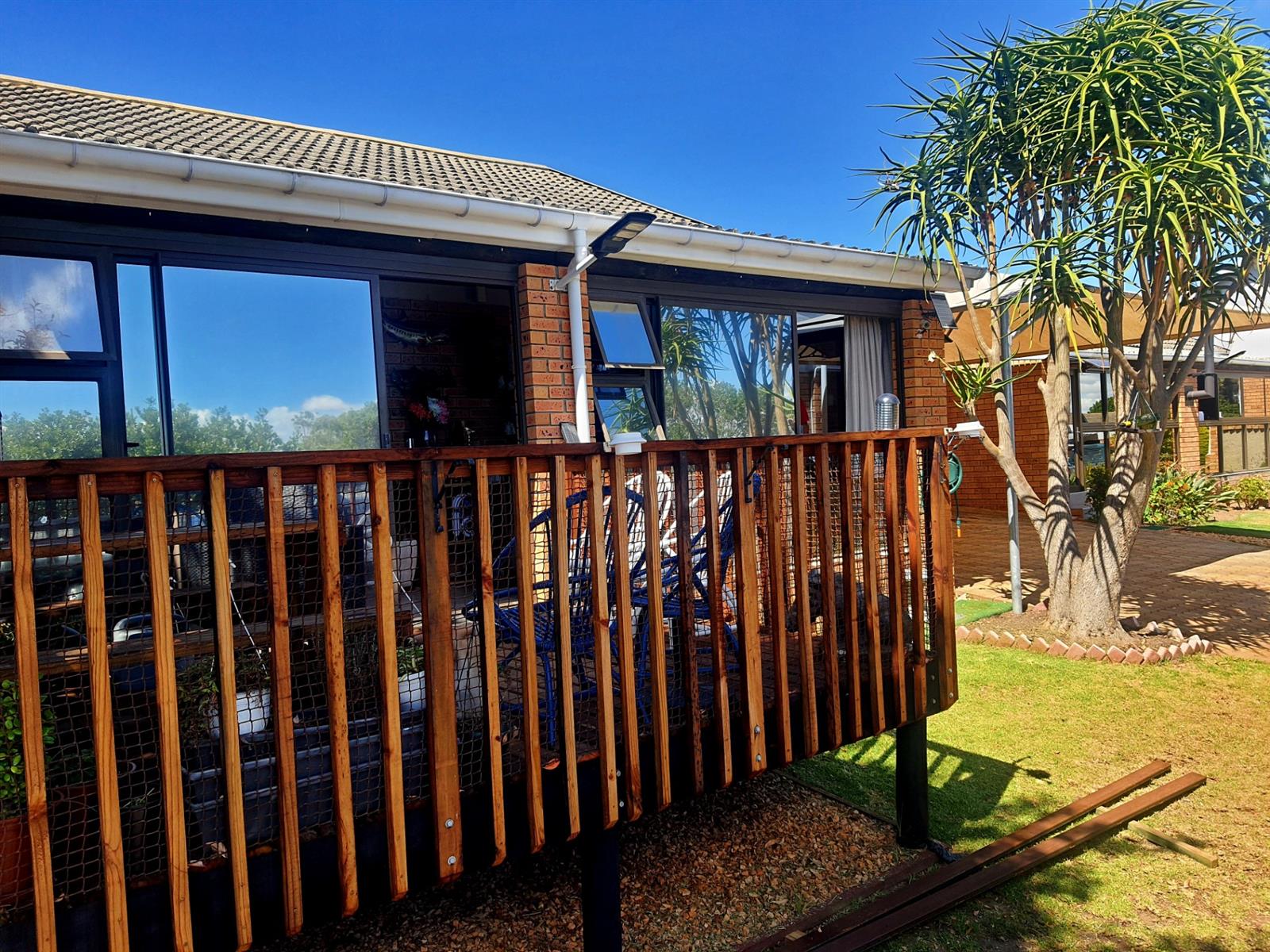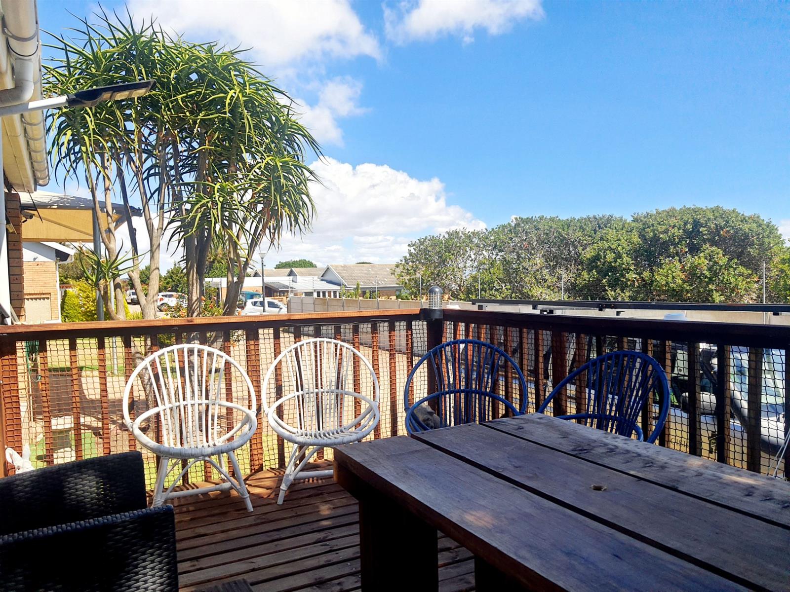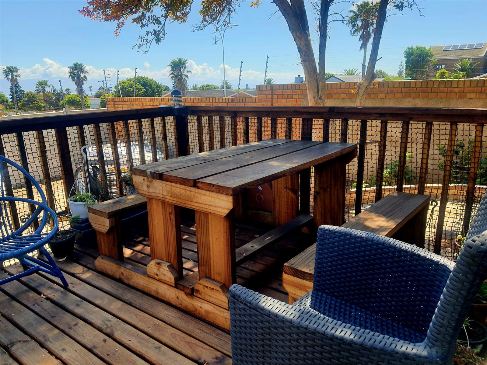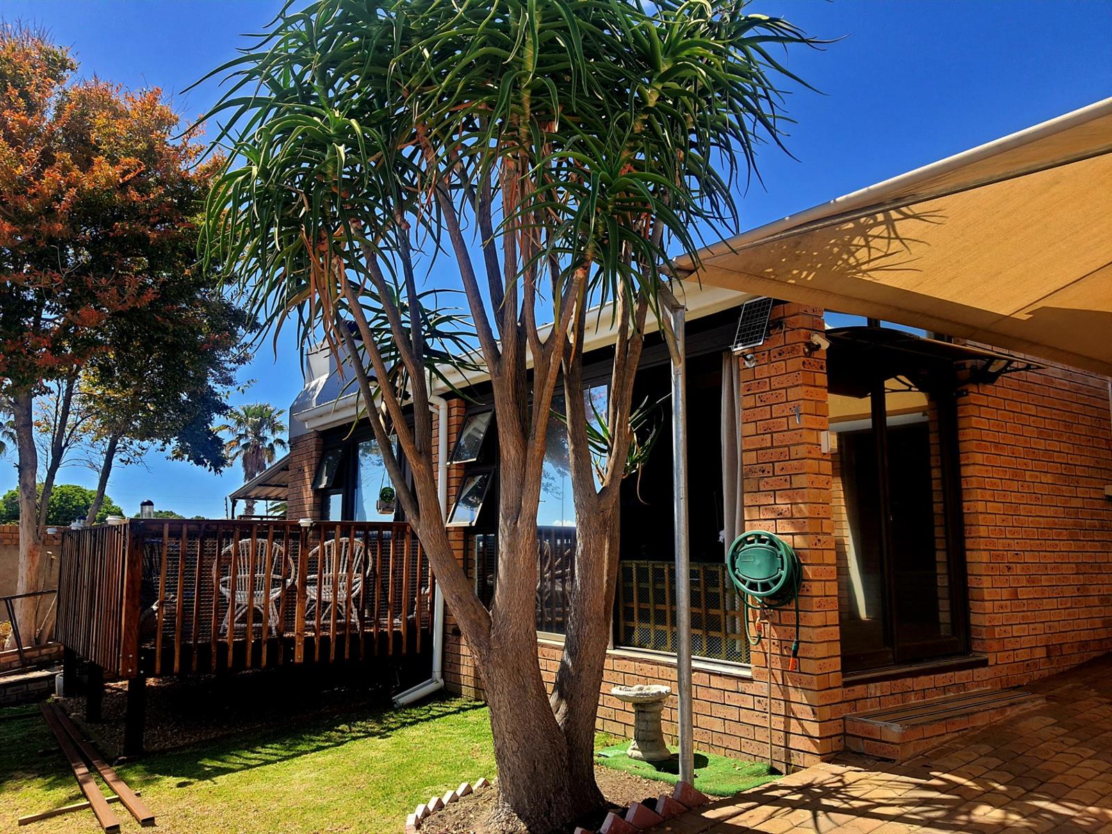 Adding to its appeal, this home includes an enclosed built-in braai area that opens directly onto a sunny front deck, creating a welcoming space for year-round entertaining. The garden is small and easy to maintain, with an enclosed section at the back of the home as well as a water tank for added convenience. The main bedroom features an en-suite bathroom fitted with a bath, while the second bedroom is serviced by a separate bathroom.