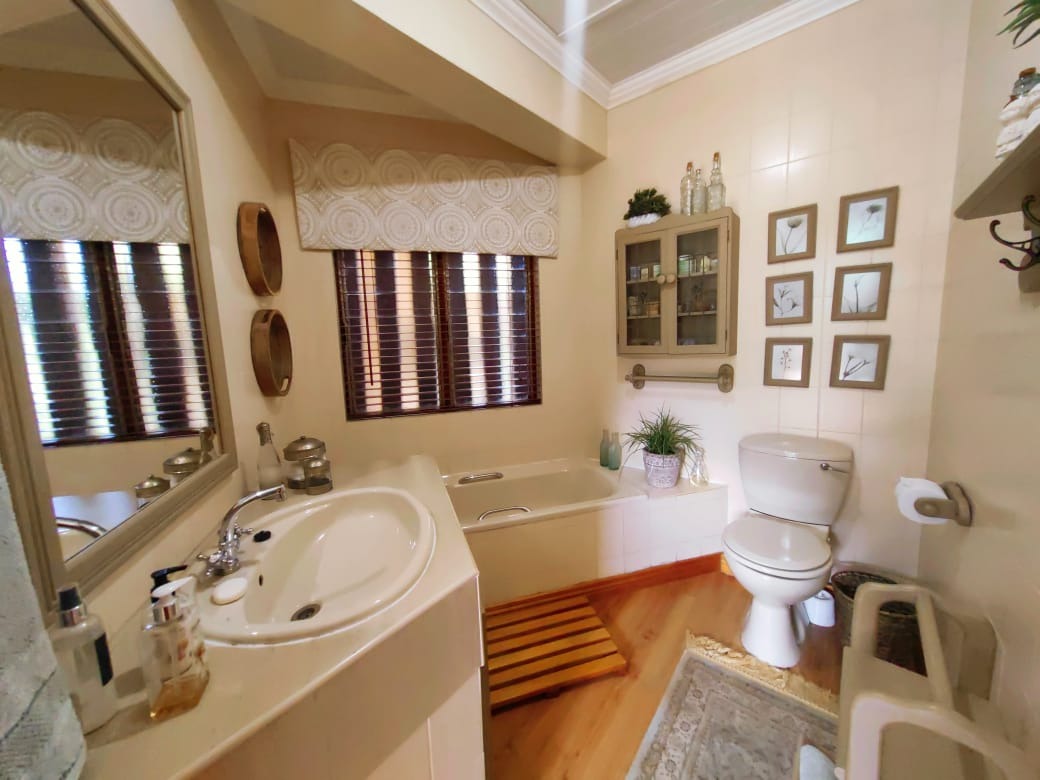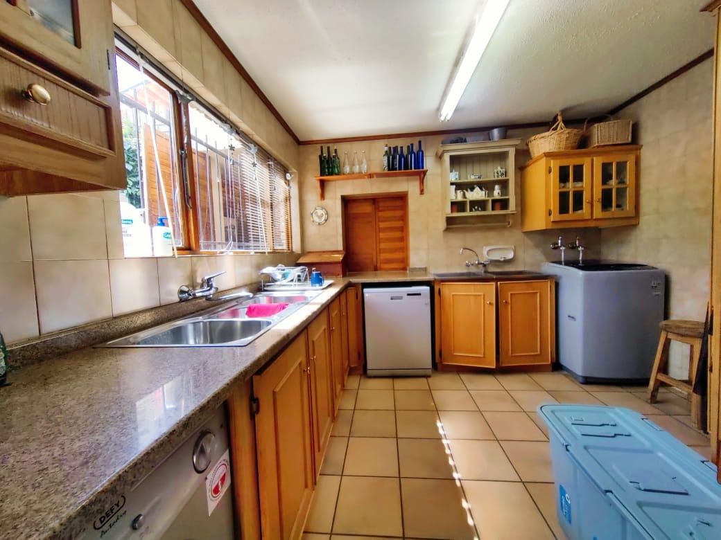 Outdoors, the entertainment options are endless. A covered patio with a built-in barbeque overlooks the sparkling swimming pool, offering the perfect setting for summer braais and lazy weekend afternoons. The sprawling yard, beautifully landscaped yet low-maintenance, provides space for children to play or for gardening enthusiasts to create their own oasis.