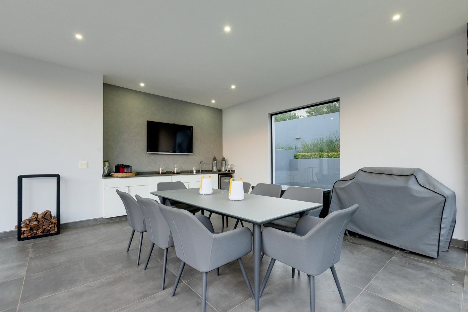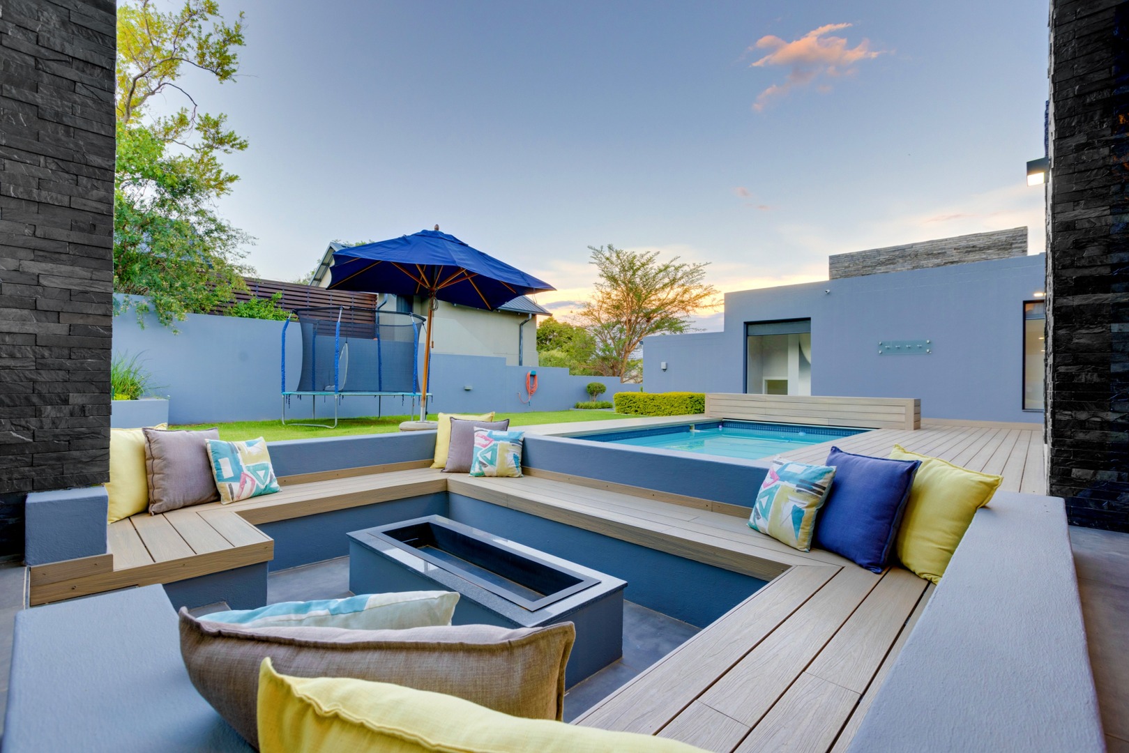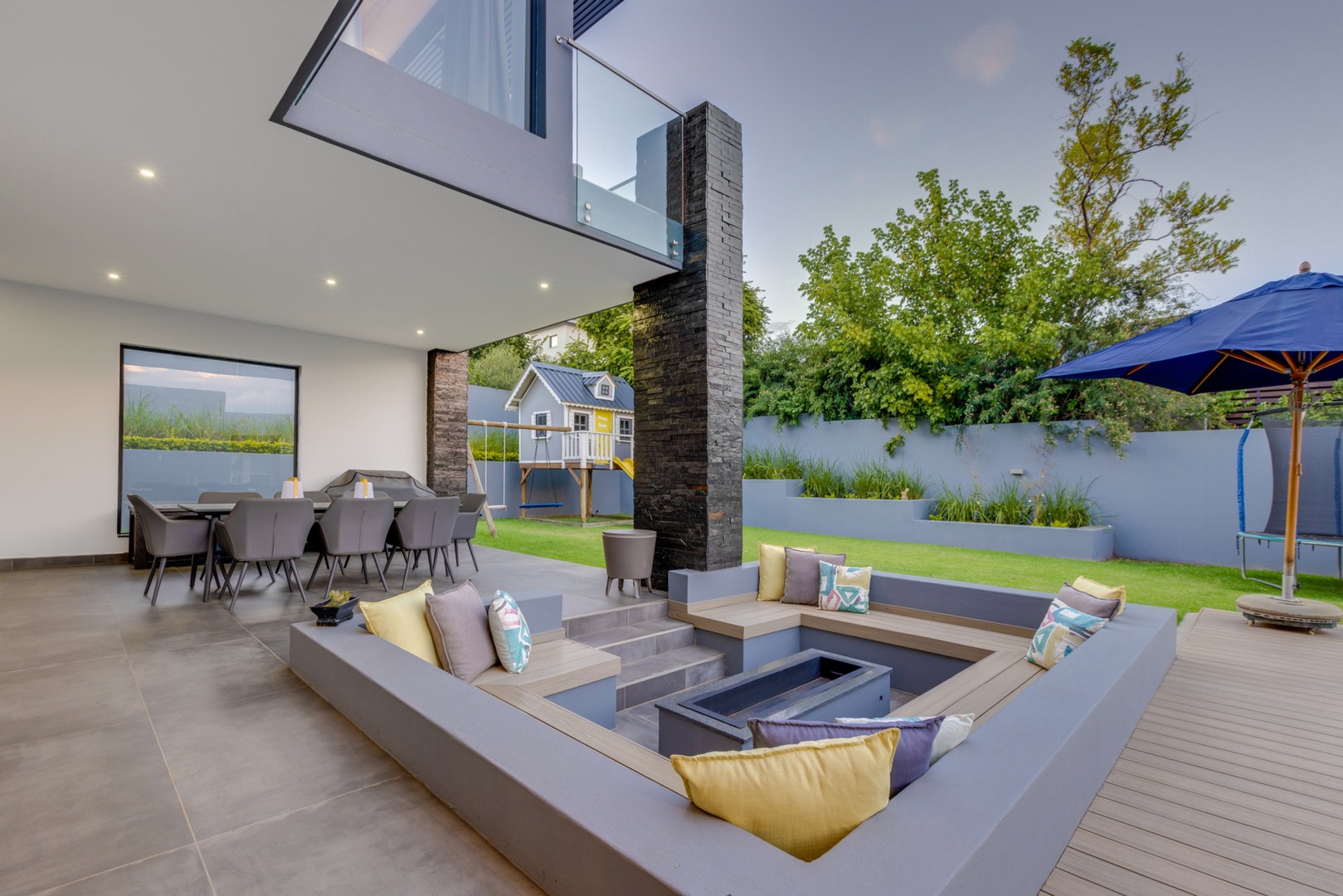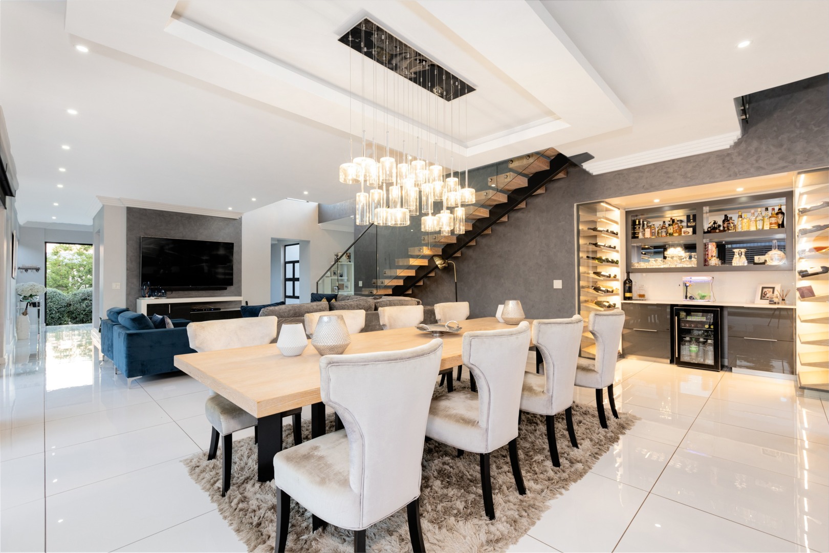 The reception areas effortlessly connect, enhancing the overall sense of openness. Revel in the luxury of a well-appointed wine bar area strategically located for convenience. The entertainment space extends to a generously sized covered patio and pool, overlooking the garden with an outdoor boma, providing a serene retreat.