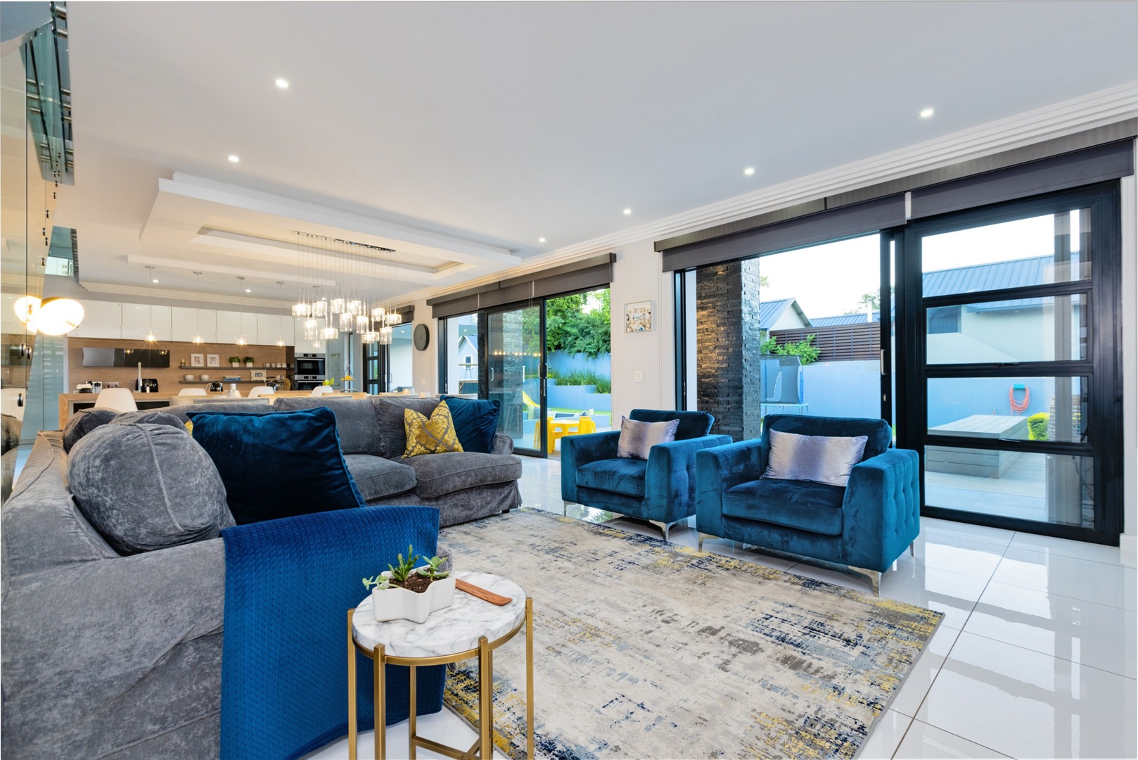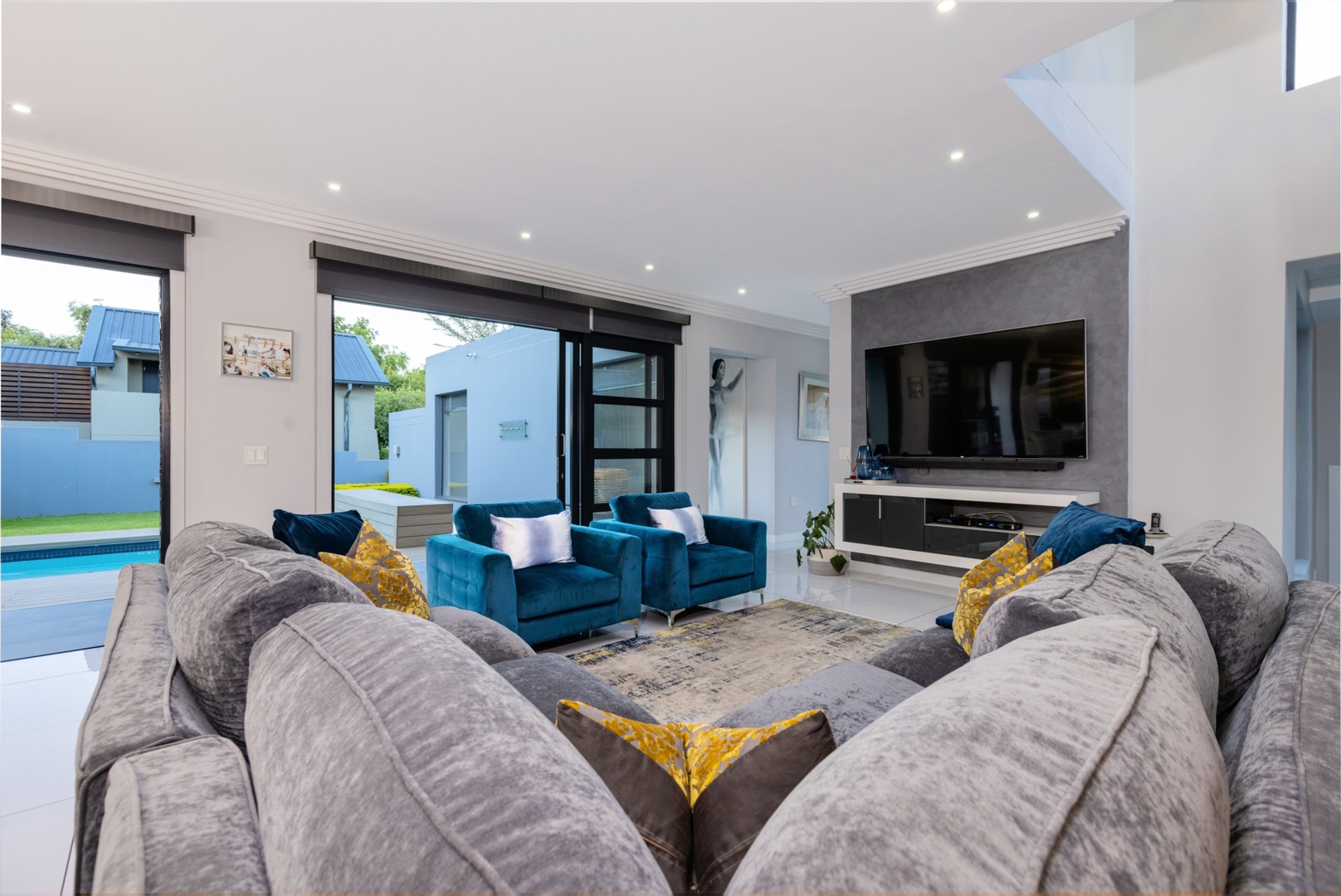 Experience elegance in this sophisticated masterpiece nestled within the prestigious Helderfontein Eco Estate Phase One. This stunning residence boasts a top-class design adorned with superb clean lines, creating a seamless fusion of space, light, and flow, making it the perfect luxurious family home.