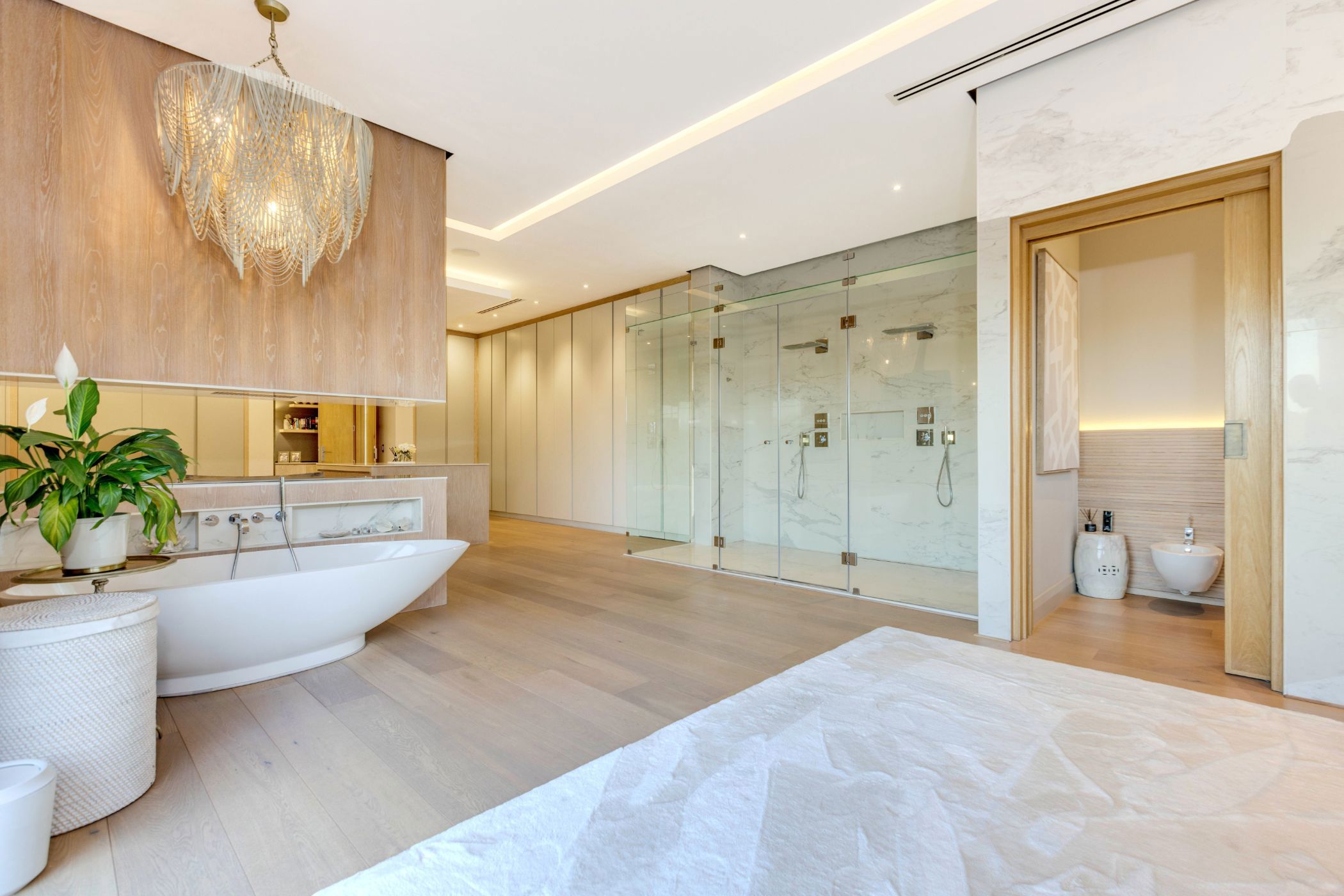 Outdoor Vibes: The garden is a pet-friendly paradise with artificial lawn, composite decking, and a vegetable garden for your inner farmer. Three reflection ponds, a water feature, and a computerized irrigation system keep things green and serene. Plus:• a Jacuzzi: because bubbles make everything better.