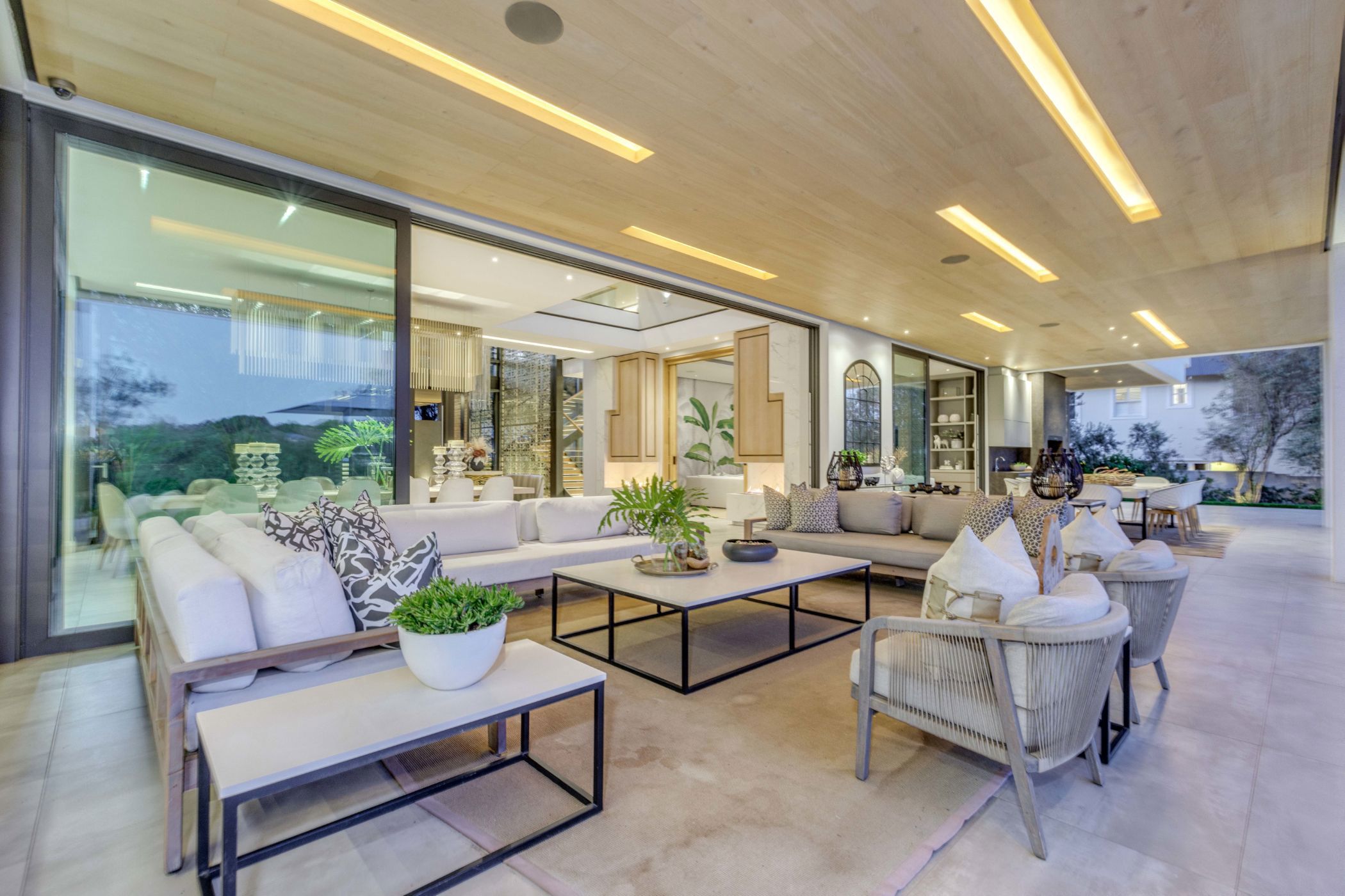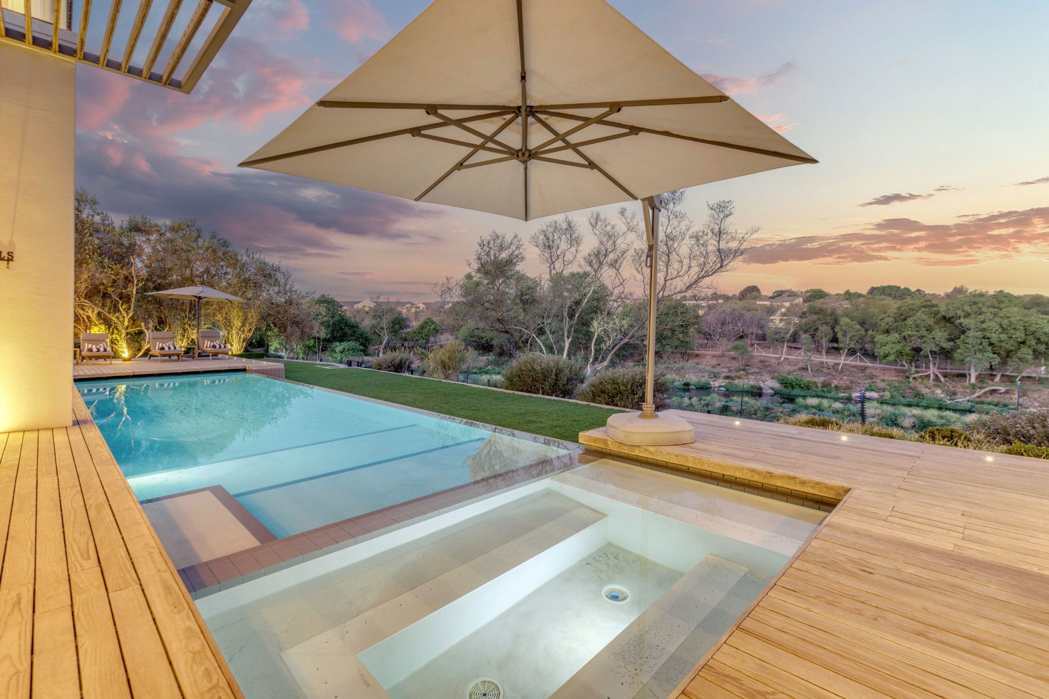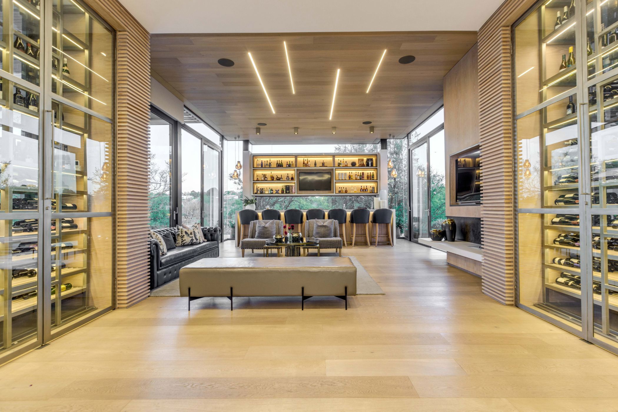 This home is smarter than your average genius: Full home automation from where you control your kingdom with a tap. 40 kW fully integrated battery backup system with 44 Solar Panels: Power outages? Never heard of ‘eBuckle up, because this isn’t just a home - it’s the crown jewel of Fourways, a 1,236 m2 masterpiece sprawled across a 2,227 m2 double riverside stand in the prestigious Helderfontein Estate.