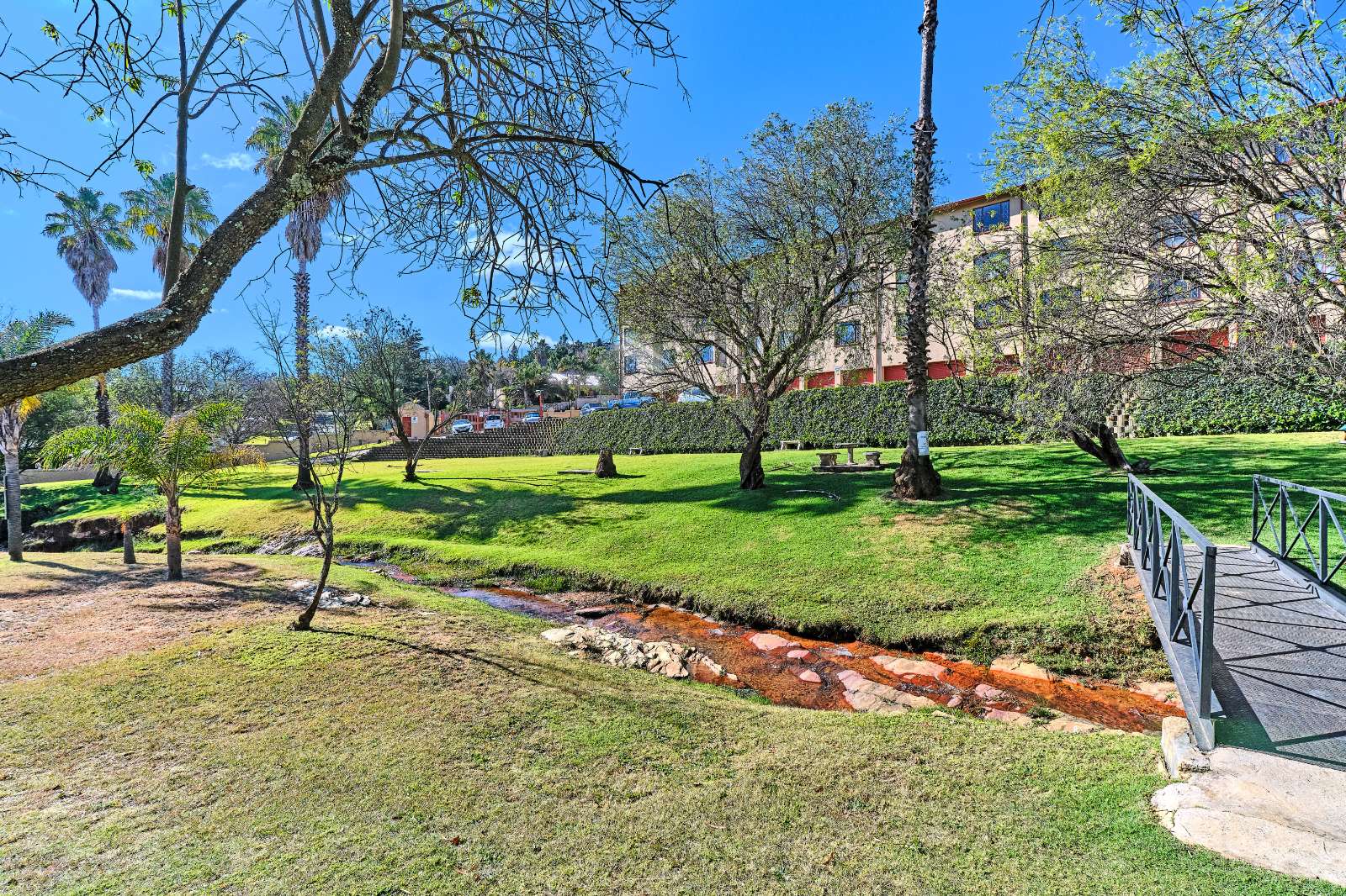 Enjoy access to beautifully maintained communal gardens, a large park for kids to play, and a serene water stream that enhances the natural ambiance. The complex is known for its quiet atmosphere and strong sense of community—making it a true hidden gem in the area