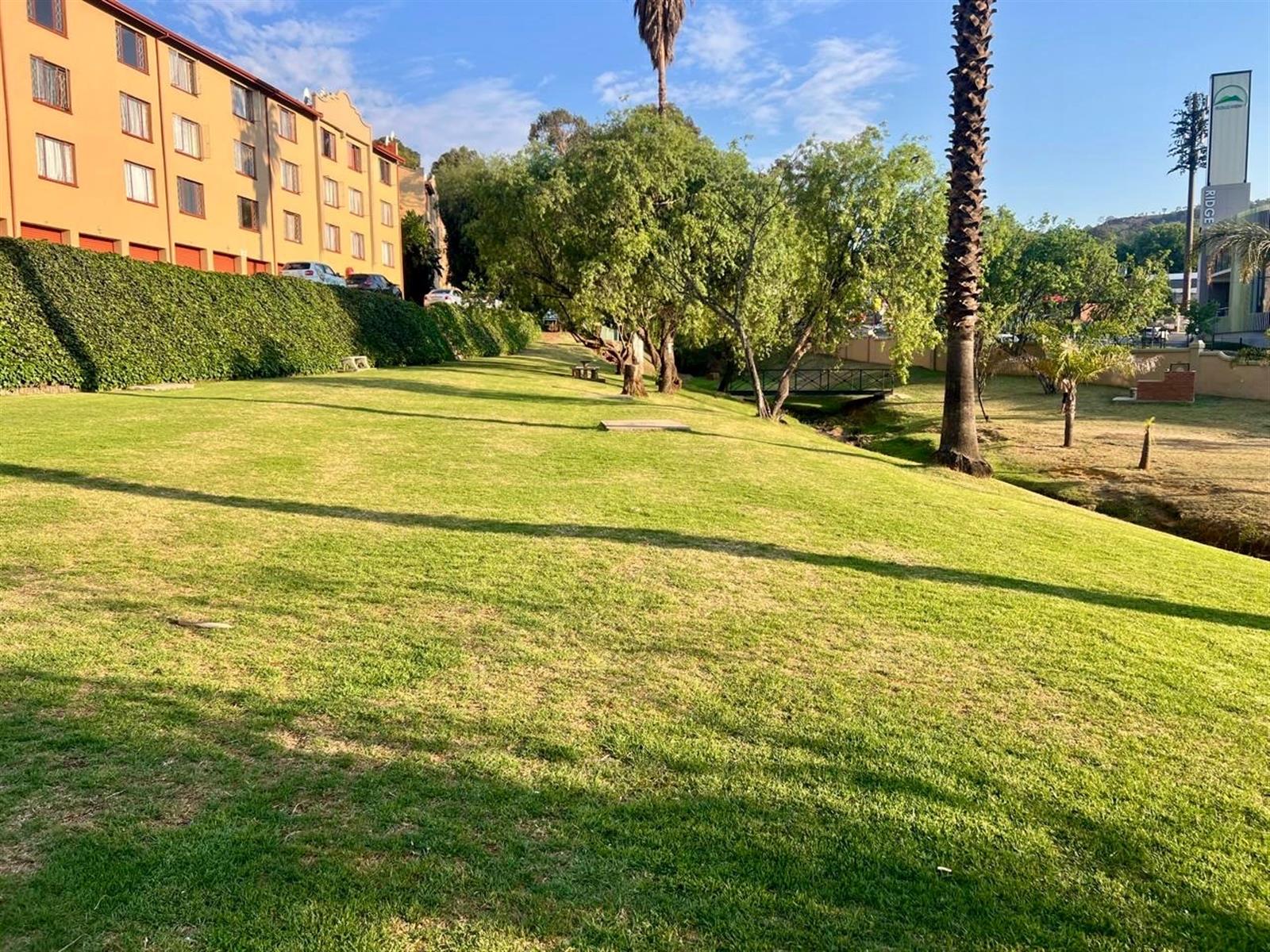 Welcome to this beautifully maintained apartment nestled in a secure, boomed-off area of Helderkruin. As you enter through the security gate, you’re greeted by a serene lifestyle setting — featuring lush landscaped gardens, a sparkling swimming pool, tranquil water streams flowing over natural stones, built-in braai areas, and a fun jungle gym for the little ones.