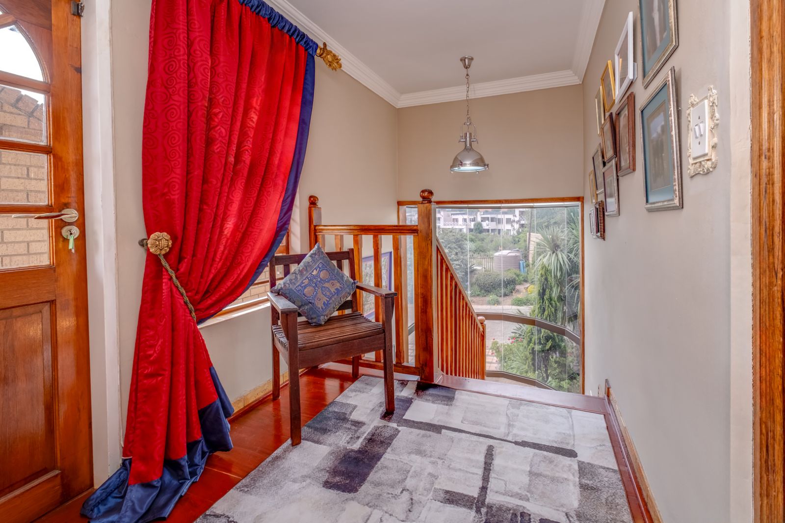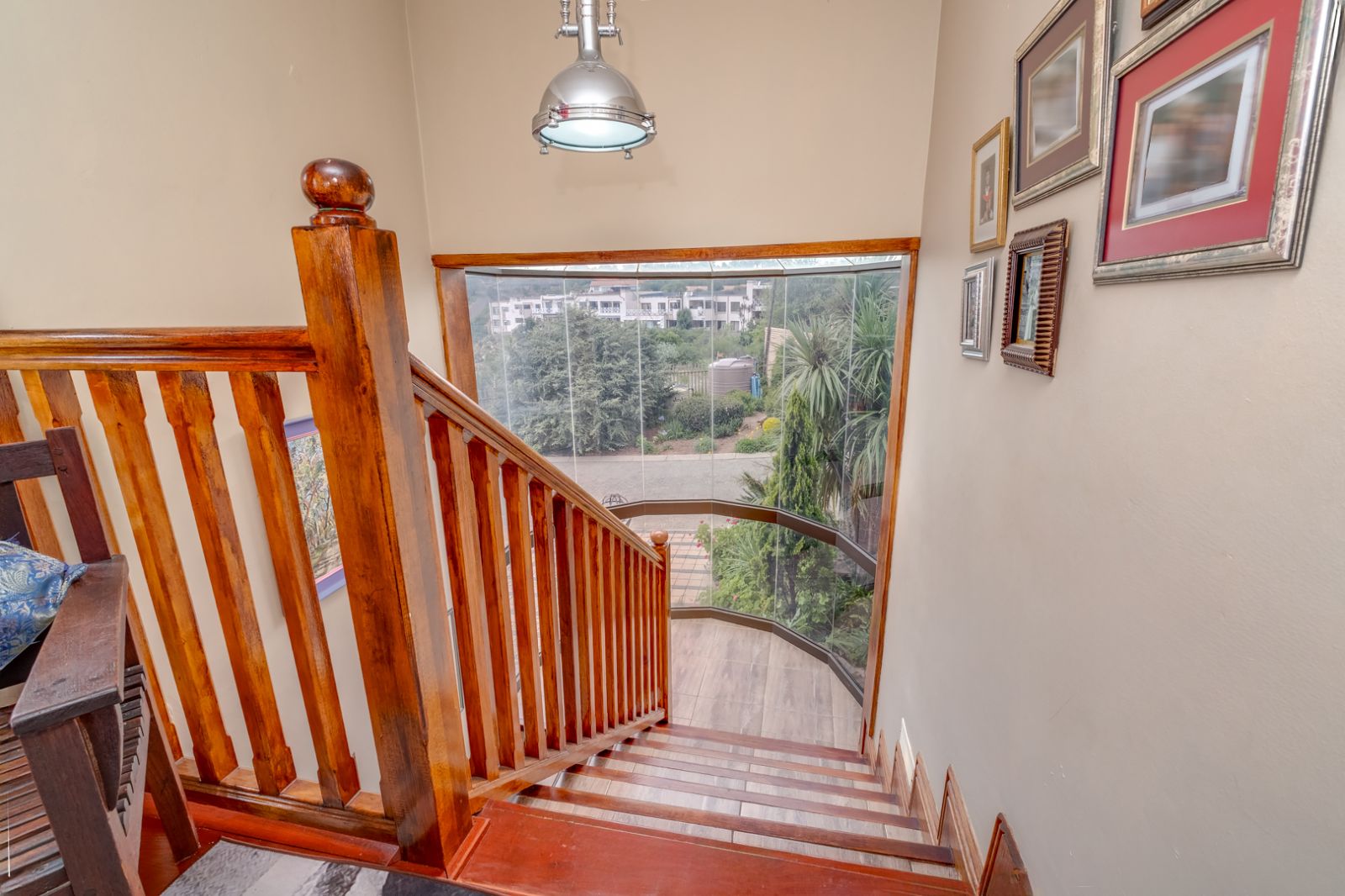 Ascend the striking staircase enclosed by floor-to-ceiling glass to the upper level, where privacy and tranquillity await.