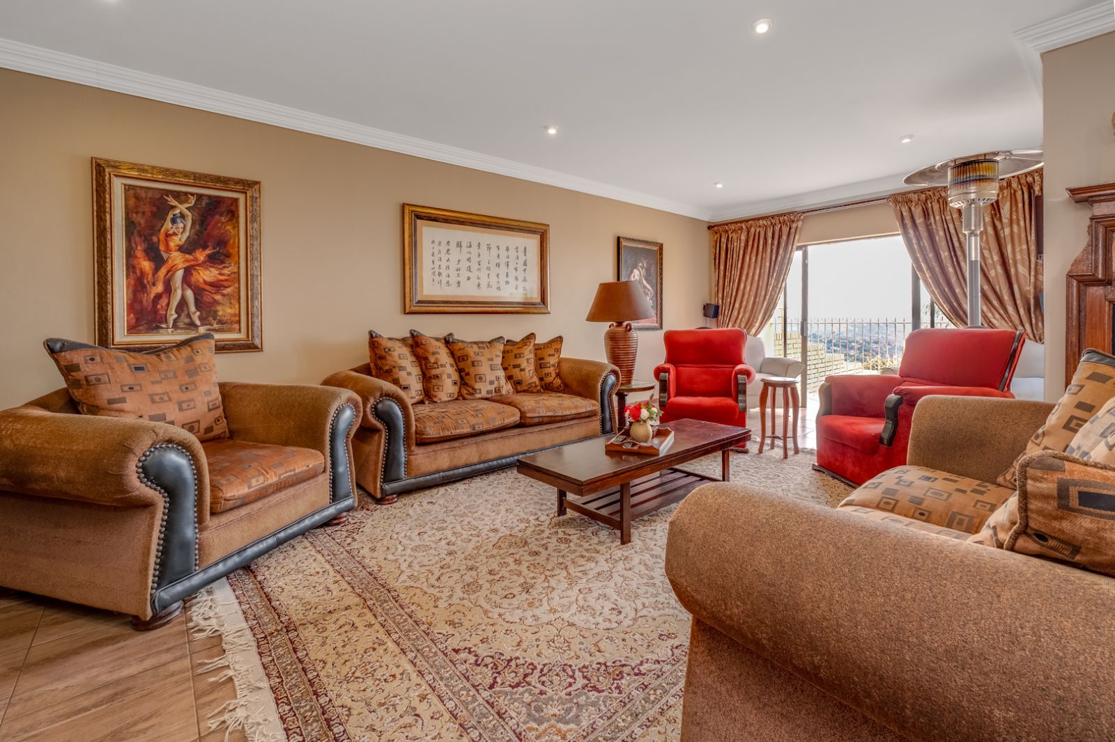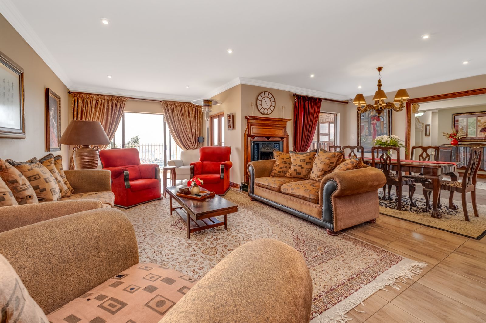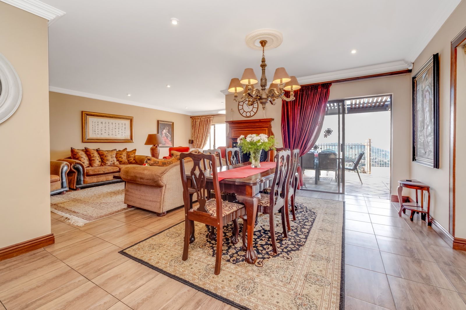 Adjacent to the dining room is a spacious, light-filled living room, while a second lounge provides additional versatility. Both living areas open onto a generous patio, offering breathtaking views – the perfect setting for morning coffees or evening sundowners.