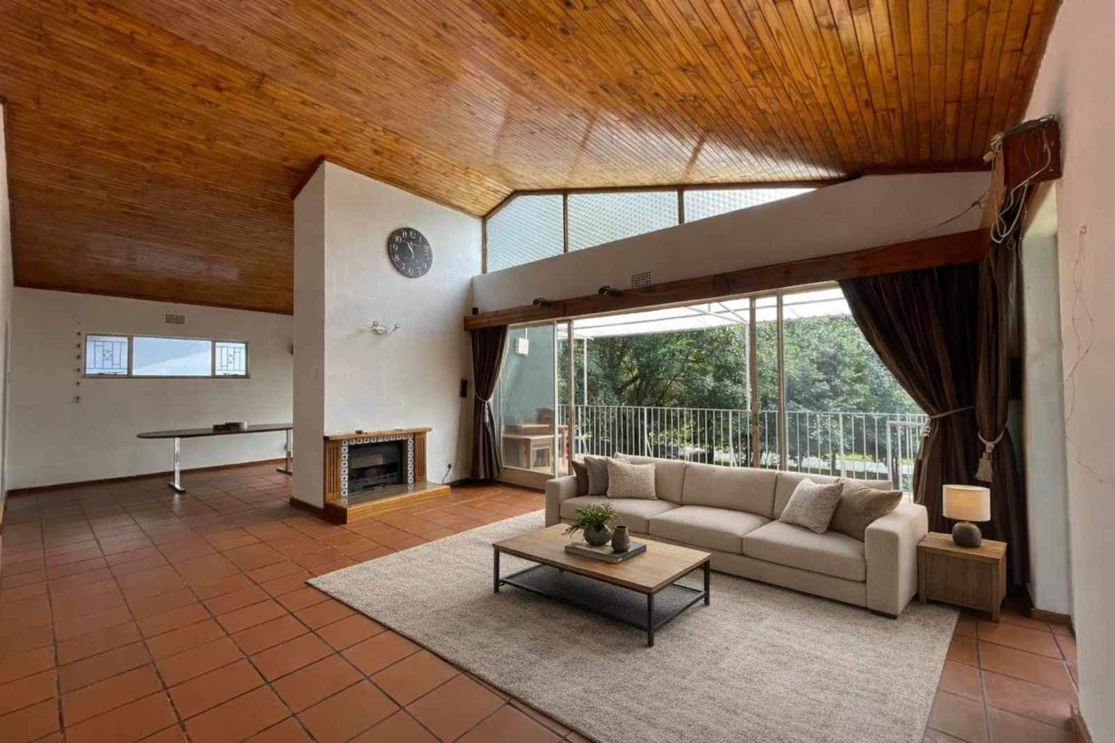 A spacious lounge, which can comfortably double as a family room, is fitted with a fireplace for cosy winter evenings and glass sliding doors that open onto a covered patio—perfect for relaxed indoor-outdoor living. The dining room is conveniently positioned adjacent to both the lounge and kitchen, creating a seamless flow for family living and entertaining.