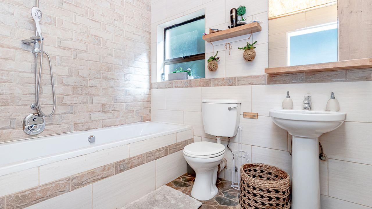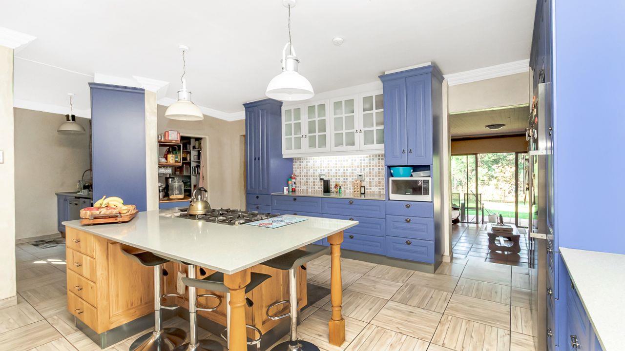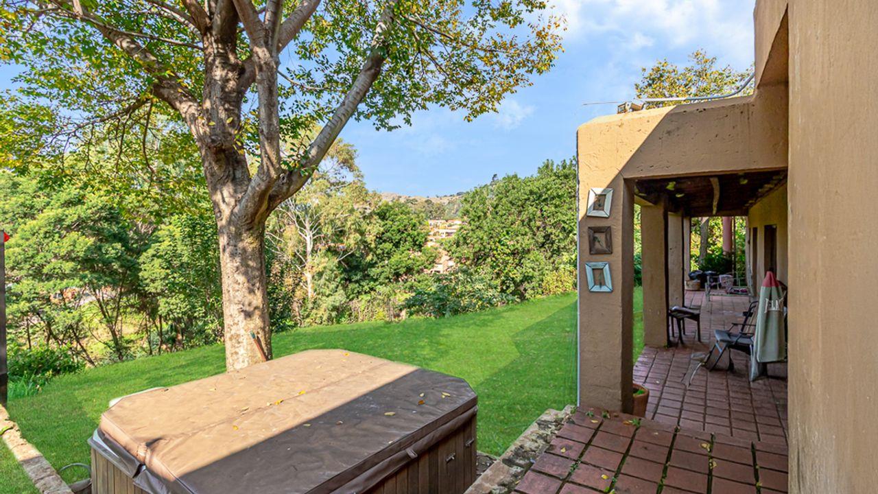 The main homestead offers six generous bedrooms and four bathrooms. Each bedroom is well-sized and fitted with sliding doors that open out to the beautifully established garden, jacuzzi, and swimming pool. Three of the bathrooms have been tastefully renovated with modern tiles and fittings.