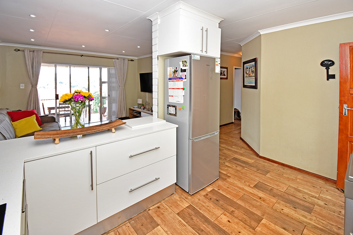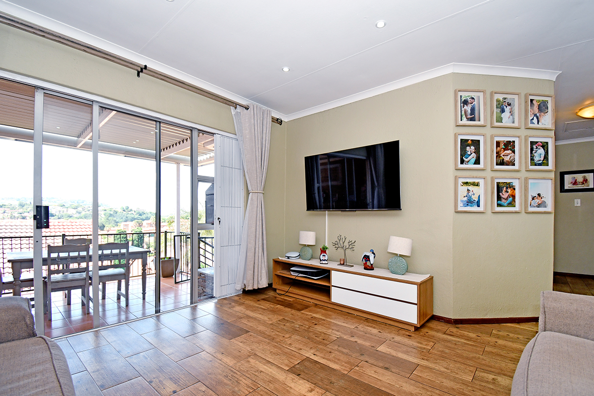 Ideally situated in the ever-popular Helderkruin area, this beautifully finished family home offers breathtaking views from its private balcony. The home features three sunny bedrooms, with the main bedroom opening directly onto the balcony, as well as two bathrooms, including a modern main en-suite. The contemporary kitchen is fitted with Caesarstone countertops, a glass-top stove, and generous cupboard space. A spacious, open-plan lounge enhanced by stylish downlights flows seamlessly onto the balcony, where you can enjoy the stunning outlook.