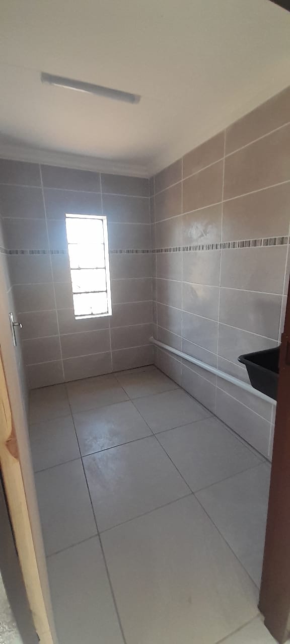 Kitchen, new cupboards and stove, and a laundry area wth a stoep