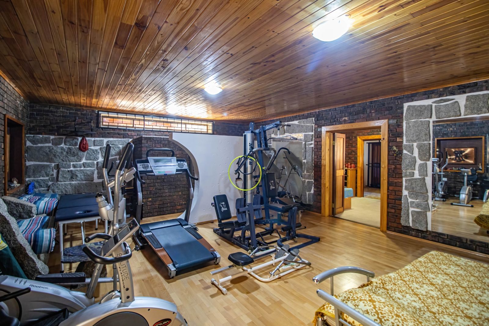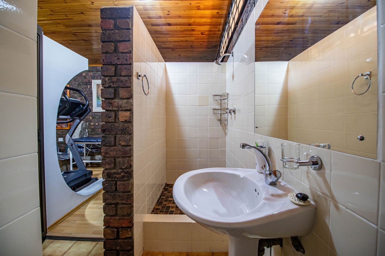 Same level down, leading to a full presently used gym/yoga/Pilates studio with ablution facilities, followed by a self-contained flatlet which can be utilised as a teen pad, income-generating unit, or guest suite.