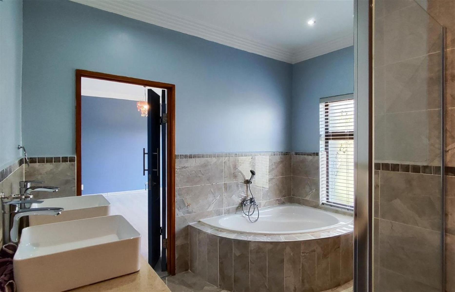 Step into elegance and comfort with this stunning 5-bedroom, 4-bathroom home situated in the prestigious Helderwyk Estate— where style meets security and space.