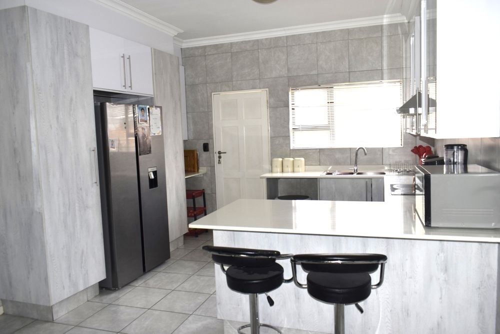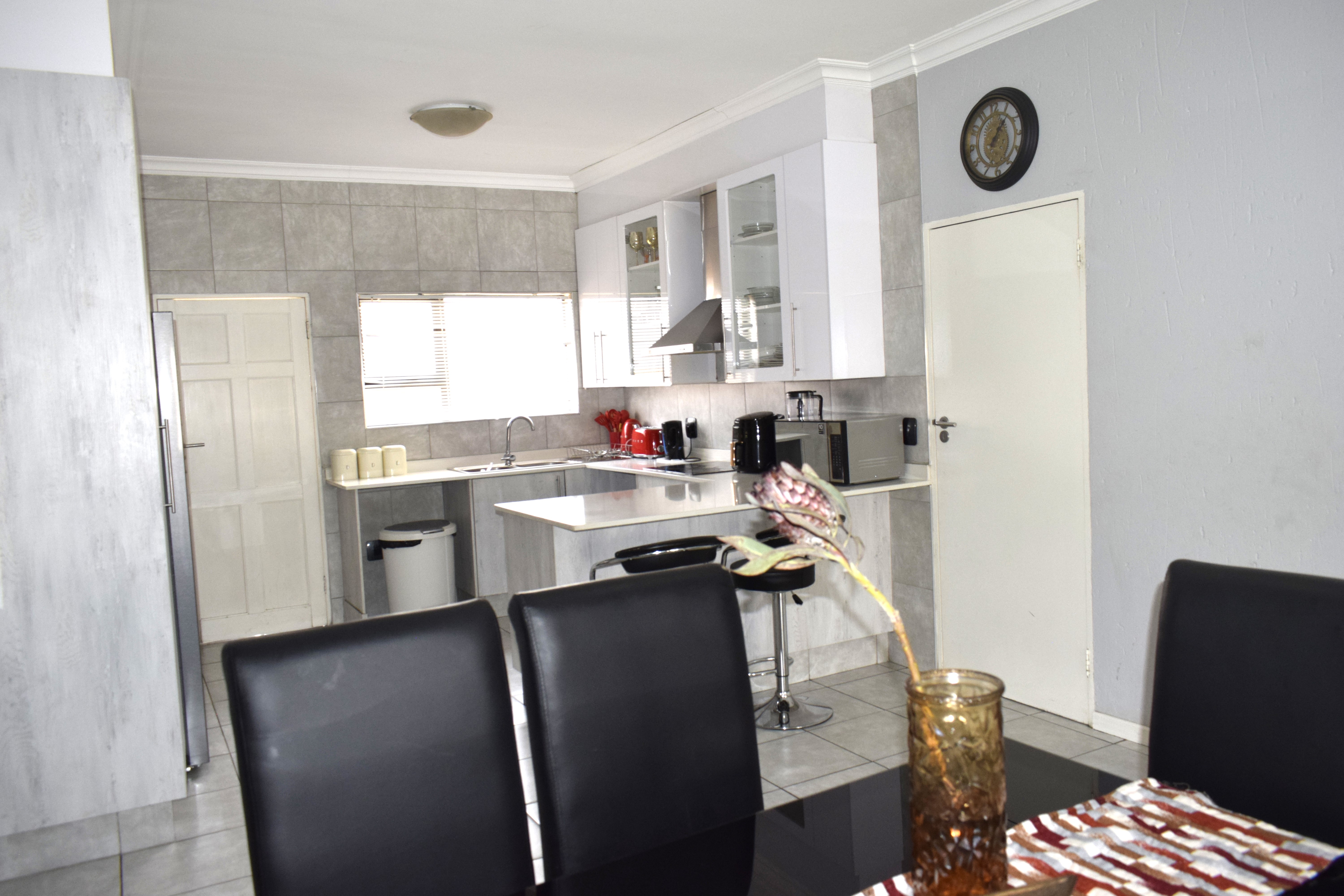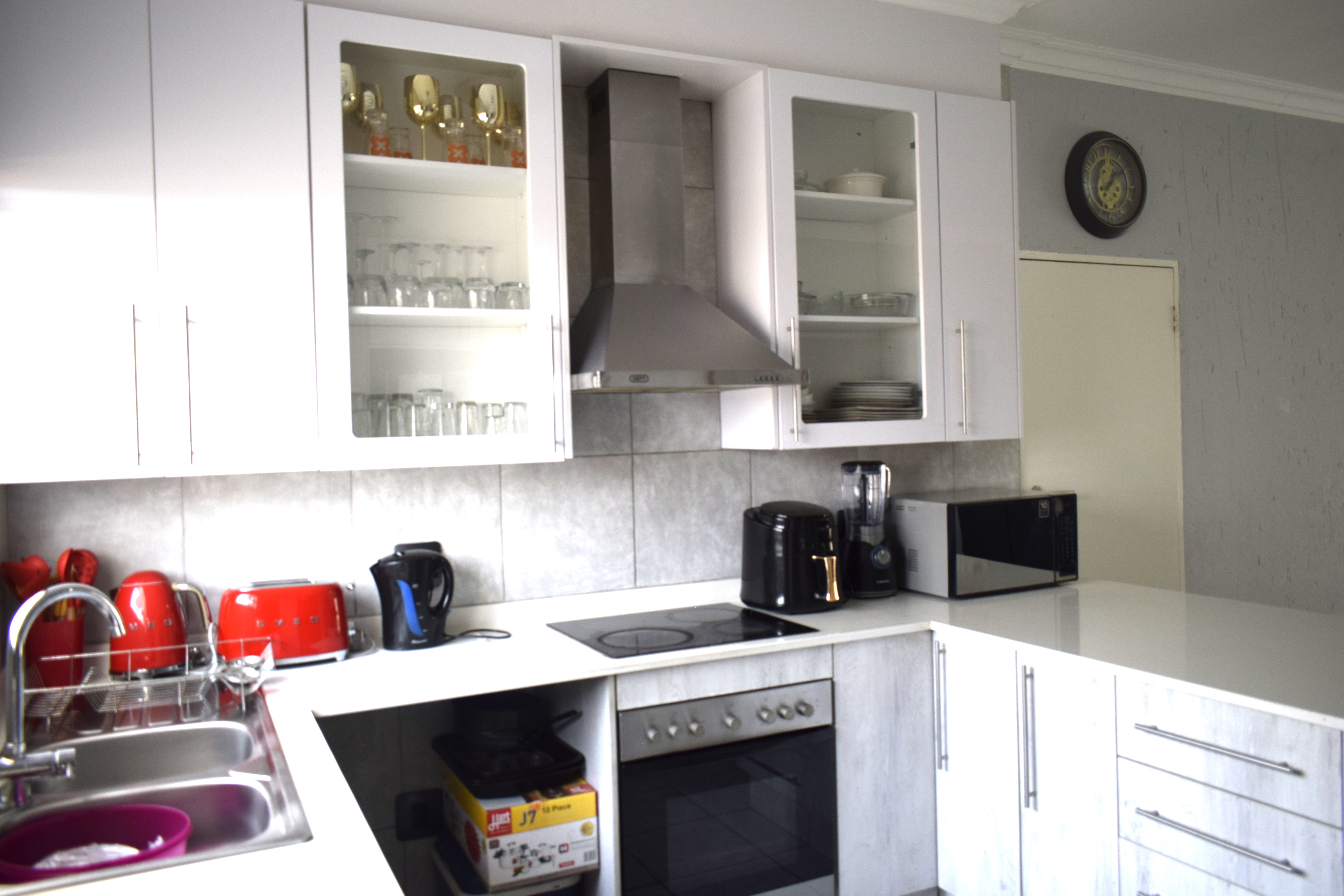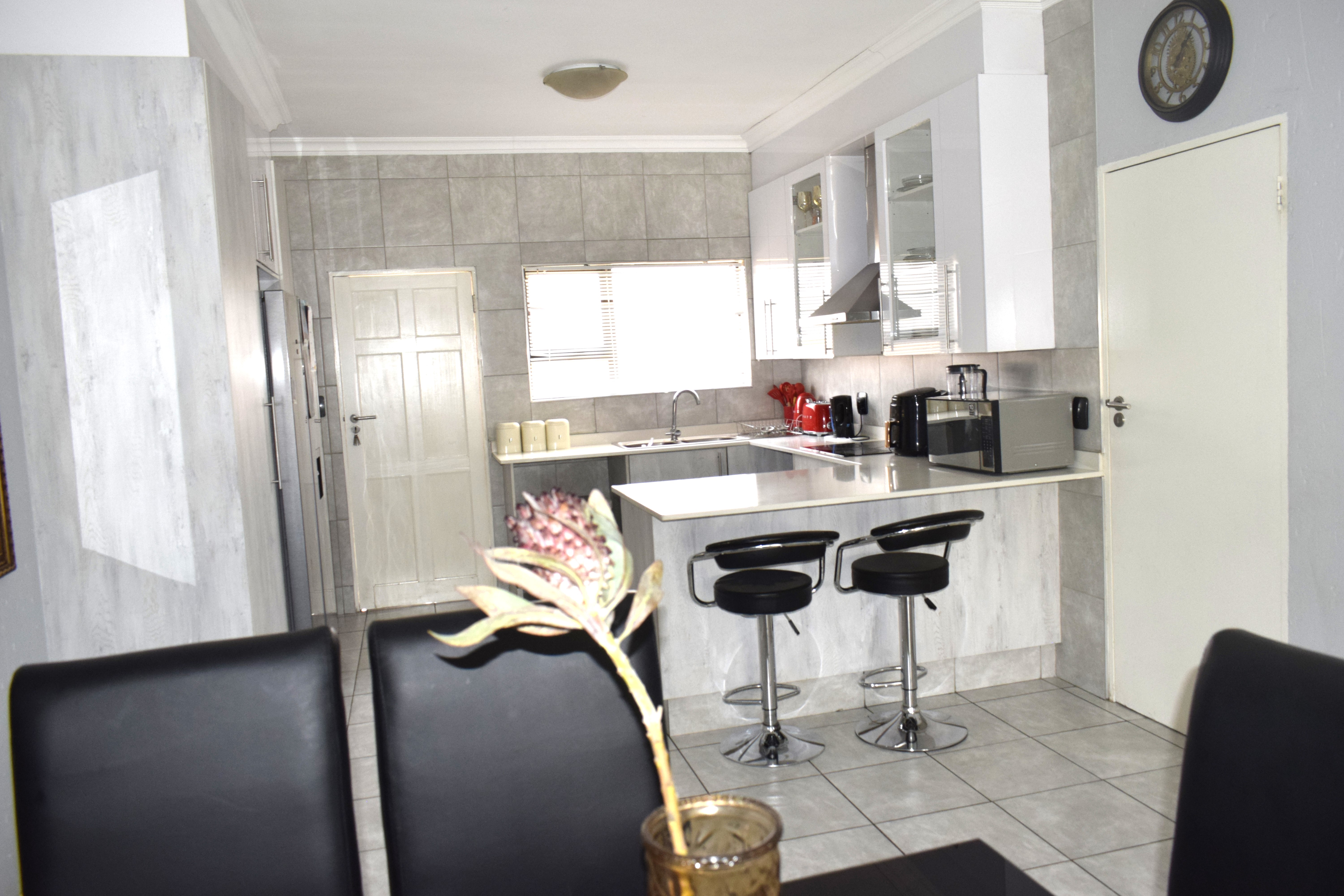 The garage is neat which is neatly tile and it has space for laundry applications. Can fit a large SUV car.