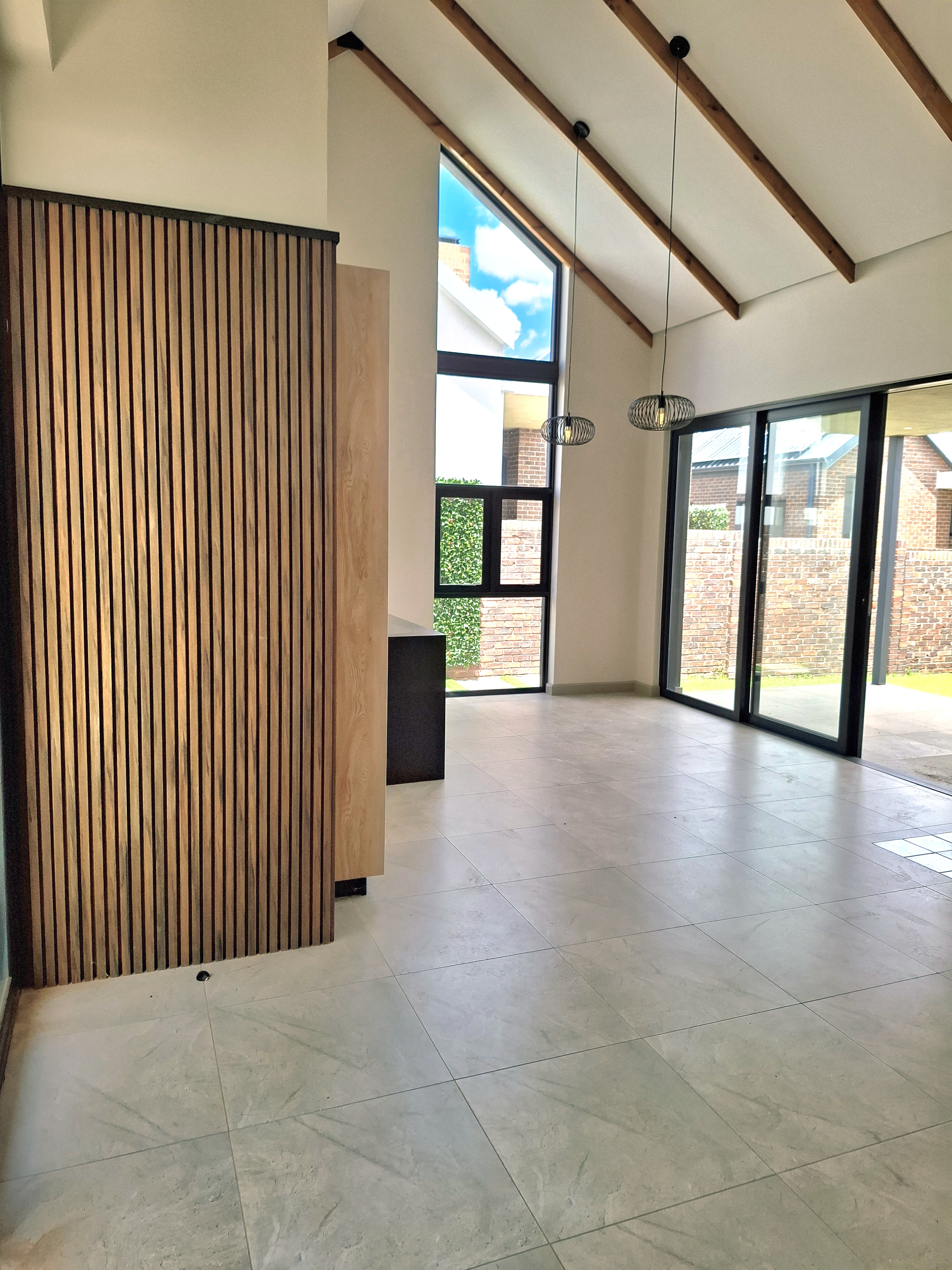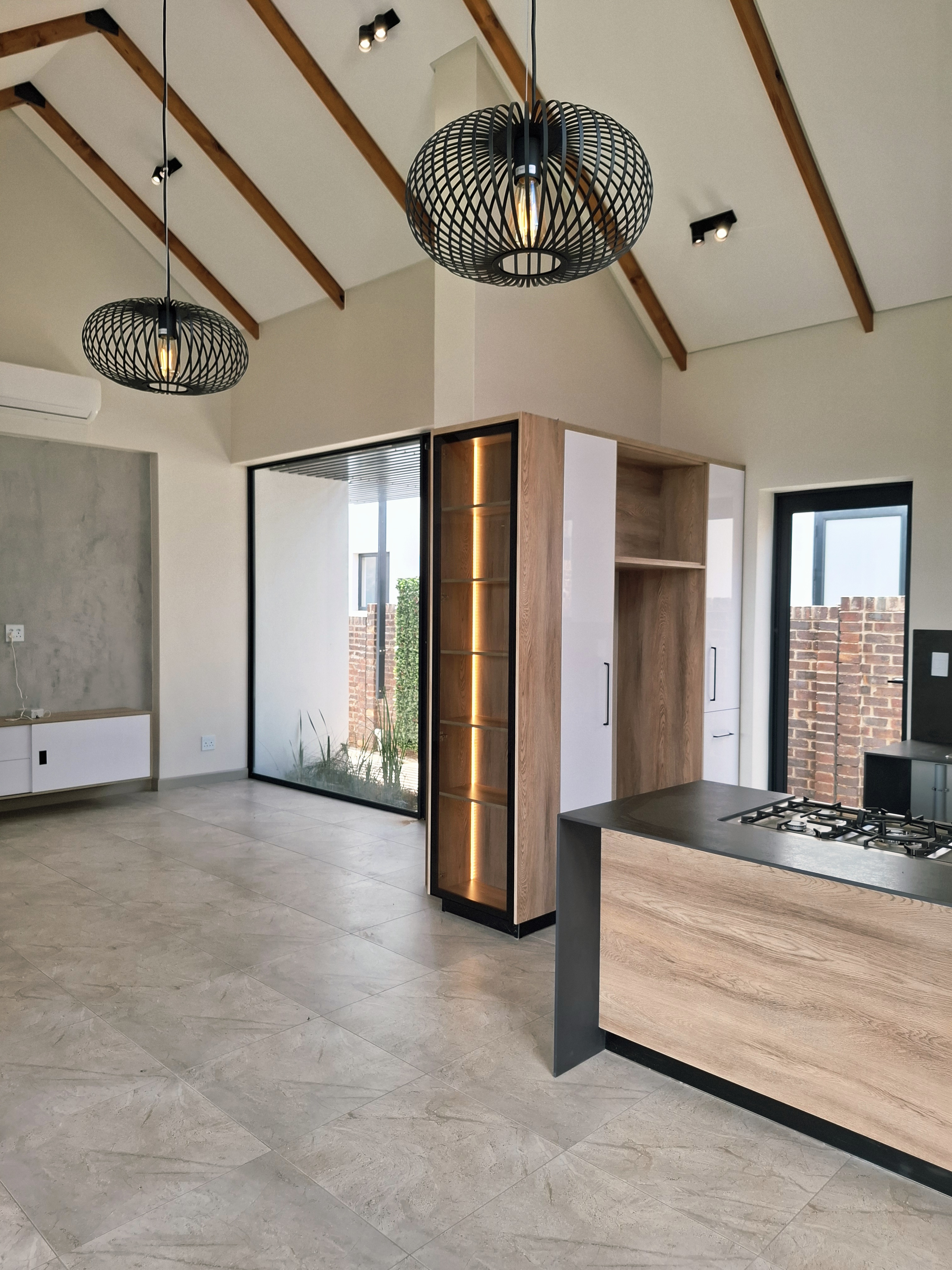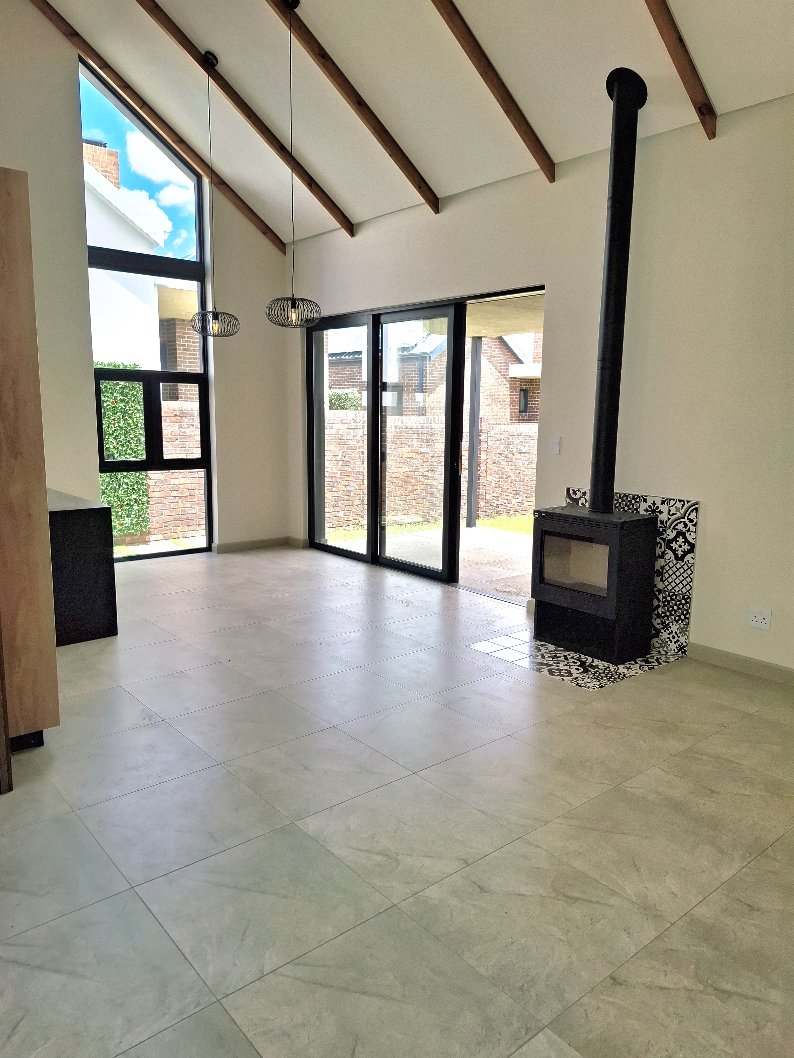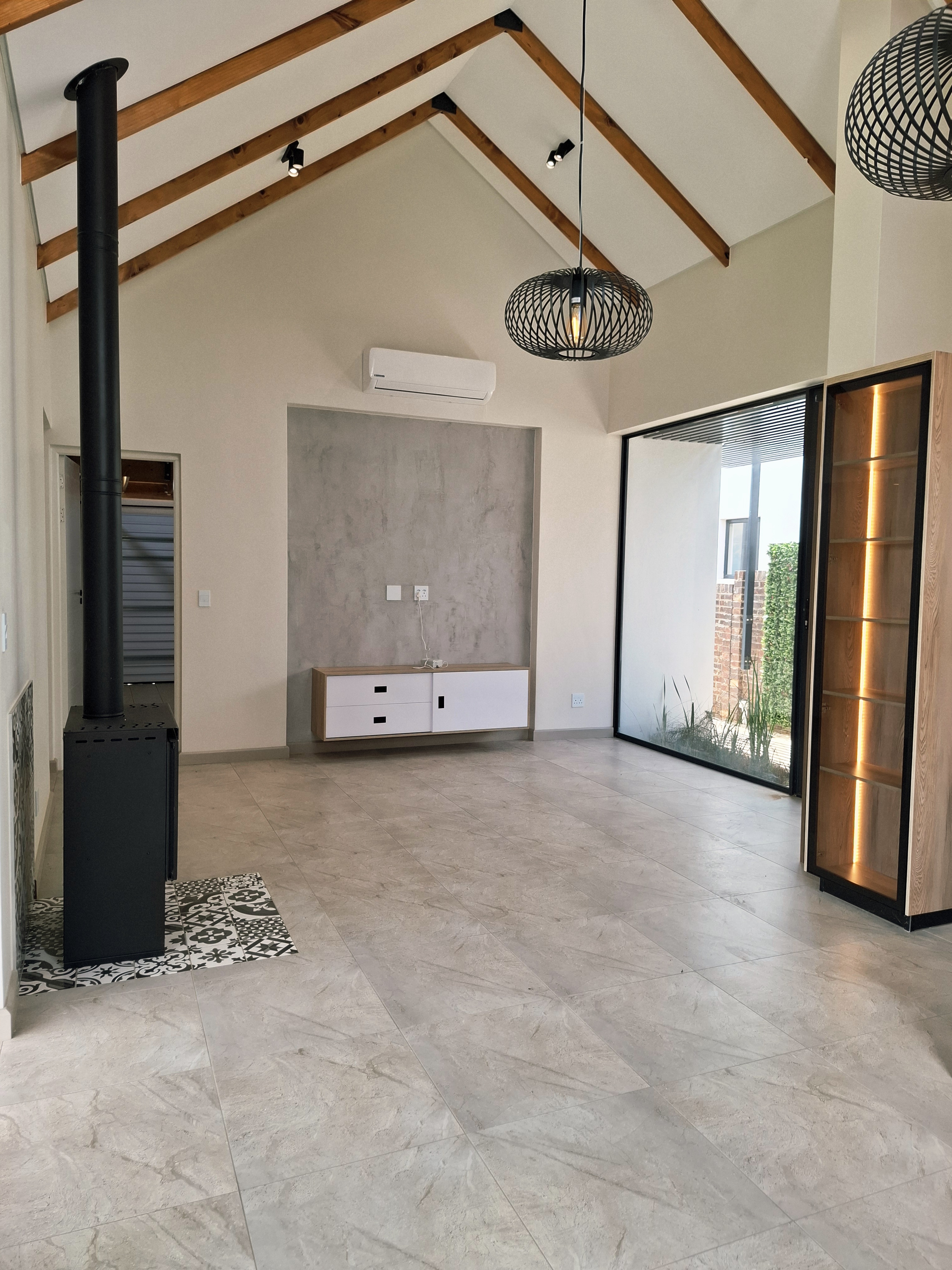 Welcome to this exquisite, newly built 3-bedroom home, offering the perfect balance of elegance, comfort, and modern convenience. Designed with attention to detail, this upmarket residence is ideal for people seeking a stylish and secure lifestyle in a premium location. This home includes: 2 x Gas Geysers 5 Burner gas stove, electric oven- Gas bottles will be supplied. Aircon in main bedroom and living area Slow combustion fireplace 5 KVA Inverter with Battery and 5 solar panels Water filtration for household use in scullery/kitchen. Contact me for a viewing today!