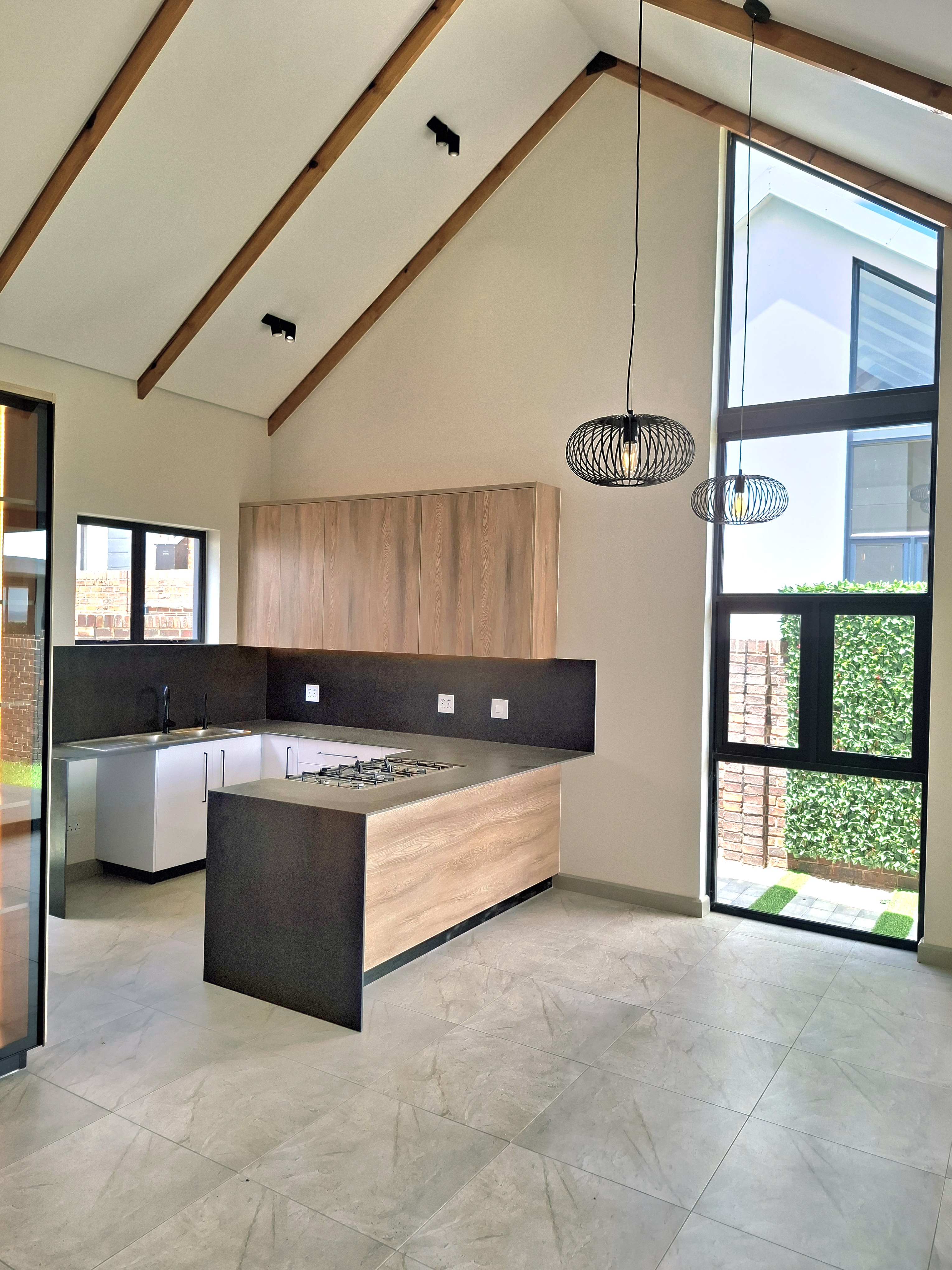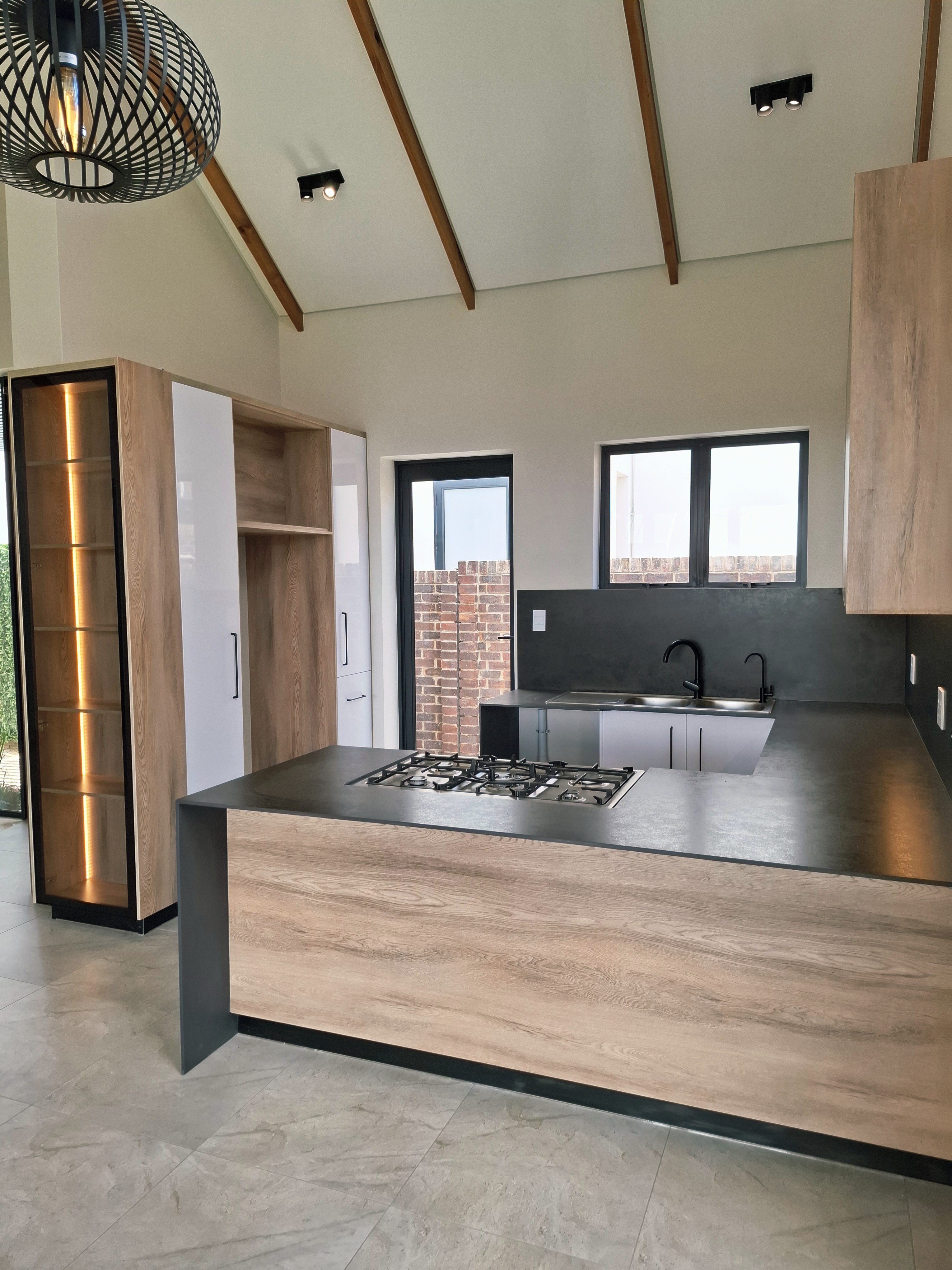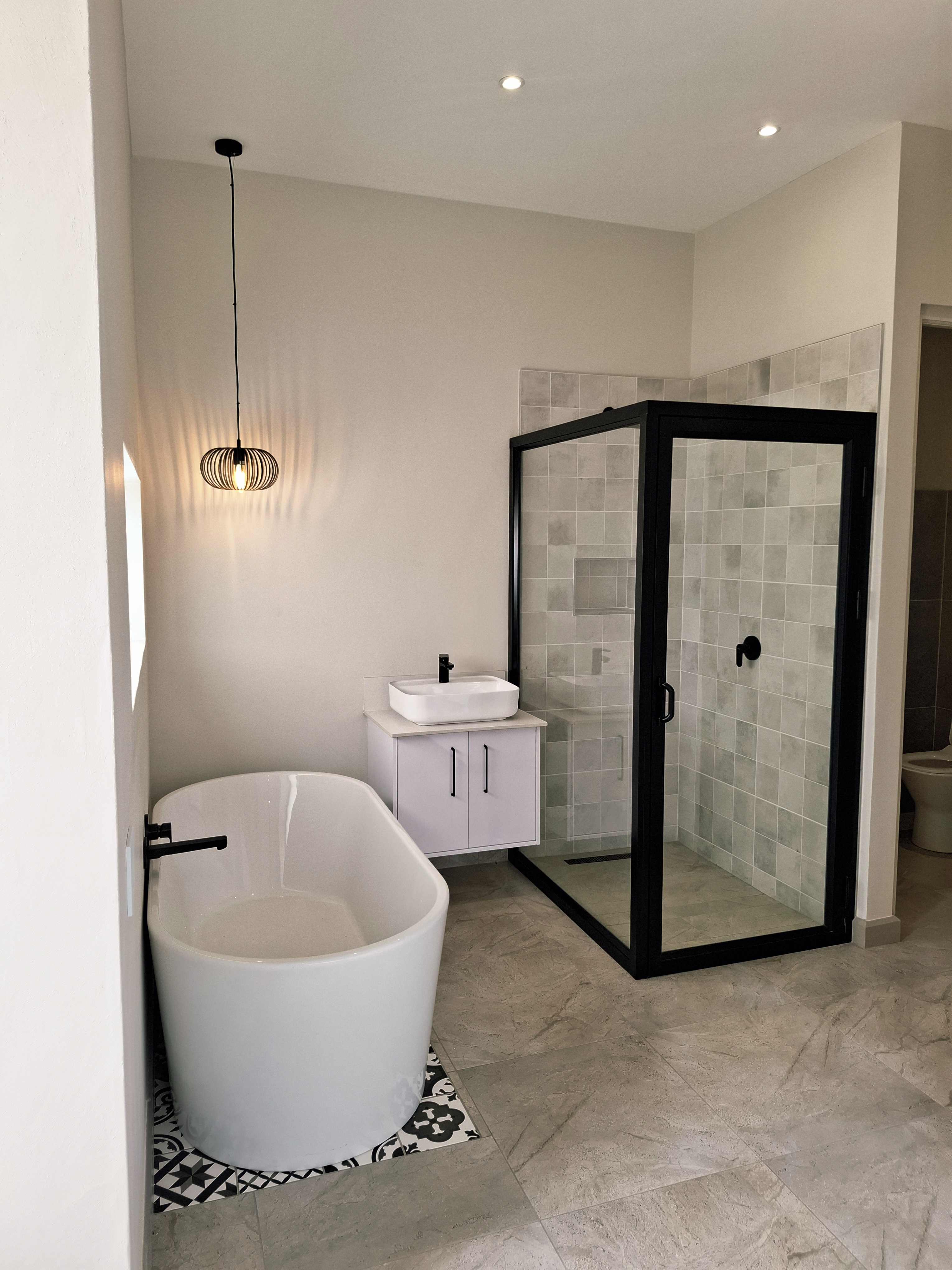 Welcome to this exquisite, newly built 3-bedroom home, offering the perfect balance of elegance, comfort, and modern convenience. Designed with attention to detail, this upmarket residence is ideal for people seeking a stylish and secure lifestyle in a premium location. This home includes: 2 x Gas Geysers 5 Burner gas stove, electric oven- Gas bottles will be supplied. Aircon in main bedroom and living area Slow combustion fireplace 5 KVA Inverter with Battery and 5 solar panels Water filtration for household use in scullery/kitchen. Contact me for a viewing today!