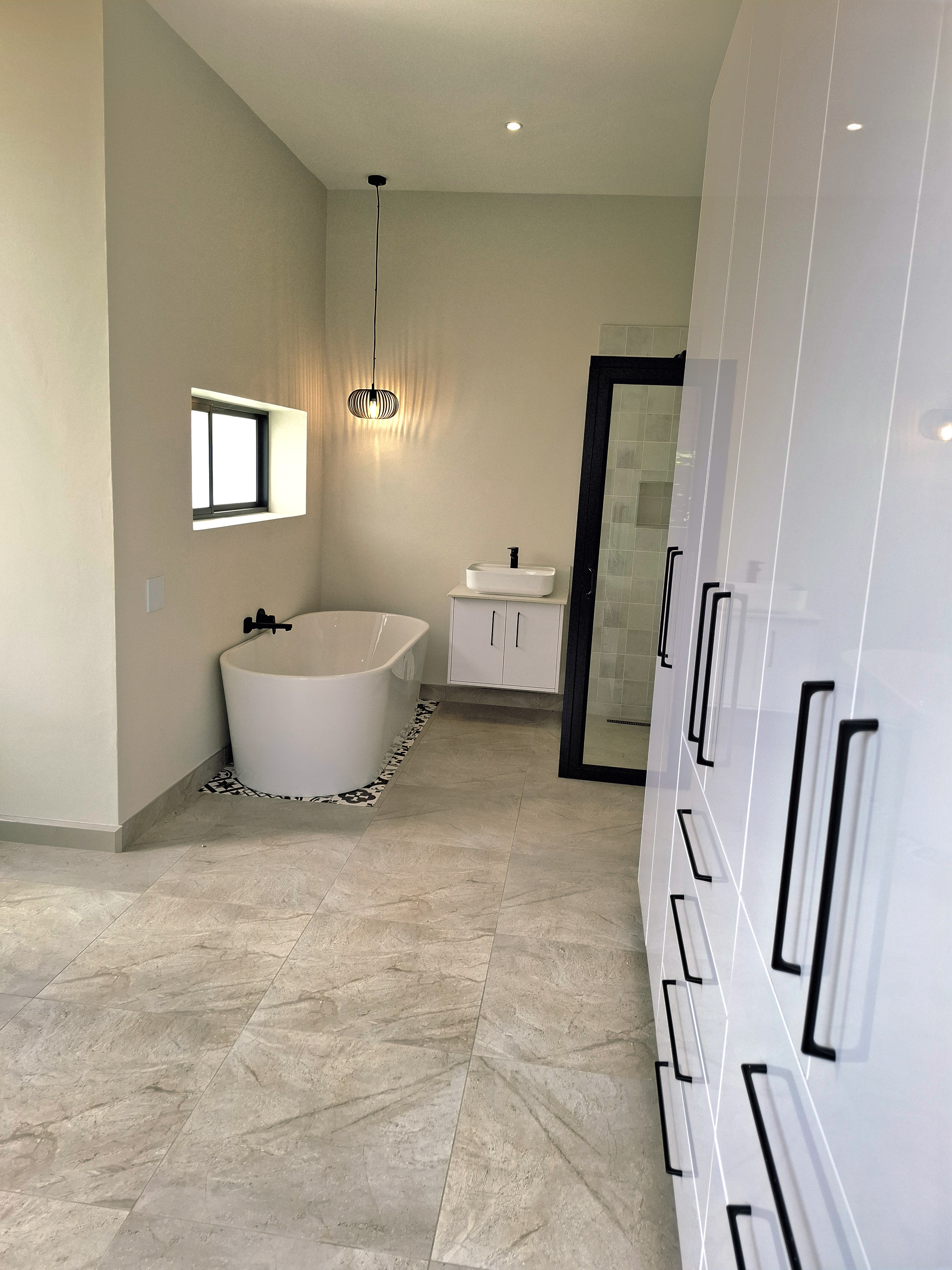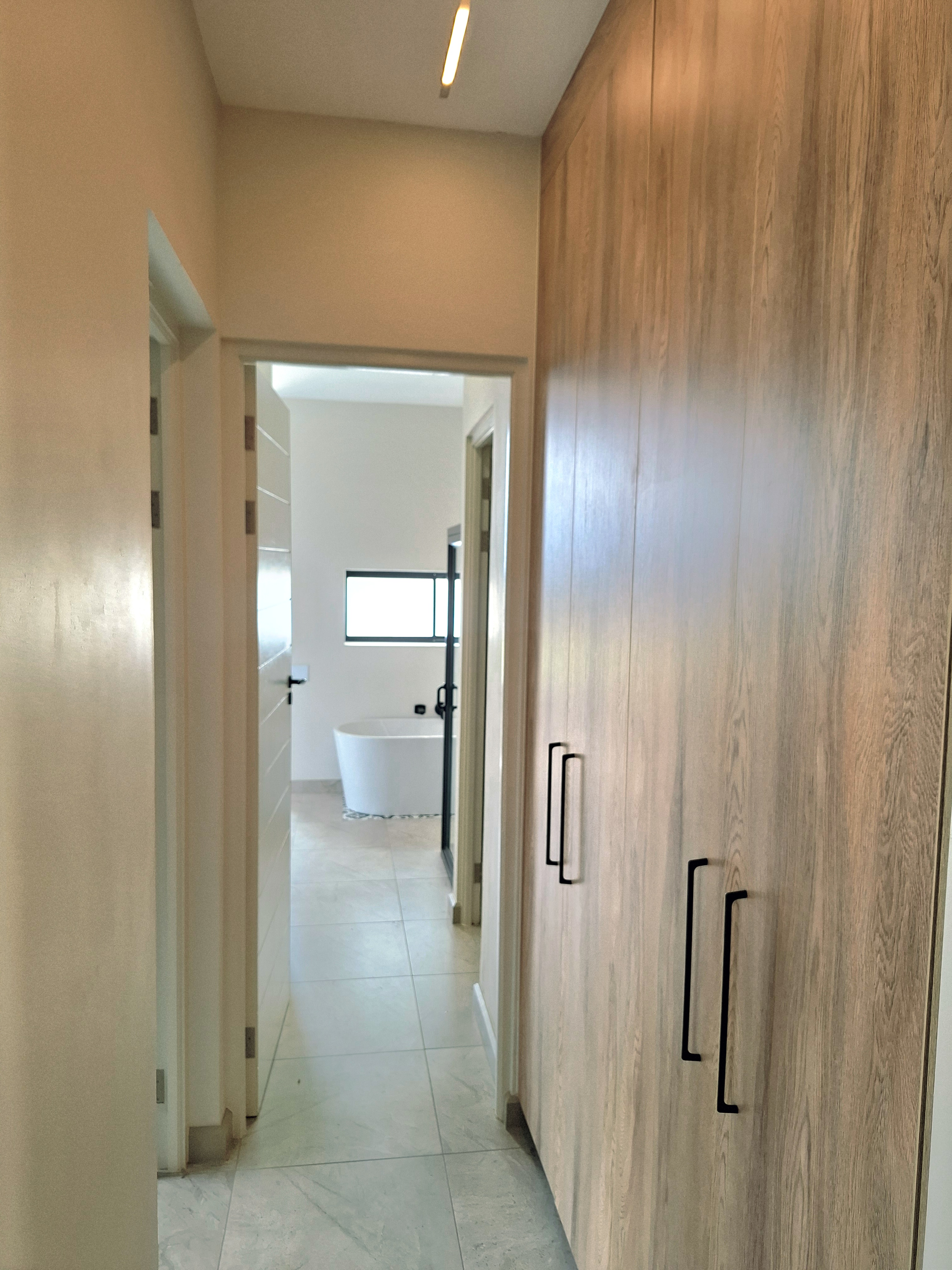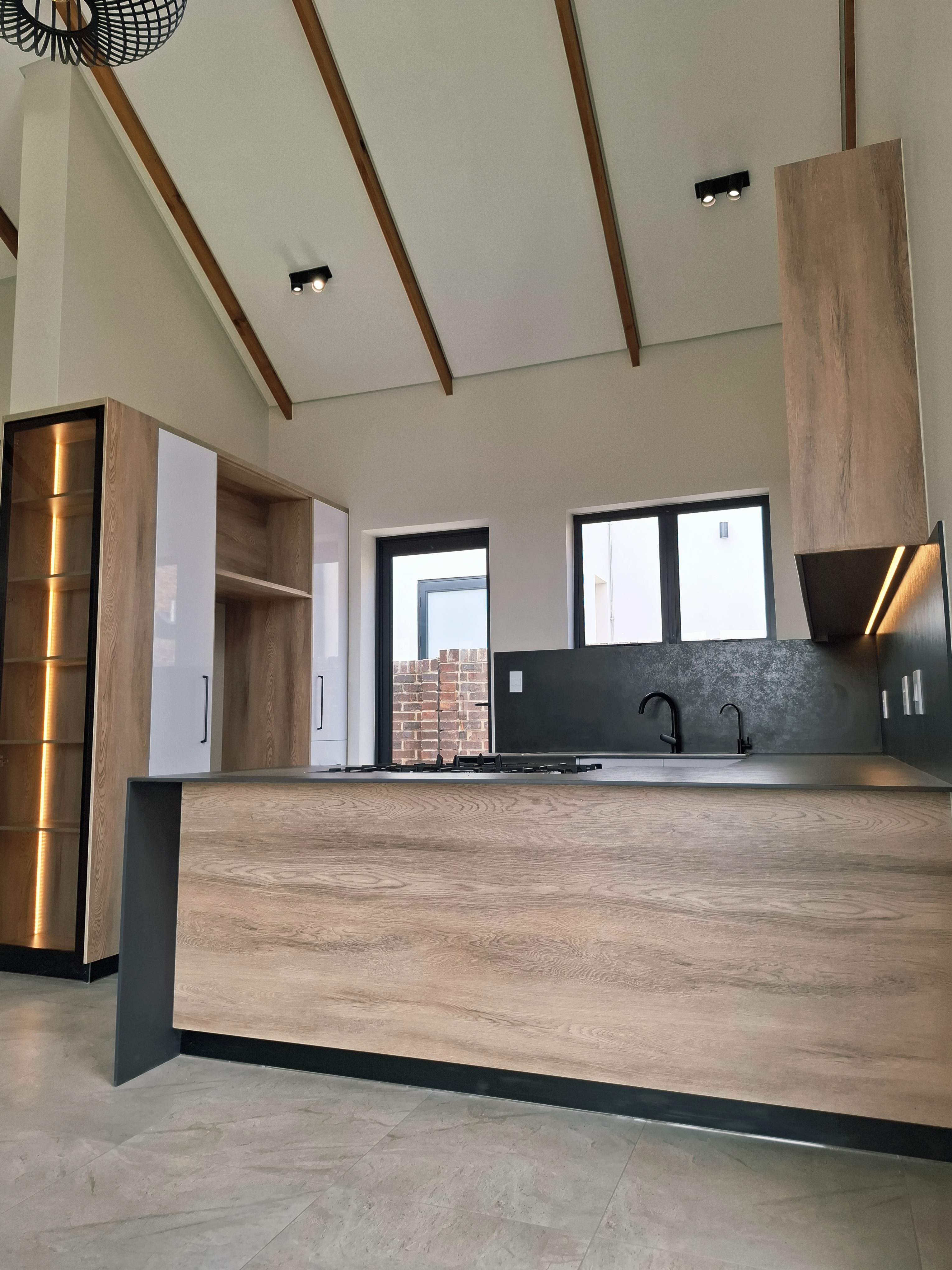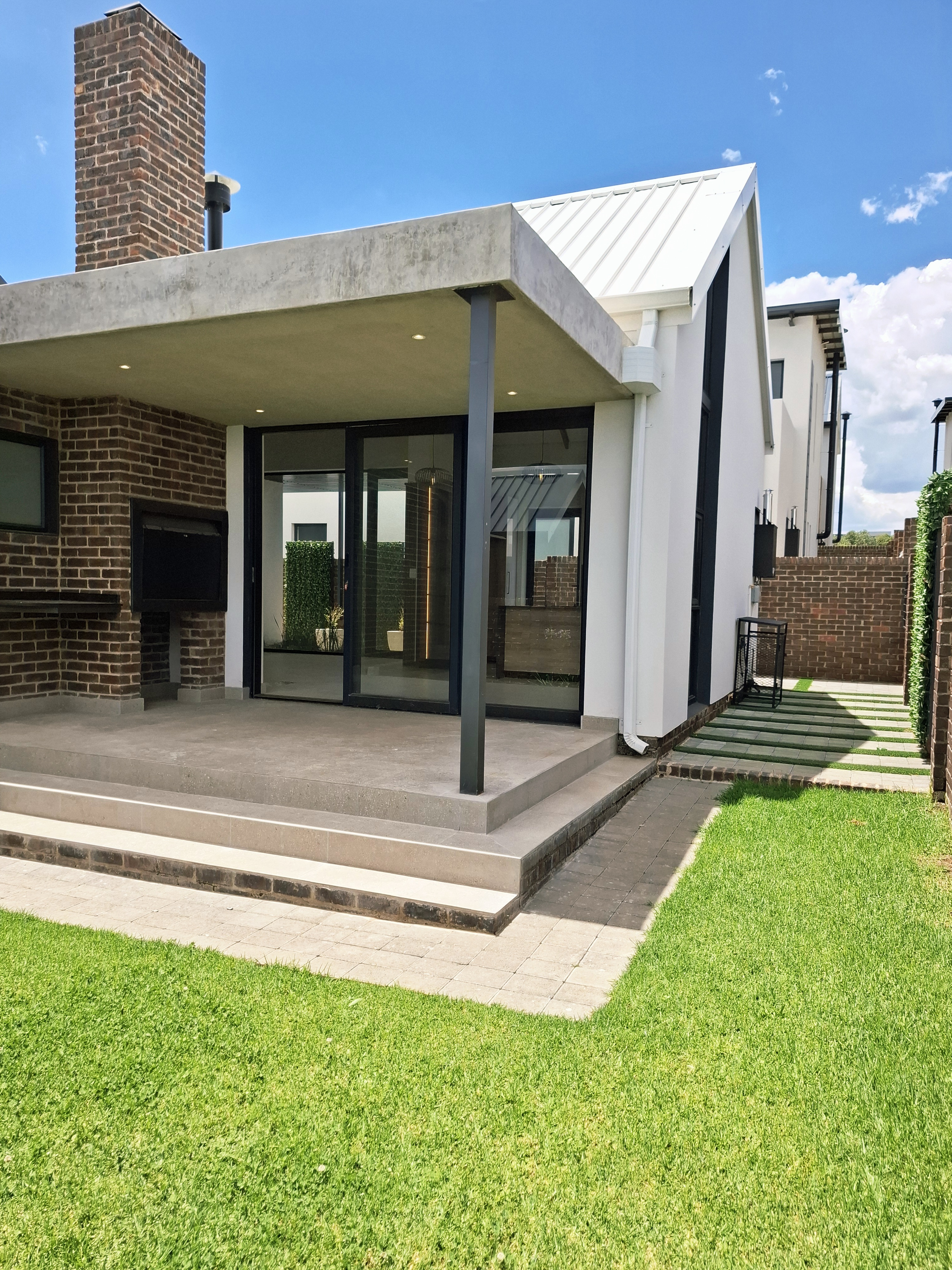 Welcome to this exquisite, newly built 3-bedroom home, offering the perfect balance of elegance, comfort, and modern convenience. Designed with attention to detail, this upmarket residence is ideal for people seeking a stylish and secure lifestyle in a premium location. This home includes: 2 x Gas Geysers 5 Burner gas stove, electric oven- Gas bottles will be supplied. Aircon in main bedroom and living area Slow combustion fireplace 5 KVA Inverter with Battery and 5 solar panels Water filtration for household use in scullery/kitchen. Contact me for a viewing today!