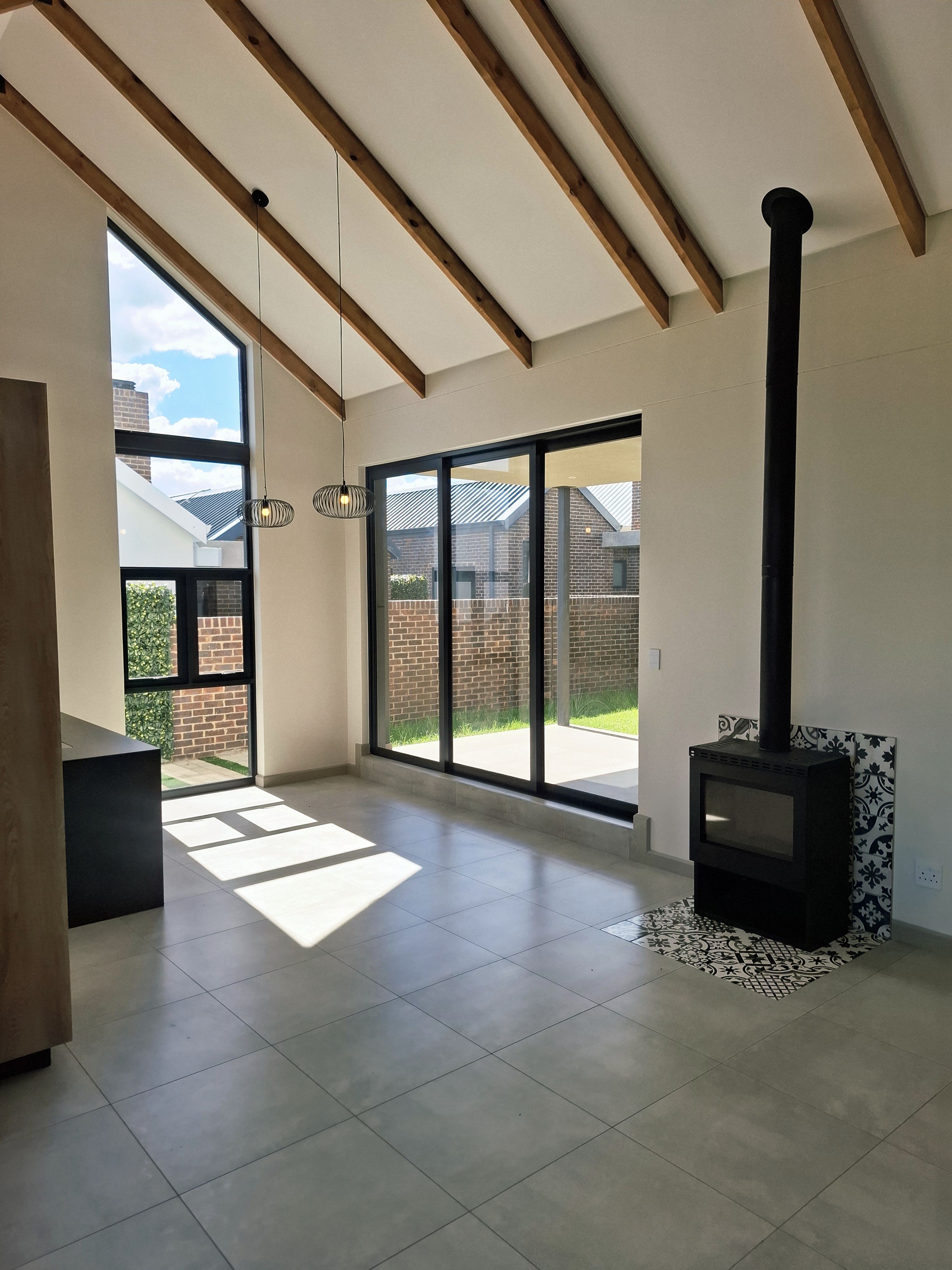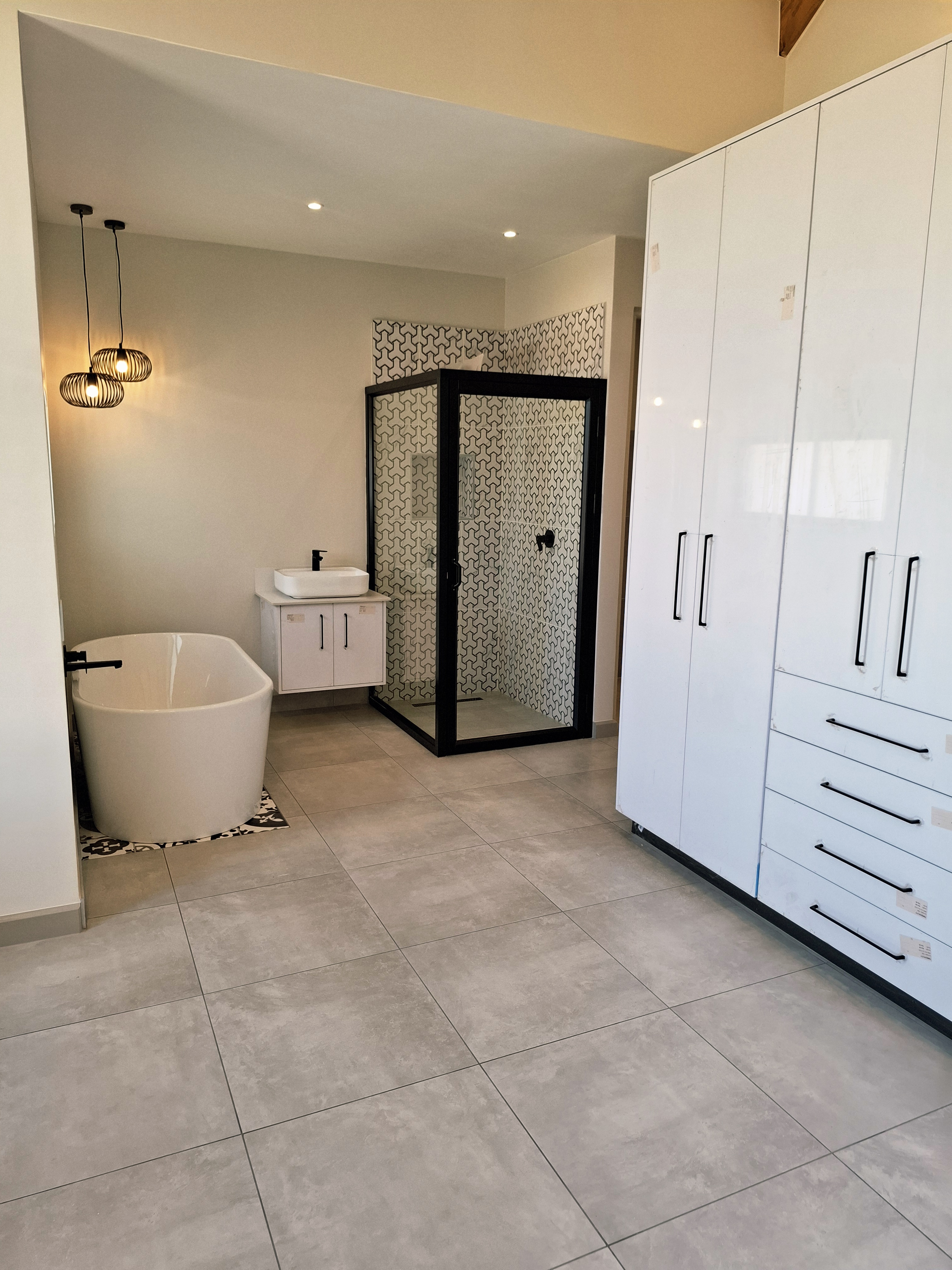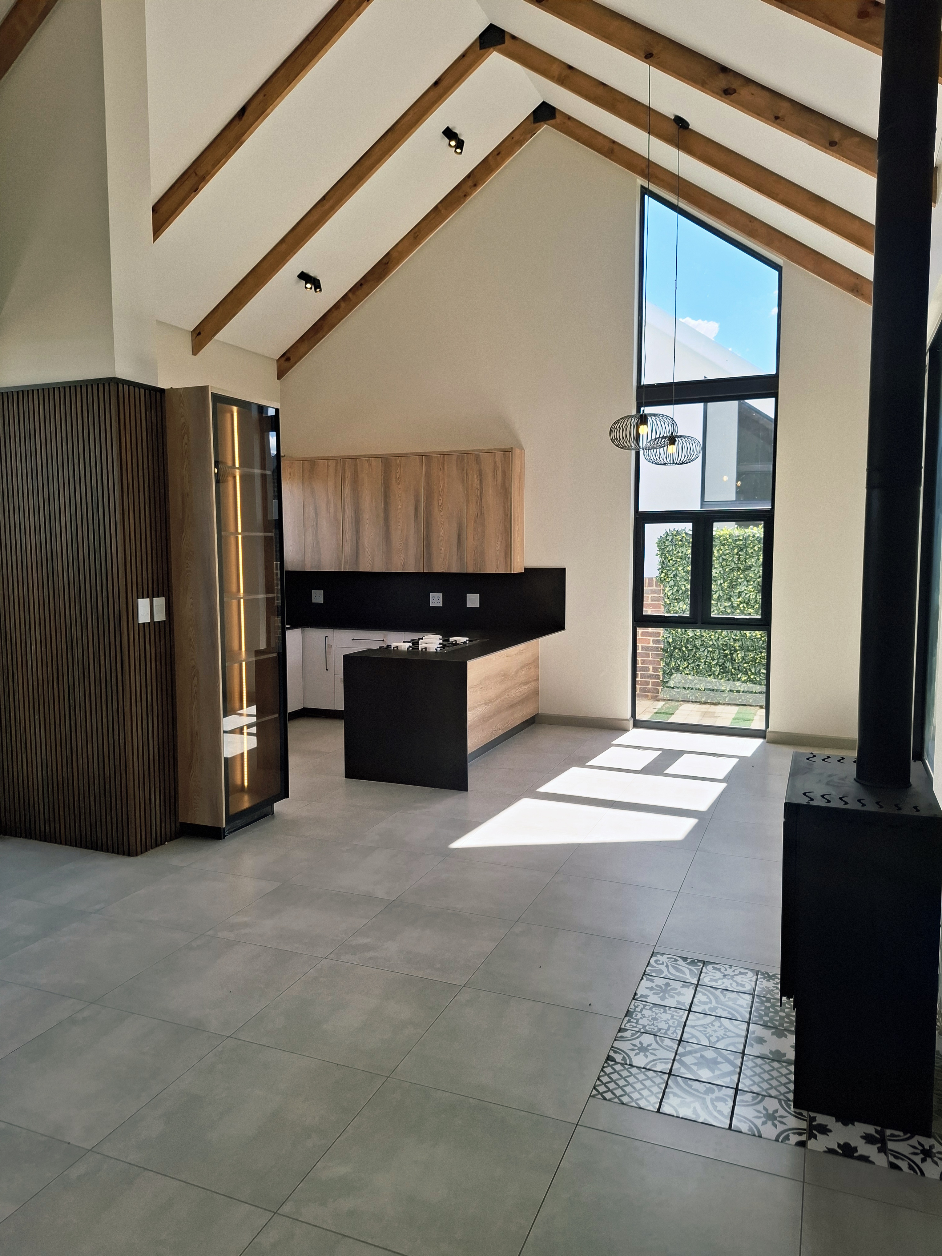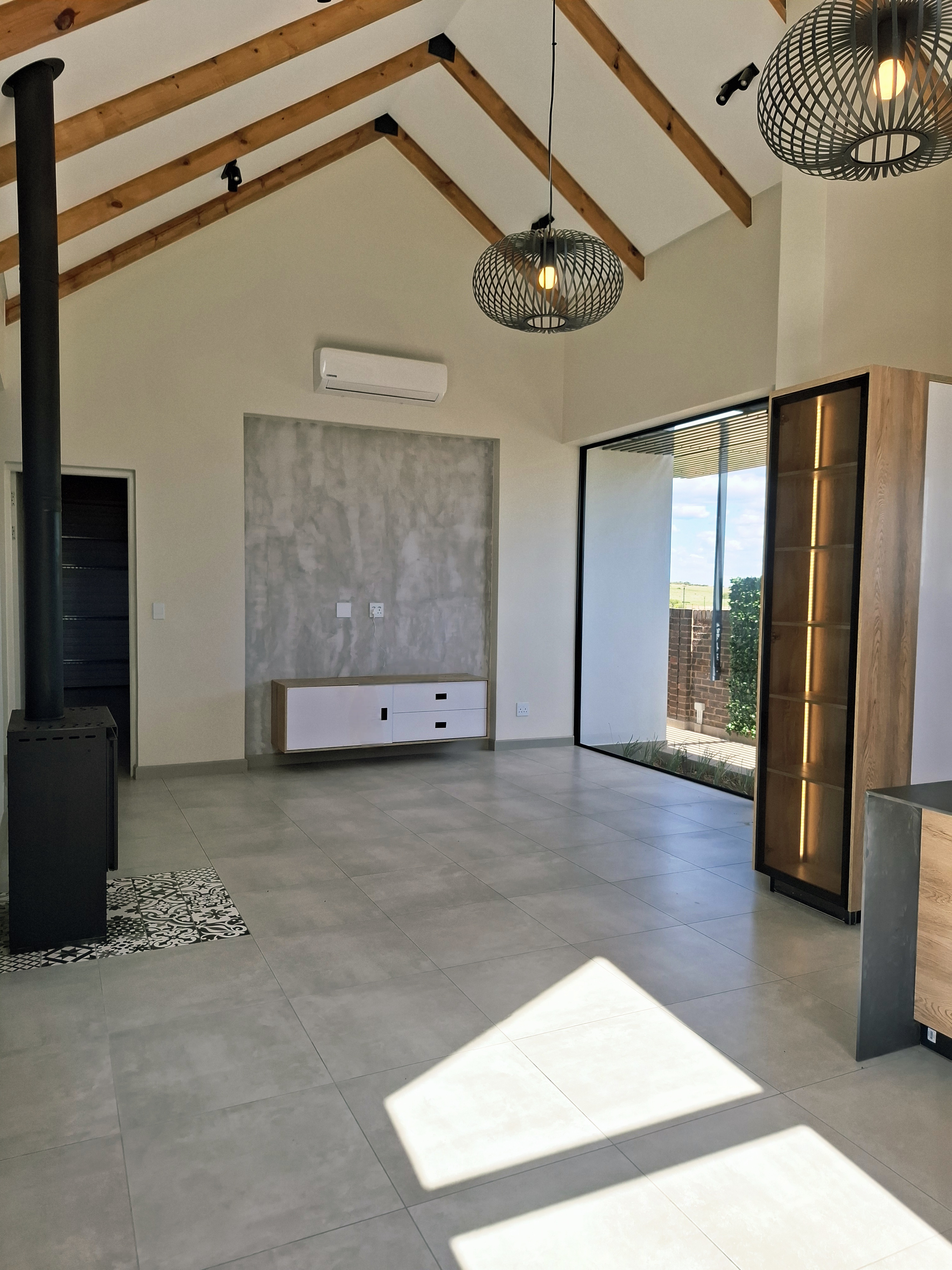 Welcome to this exquisite, newly built 3-bedroom home, offering the perfect balance of elegance, comfort, and modern convenience. Designed with attention to detail, this upmarket residence is ideal for people seeking a stylish and secure lifestyle in a premium location. This home includes: 2 x Gas Geysers 5 Burner gas stove, electric oven- Gas bottles will be supplied. Aircon in main bedroom and living area Slow combustion fireplace 5 KVA Inverter with Battery and 5 solar panels Water filtration for household use in scullery/kitchen
