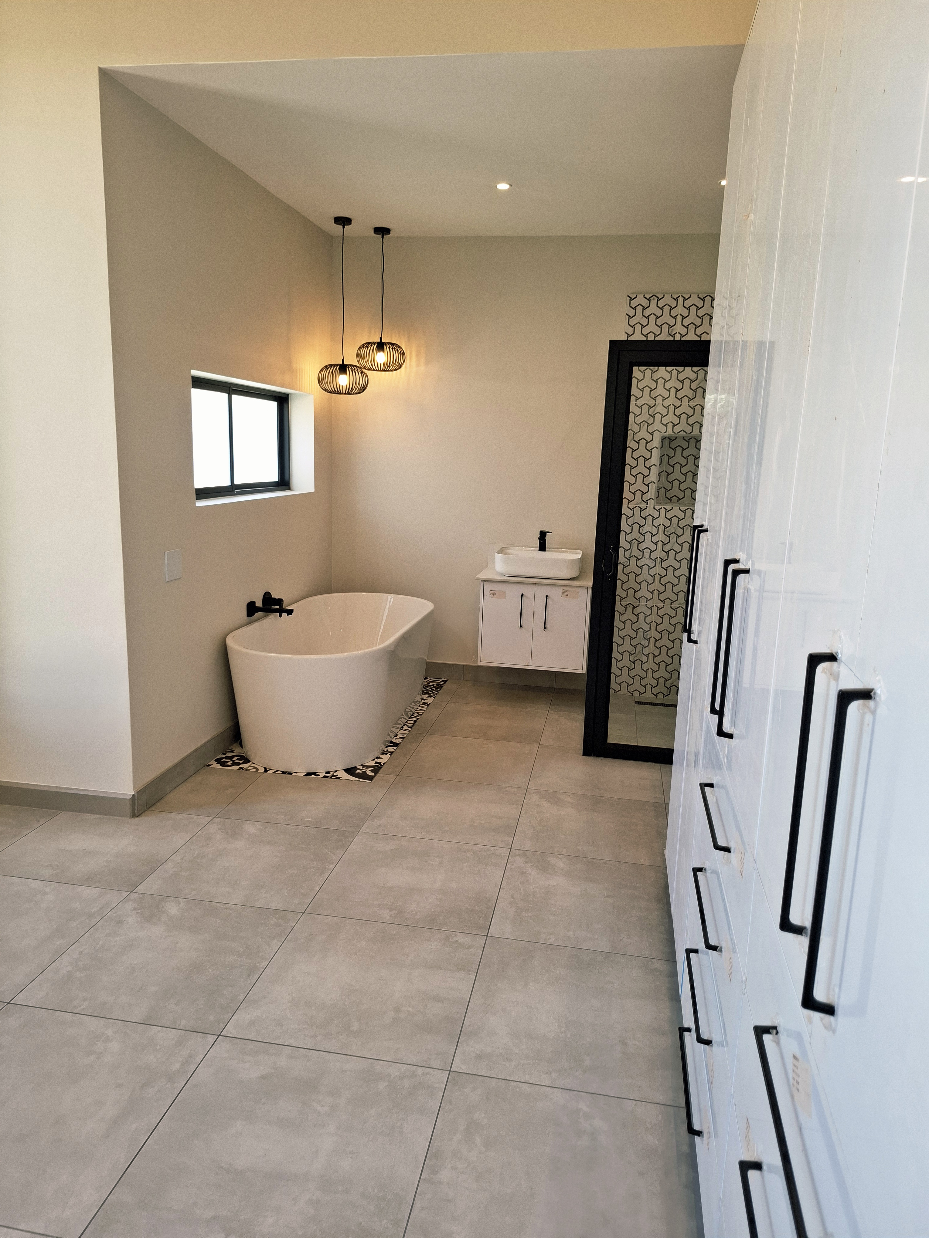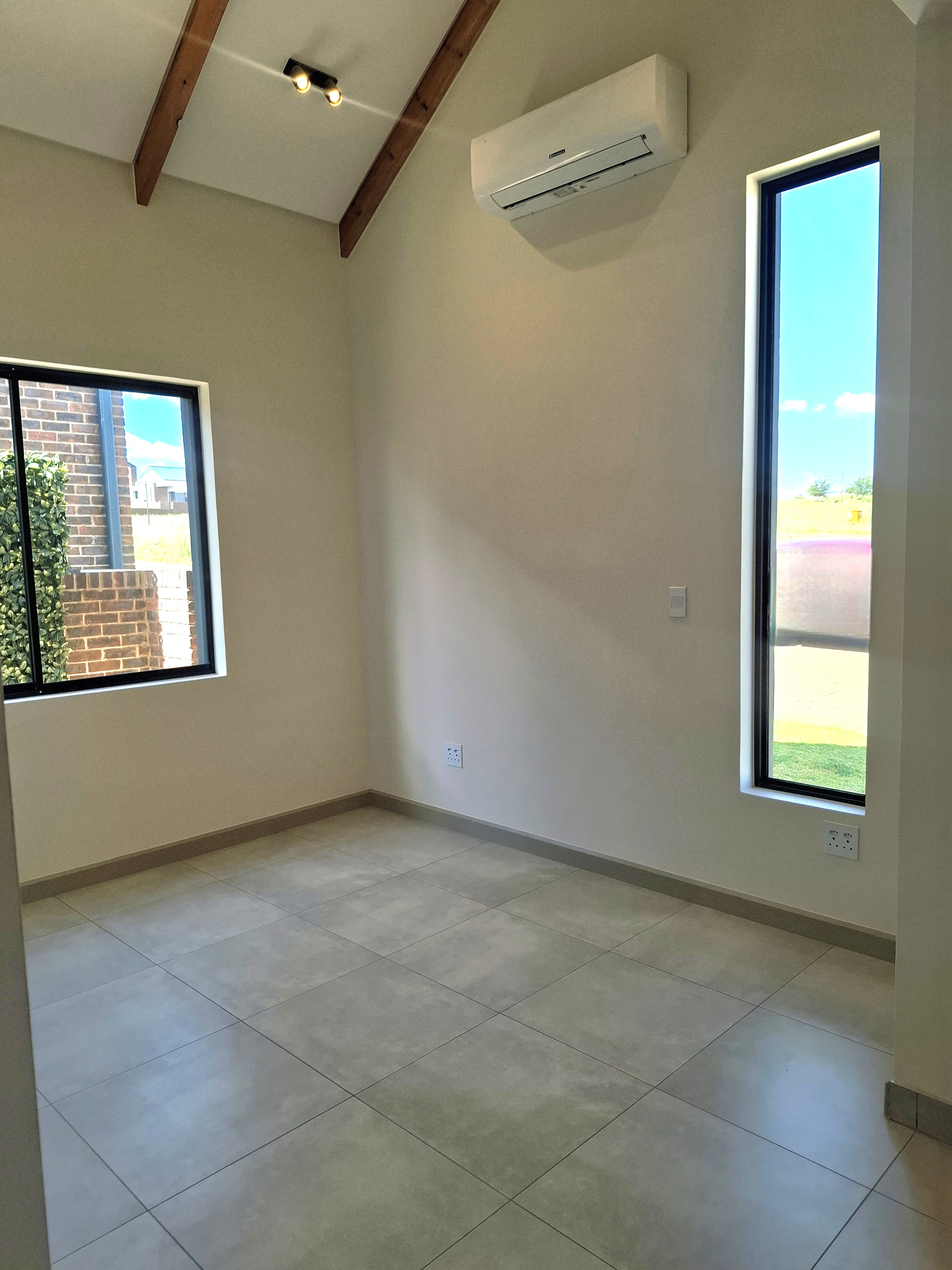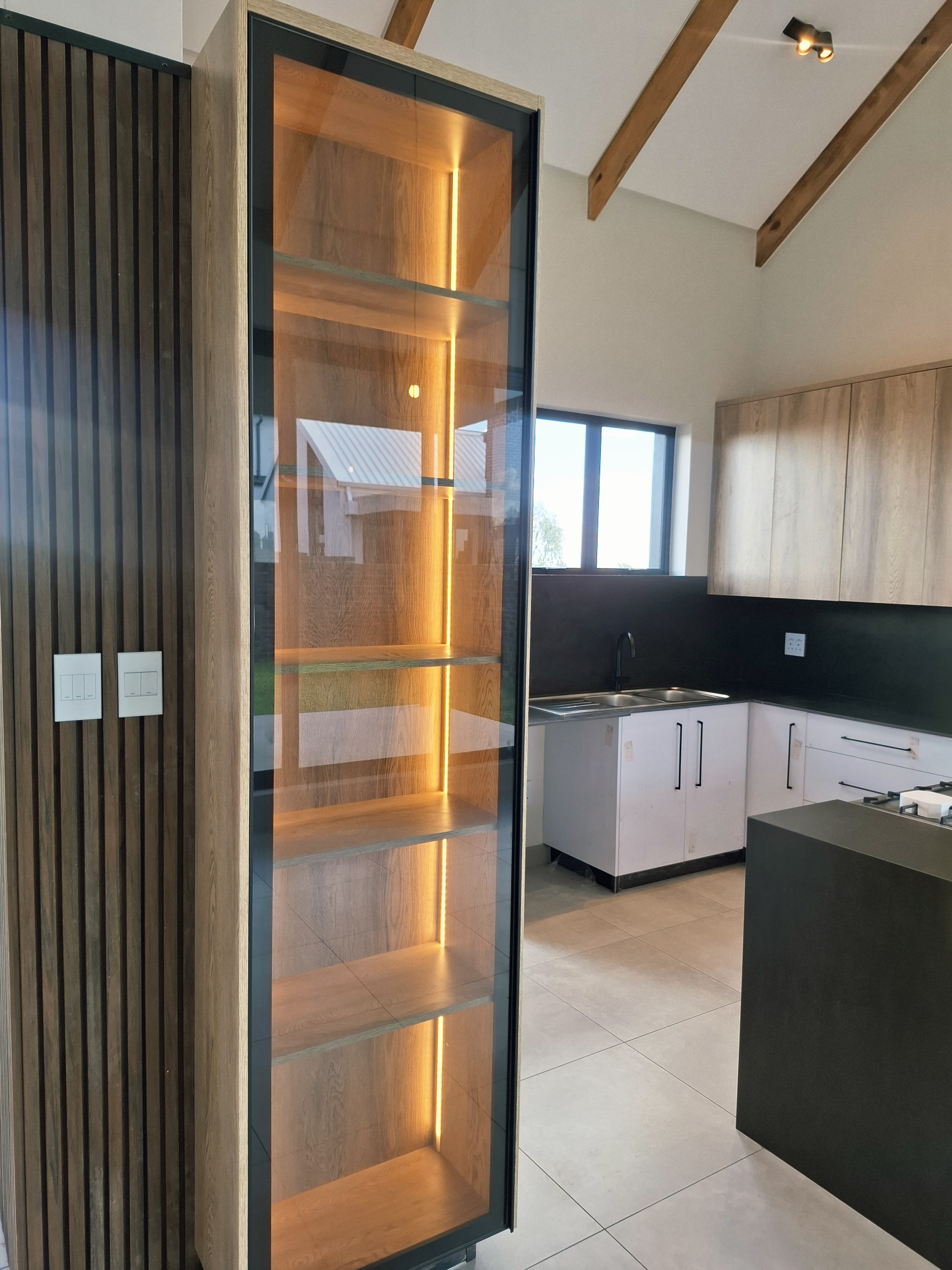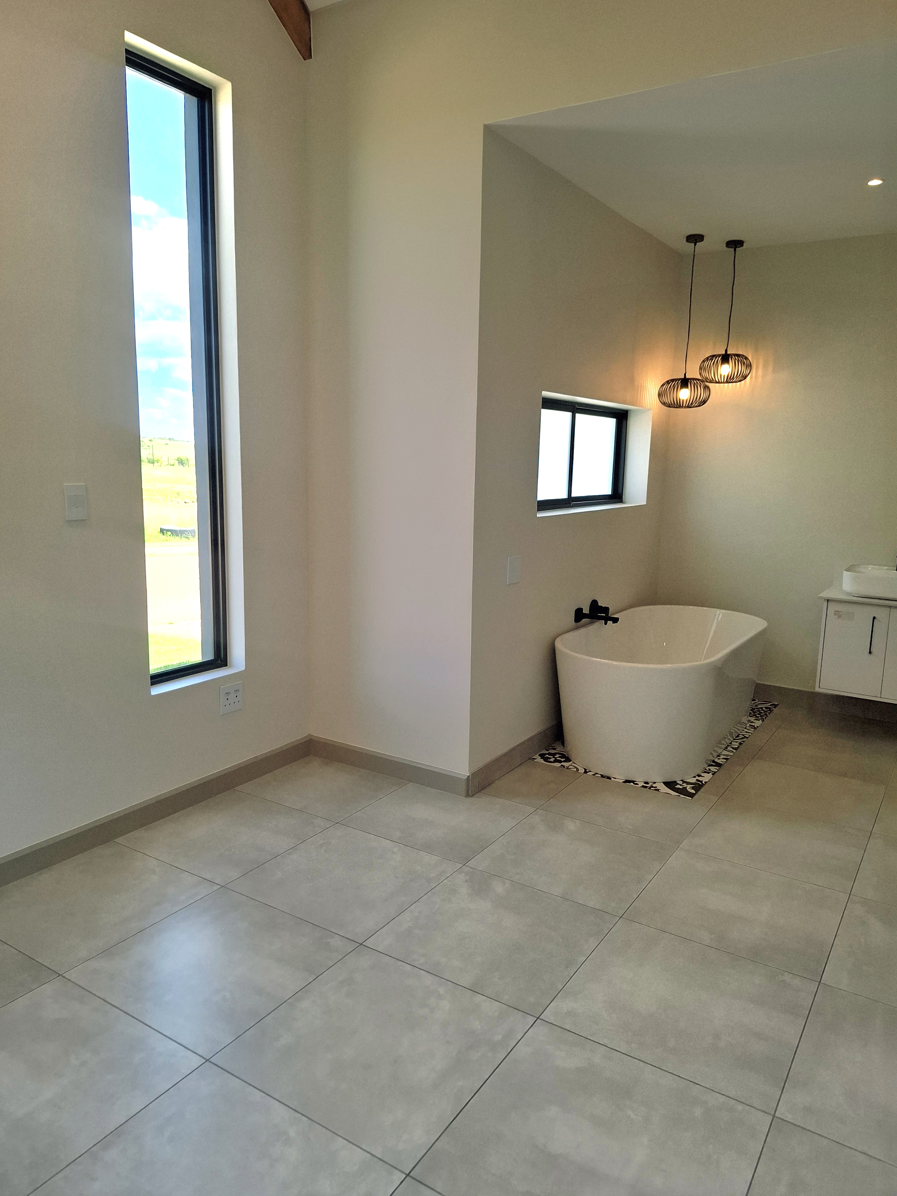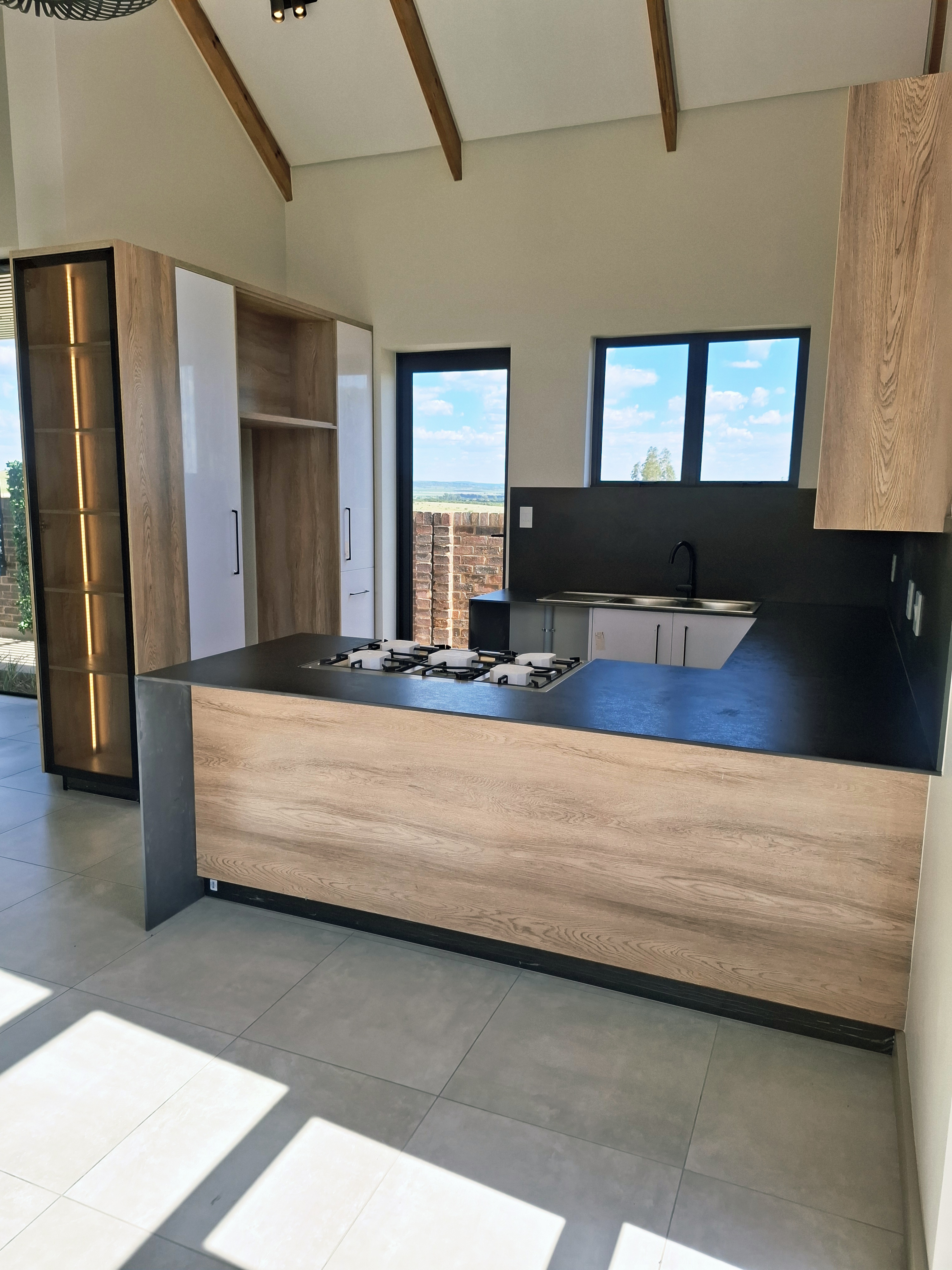 Welcome to this exquisite, newly built 3-bedroom home, offering the perfect balance of elegance, comfort, and modern convenience. Designed with attention to detail, this upmarket residence is ideal for people seeking a stylish and secure lifestyle in a premium location. This home includes: 2 x Gas Geysers 5 Burner gas stove, electric oven- Gas bottles will be supplied. Aircon in main bedroom and living area Slow combustion fireplace 5 KVA Inverter with Battery and 5 solar panels Water filtration for household use in scullery/kitchen
