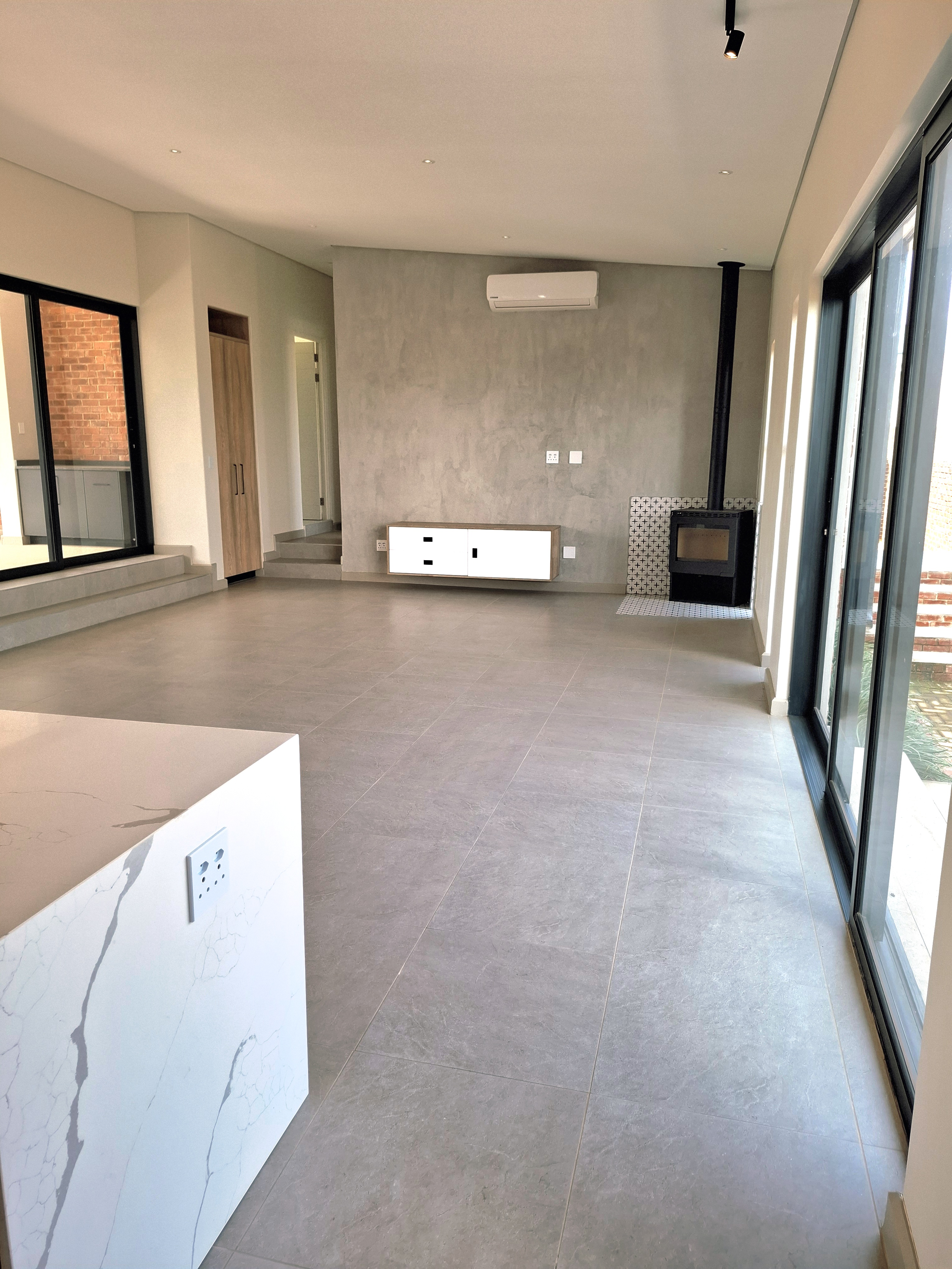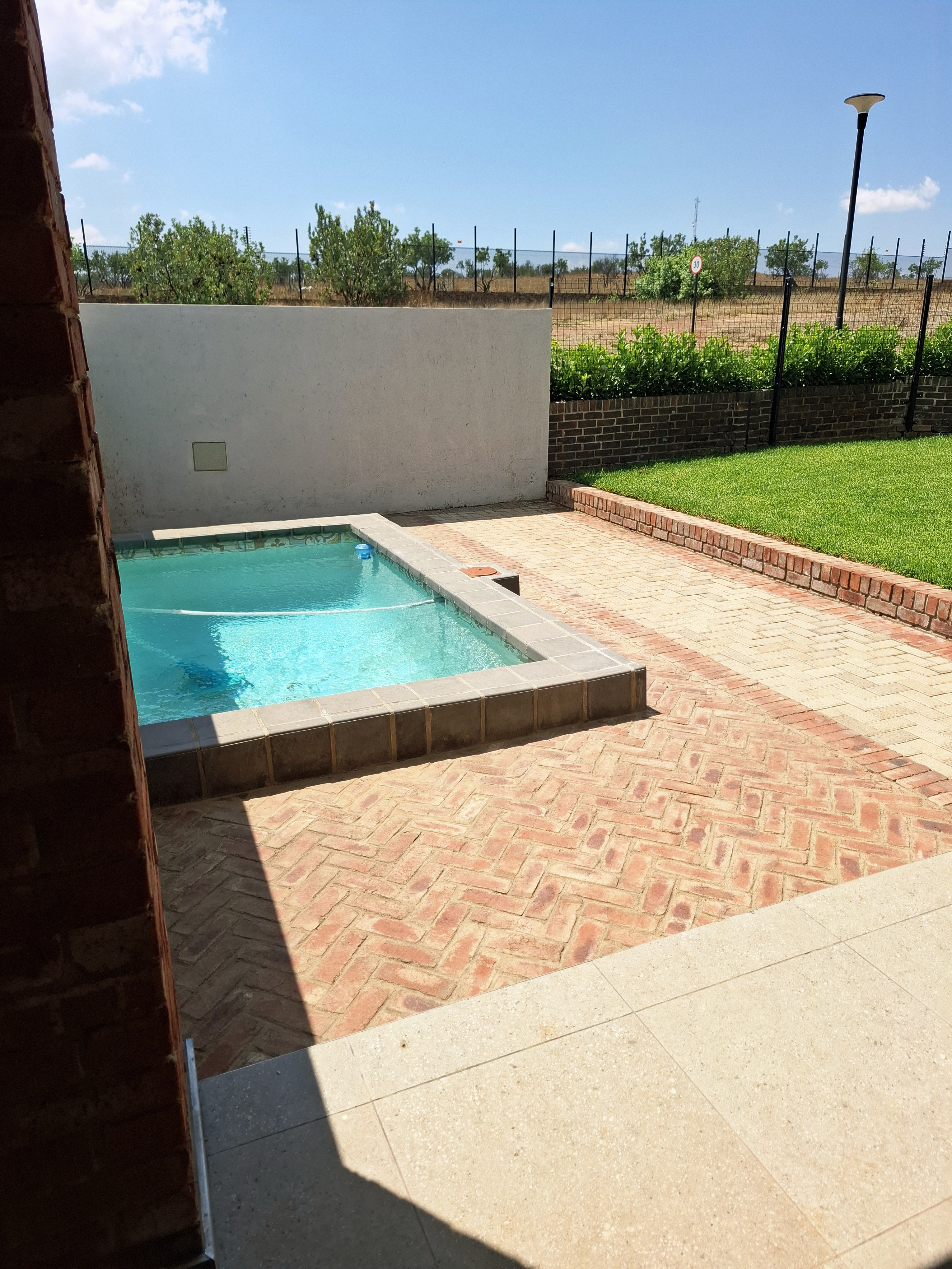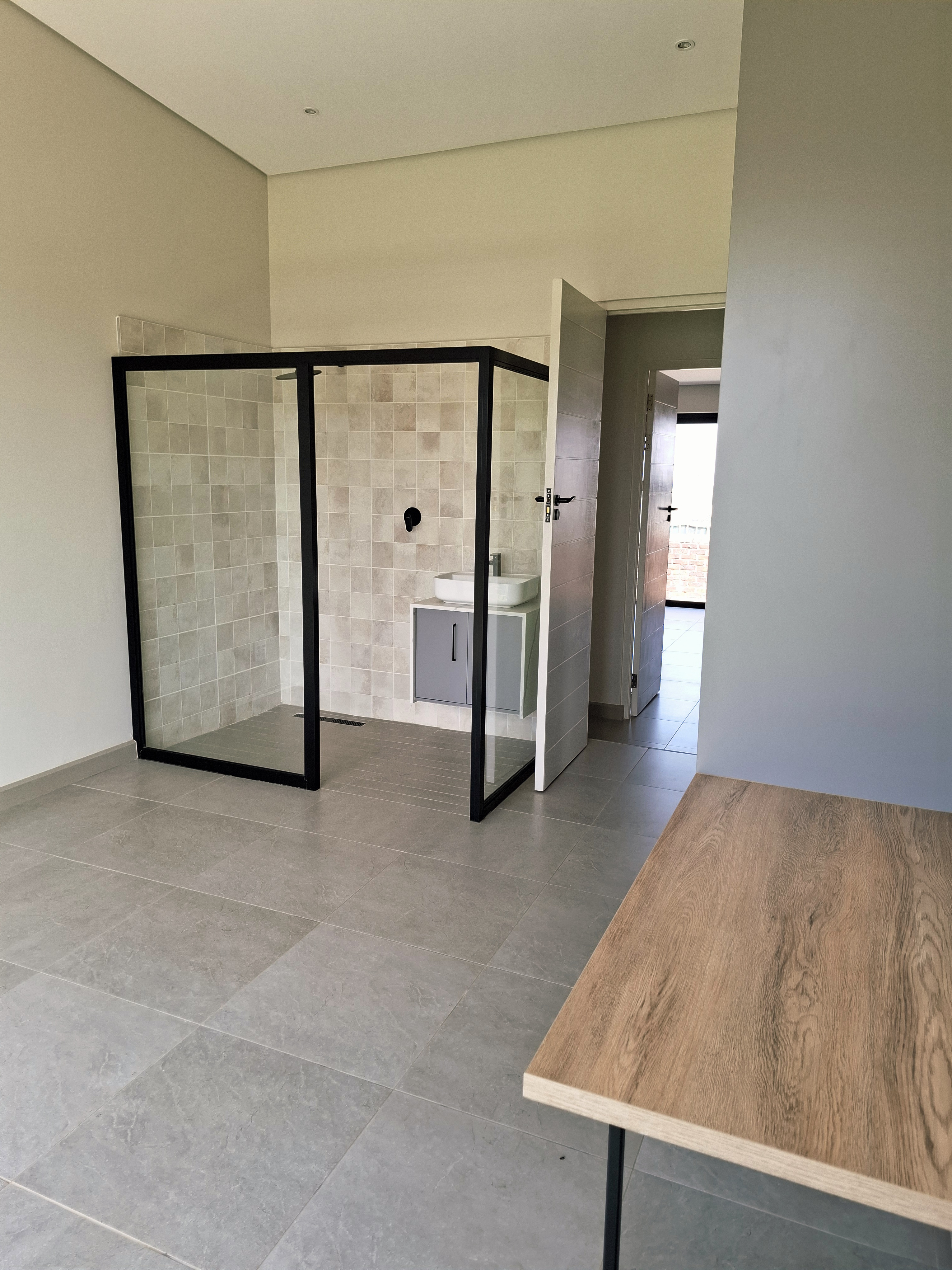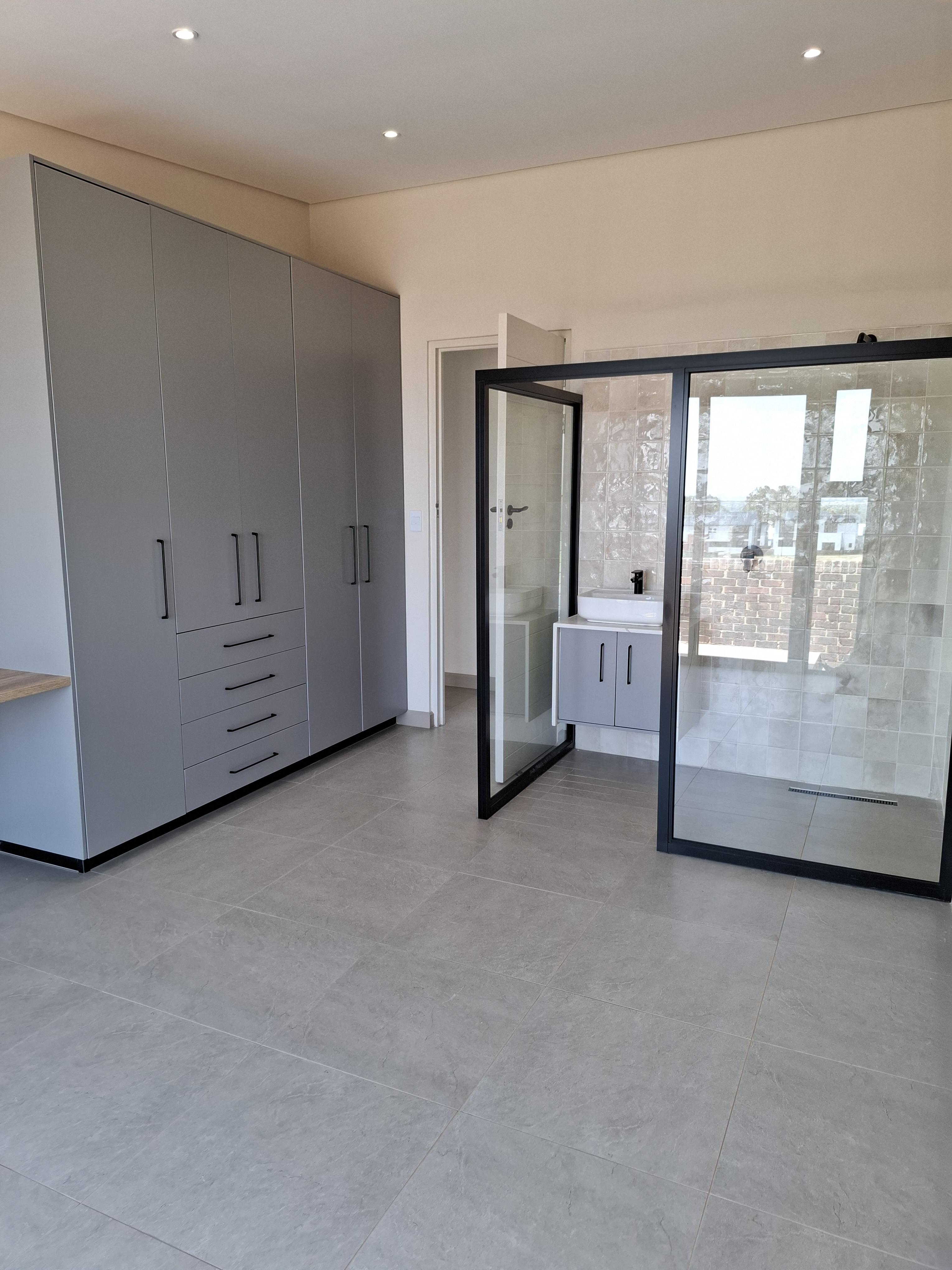 Step into modern living with this beautifully designed 3-bedroom home, perfectly located in a secure and peaceful area. This newly built property offers a blend of comfort, style, and functionality — ideal for a family or professionals looking for an exceptional home. Each of the three spacious bedrooms features its own en-suite bathroom, providing privacy and convenience for all residents. The open-plan living area flows effortlessly into a sleek, modern kitchen and out to a covered patio with a built-in braai — perfect for entertaining and relaxing outdoors. Enjoy sunny days by the swimming pool, surrounded by a neat garden, ideal for outdoor living. Property Features: Secure and peaceful location Newly built, stylish, and move-in ready This home combines luxury, practicality, and sustainability — offering the perfect modern lifestyle. Don’t miss the chance to make it your new home! 2 x Gas Geysers 5 Burner gas stove, electric oven- Gas bottles will be supplied. Aircon in main bedroom and living area Slow combustion fireplace 5 KVA Inverter with Battery and 5 solar panels Water filtration for household use in scullery/kitchen