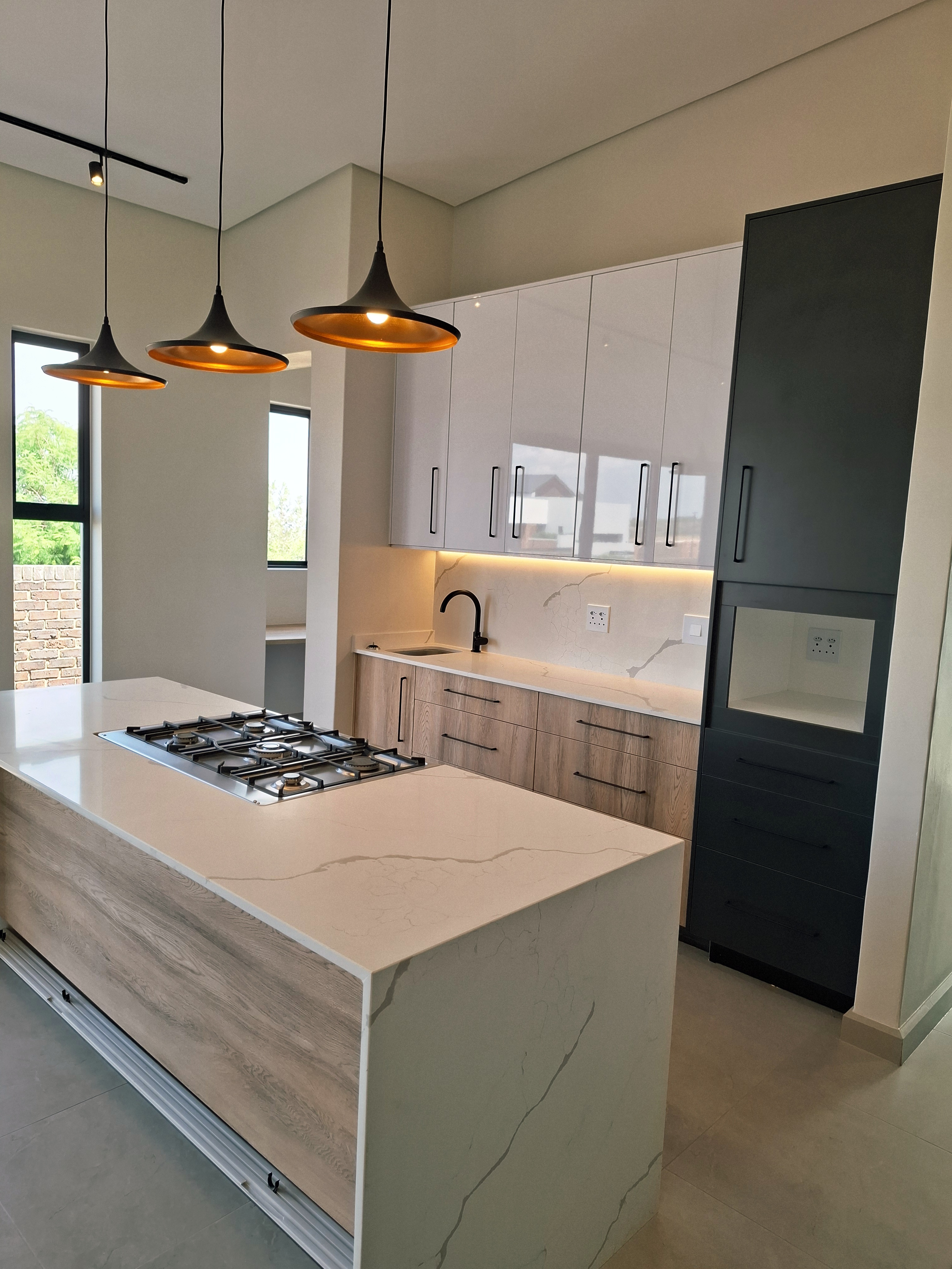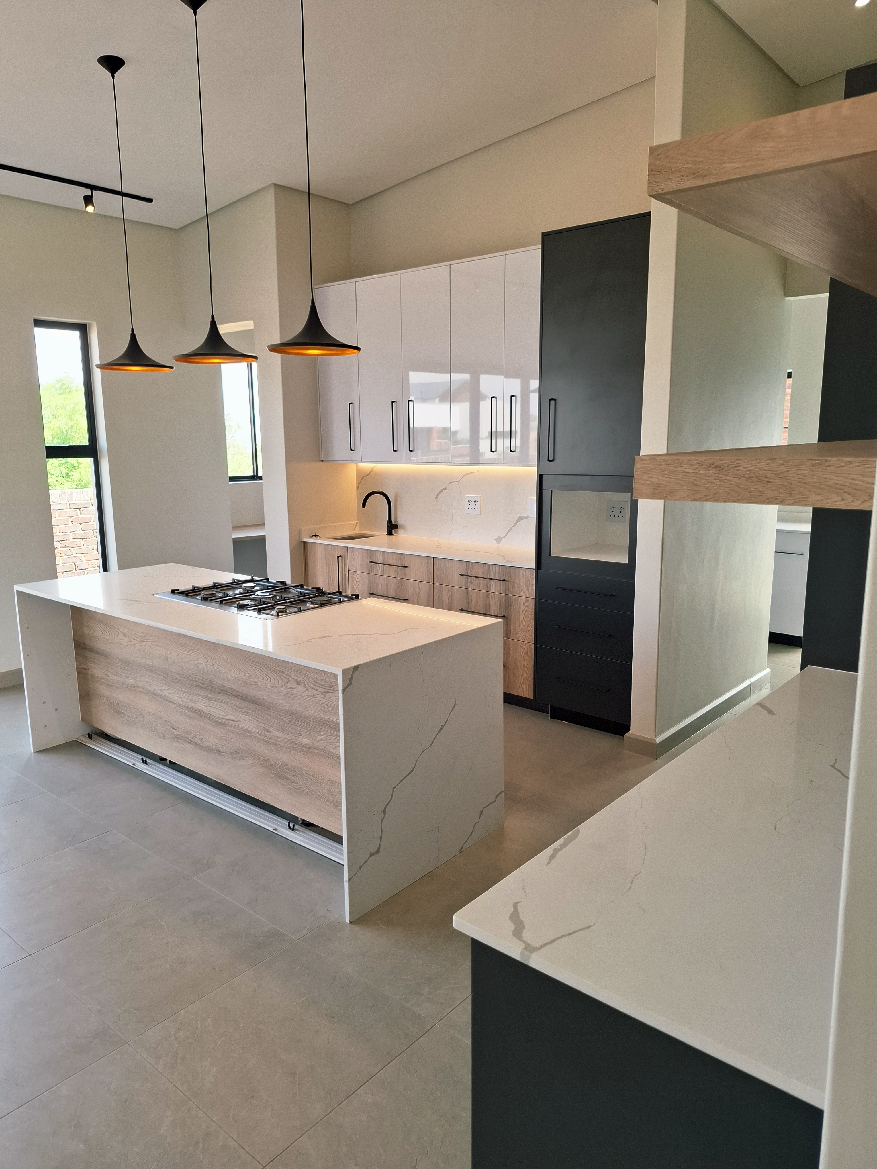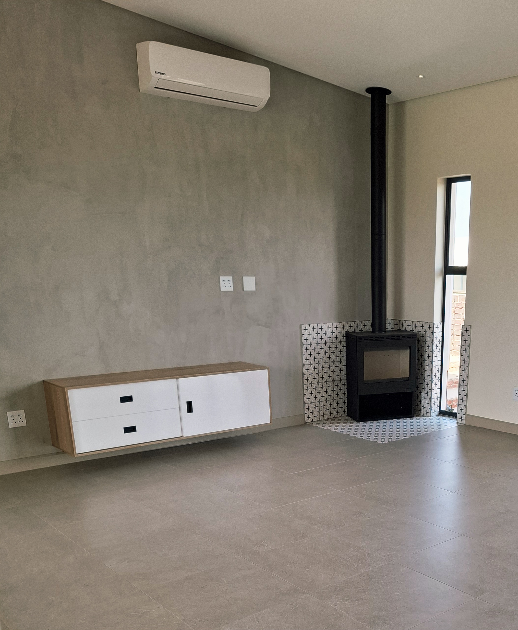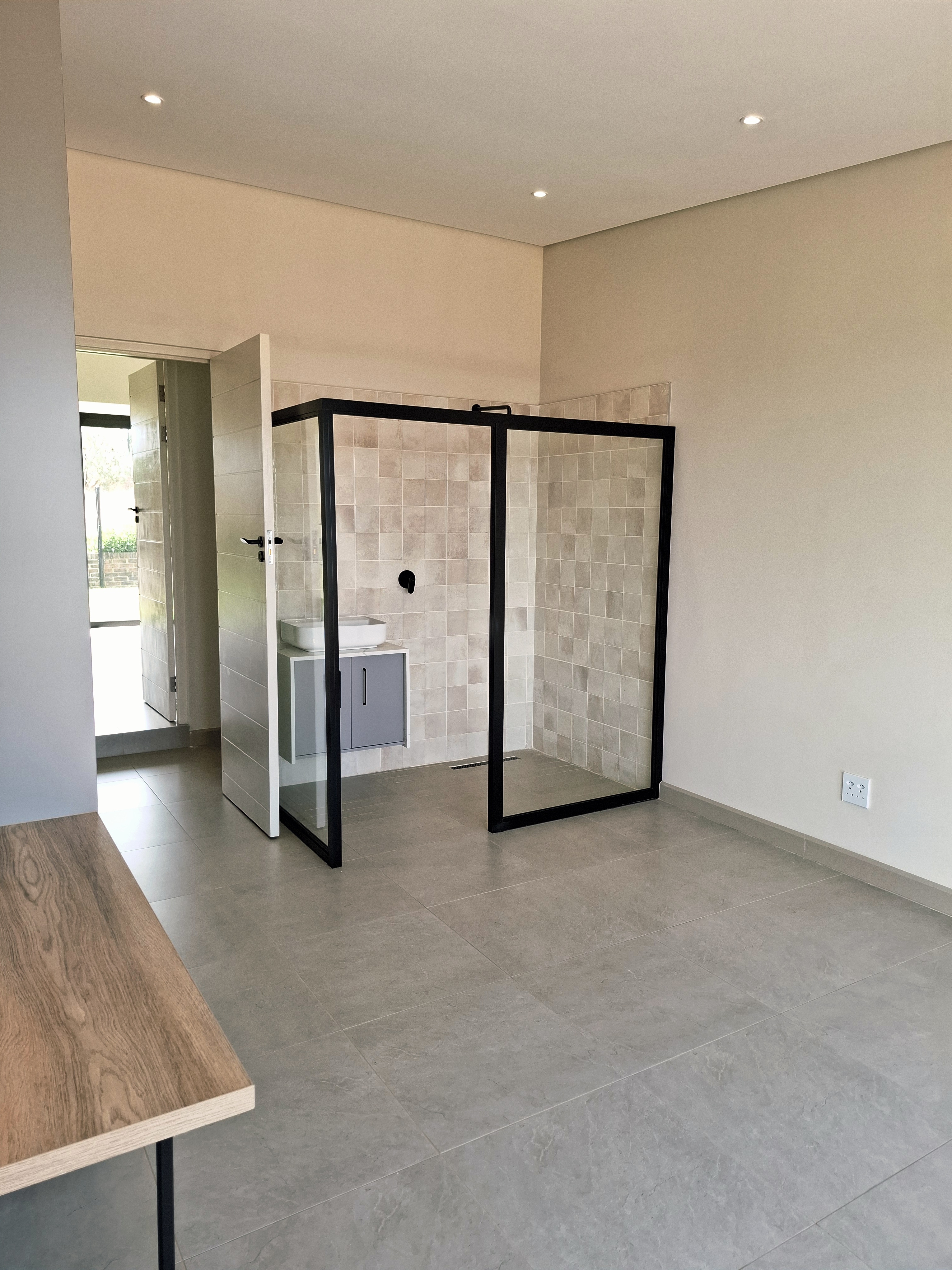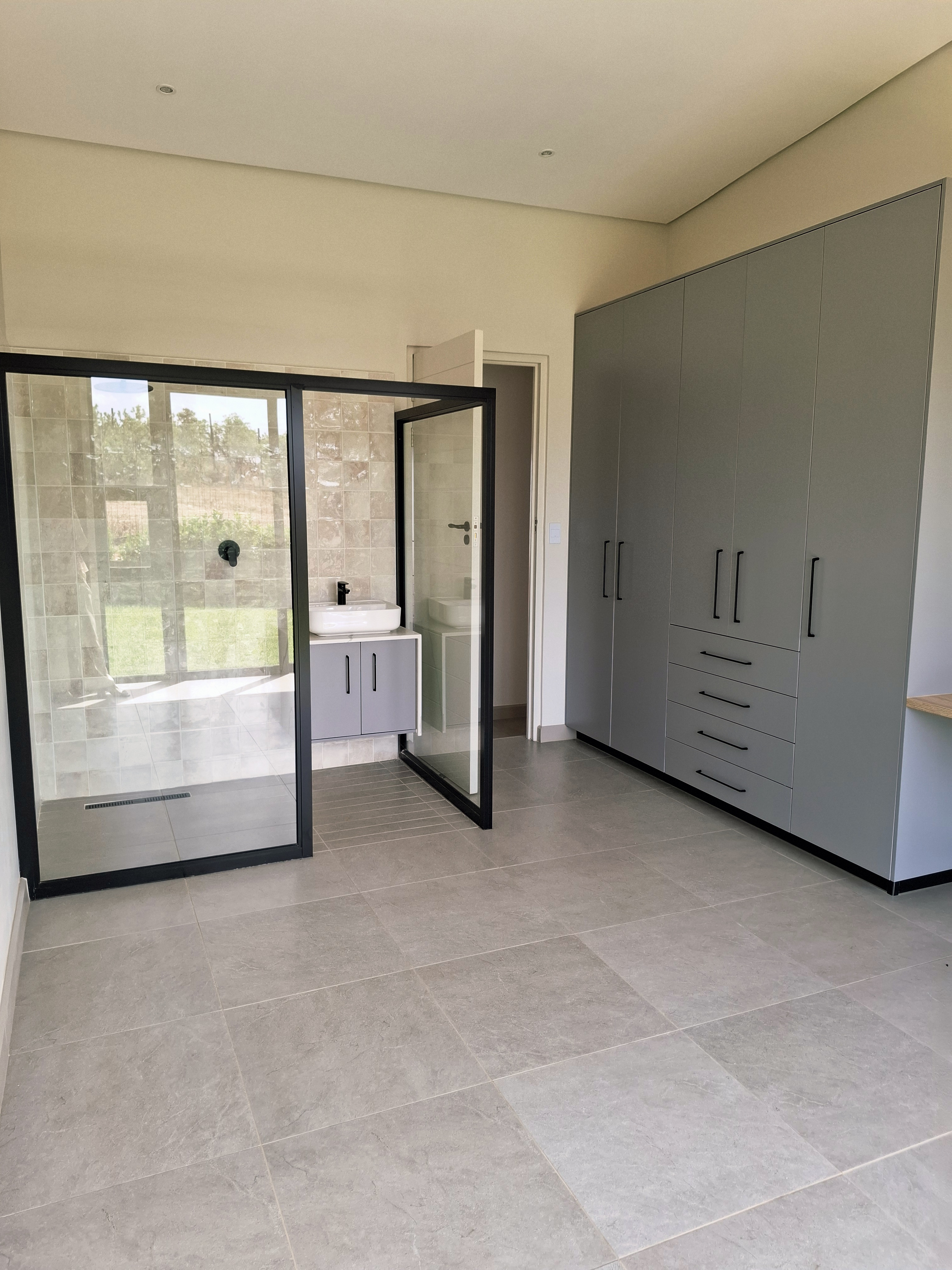 Step into modern living with this beautifully designed 3-bedroom home, perfectly located in a secure and peaceful area. This newly built property offers a blend of comfort, style, and functionality — ideal for a family or professionals looking for an exceptional home. Each of the three spacious bedrooms features its own en-suite bathroom, providing privacy and convenience for all residents. The open-plan living area flows effortlessly into a sleek, modern kitchen and out to a covered patio with a built-in braai — perfect for entertaining and relaxing outdoors. Enjoy sunny days by the swimming pool, surrounded by a neat garden, ideal for outdoor living. Property Features: Secure and peaceful location Newly built, stylish, and move-in ready This home combines luxury, practicality, and sustainability — offering the perfect modern lifestyle. Don’t miss the chance to make it your new home! 2 x Gas Geysers 5 Burner gas stove, electric oven- Gas bottles will be supplied. Aircon in main bedroom and living area Slow combustion fireplace 5 KVA Inverter with Battery and 5 solar panels Water filtration for household use in scullery/kitchen