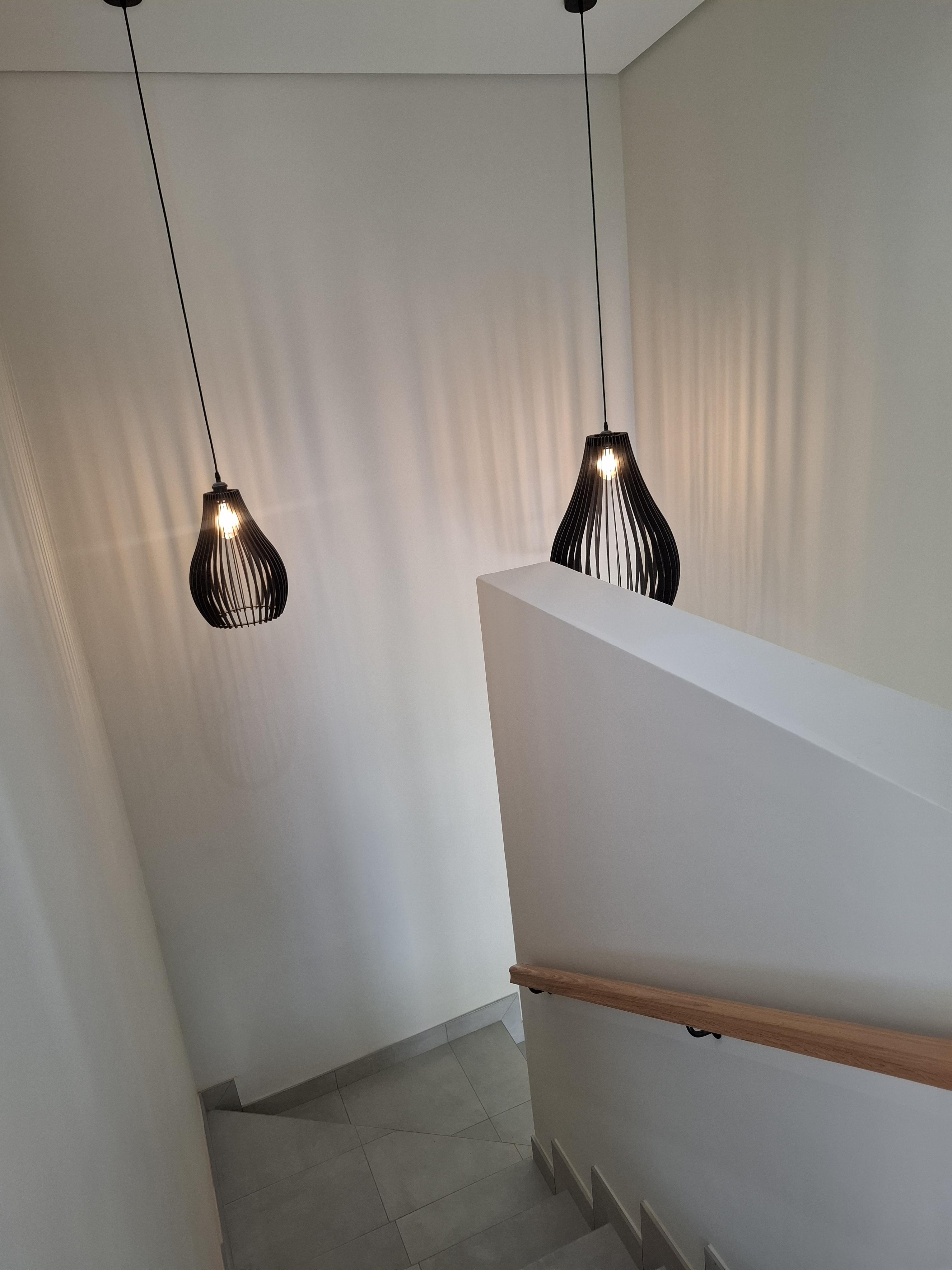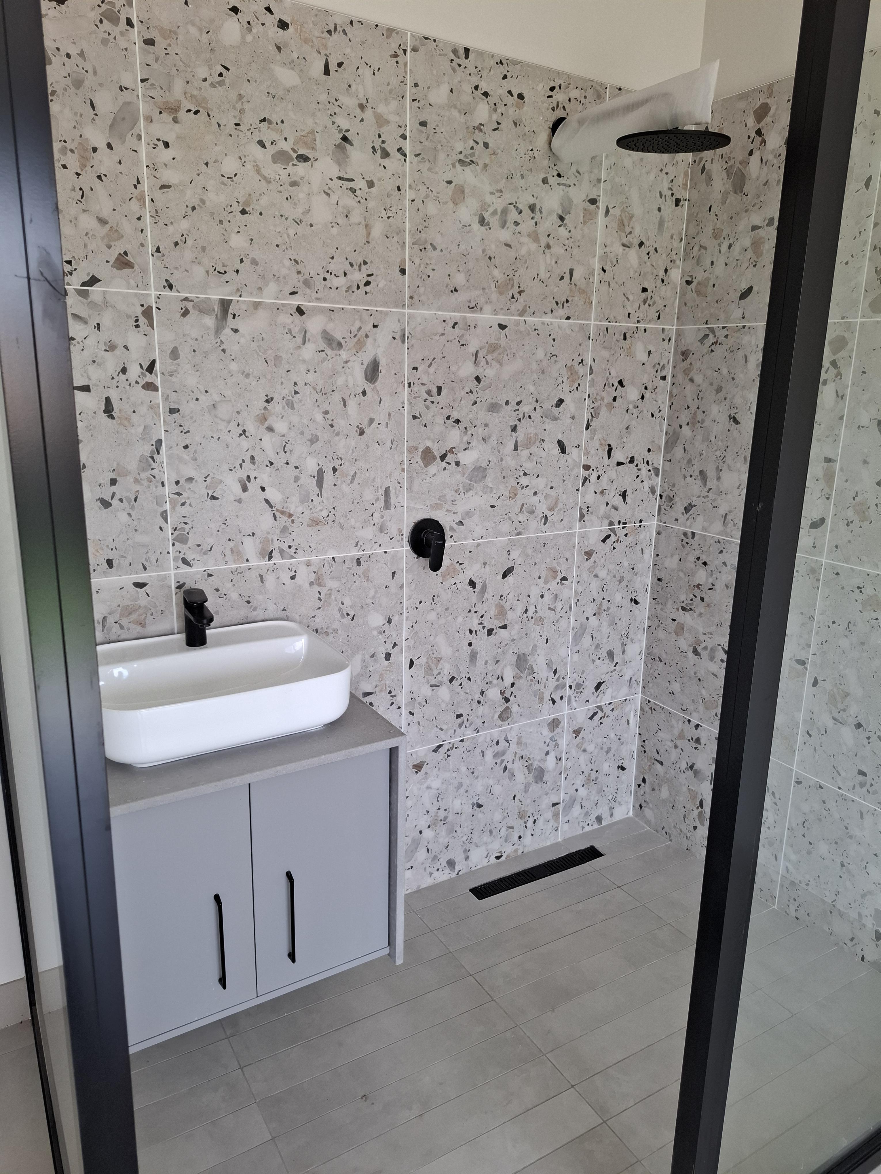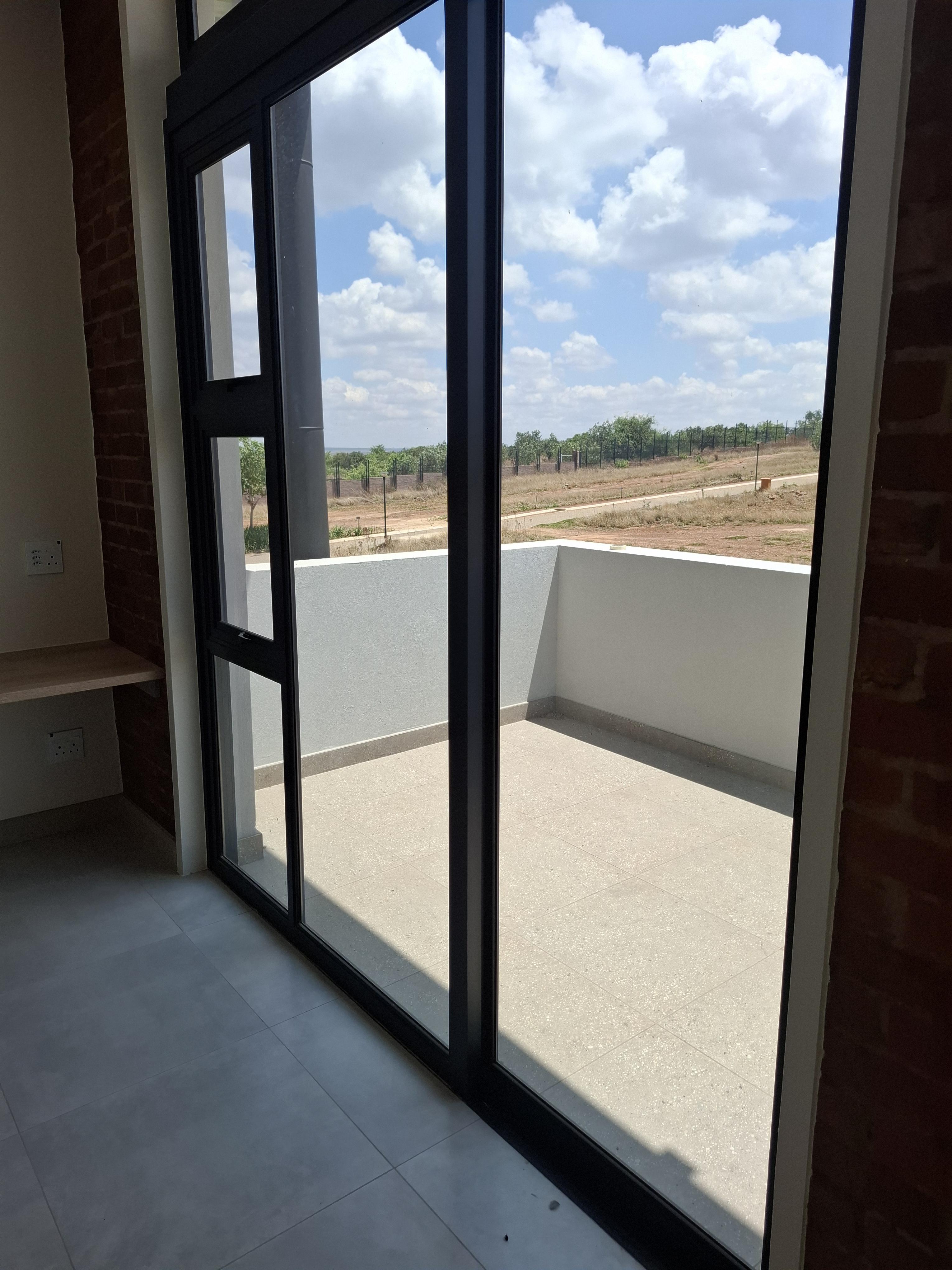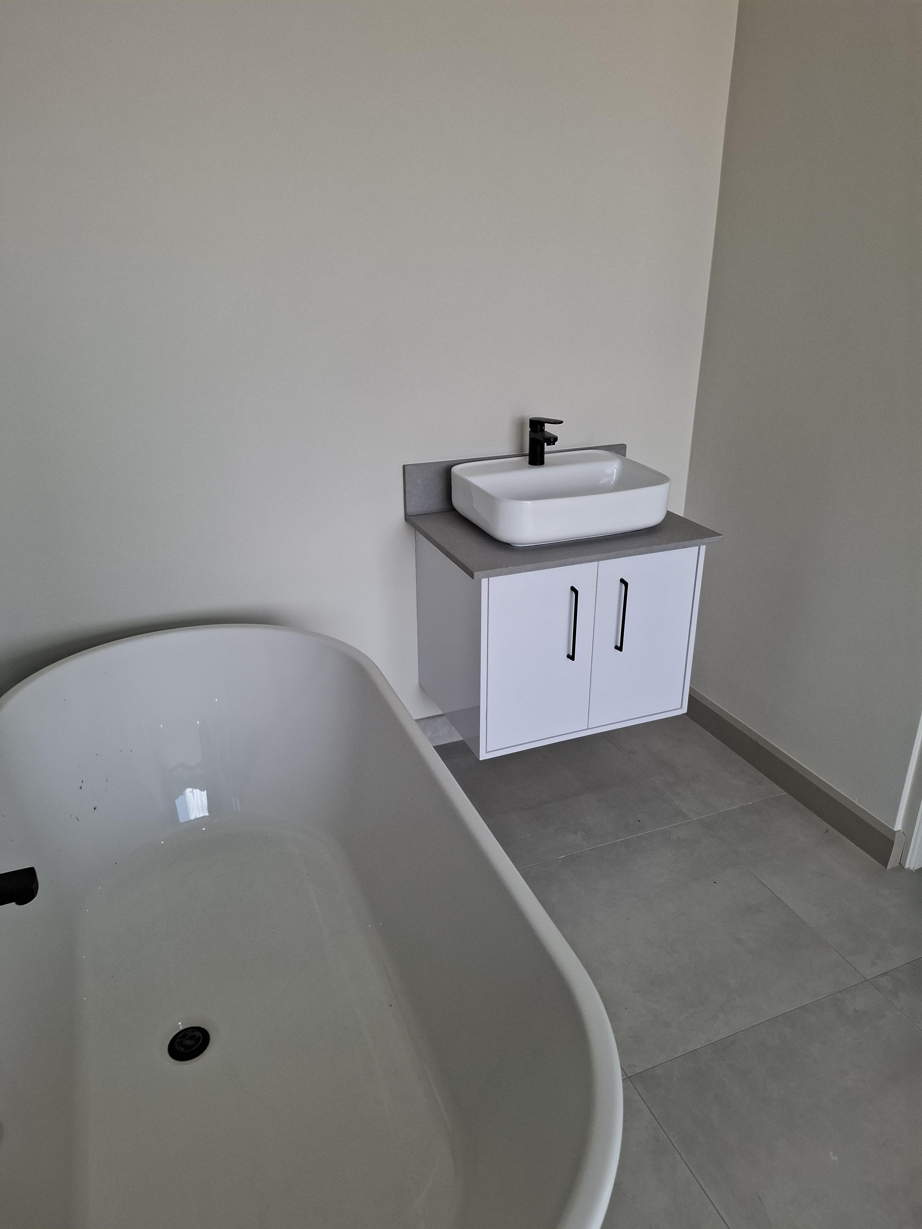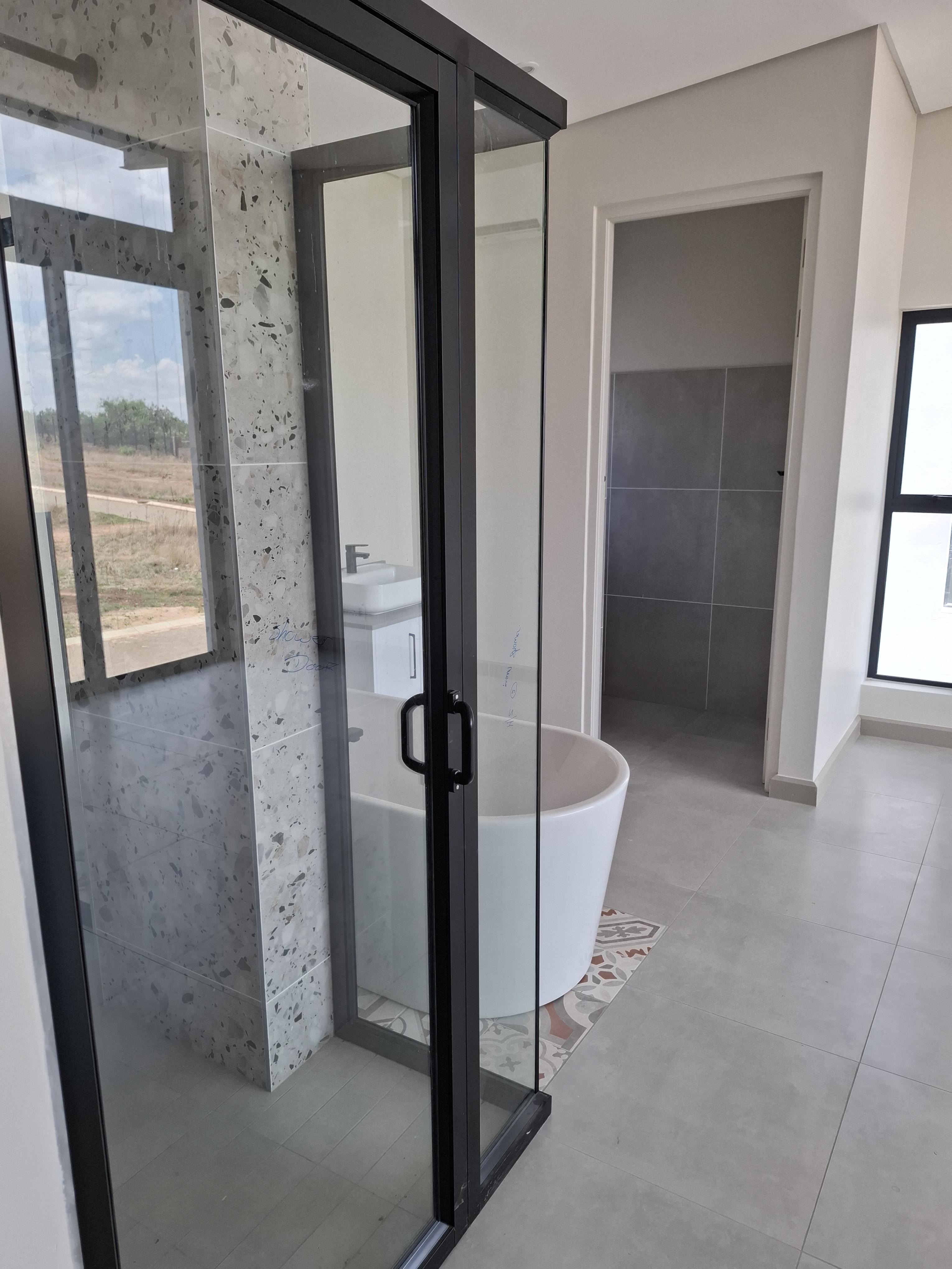 Upstairs, you’ll find two beautifully designed bedrooms and a study corner, perfect for working from home or extra storage space. The main bedroom features a luxurious en-suite bathroom complete with a bath, shower, toilet, and basin, as well as ample built-in cupboards. The guest bedroom upstairs includes its own bathroom with bath, toilet, and basin, and opens onto a private balcony — a perfect spot to enjoy morning coffee or unwind at sunset. Downstairs, a third bedroom offers its own bathroom with shower and basin, ideal for guests or family members preferring ground-floor access. The open-plan living area flows effortlessly into a modern kitchen with sleek finishes, leading out to a covered patio with a built-in braai — perfect for entertaining. 2 x Gas Geysers 5 Burner gas stove, electric oven- Gas bottles will be supplied. Aircon in main bedroom and living area Slow combustion fireplace 5 KVA Inverter with Battery and 5 solar panels Water filtration for household use in scullery/kitchen