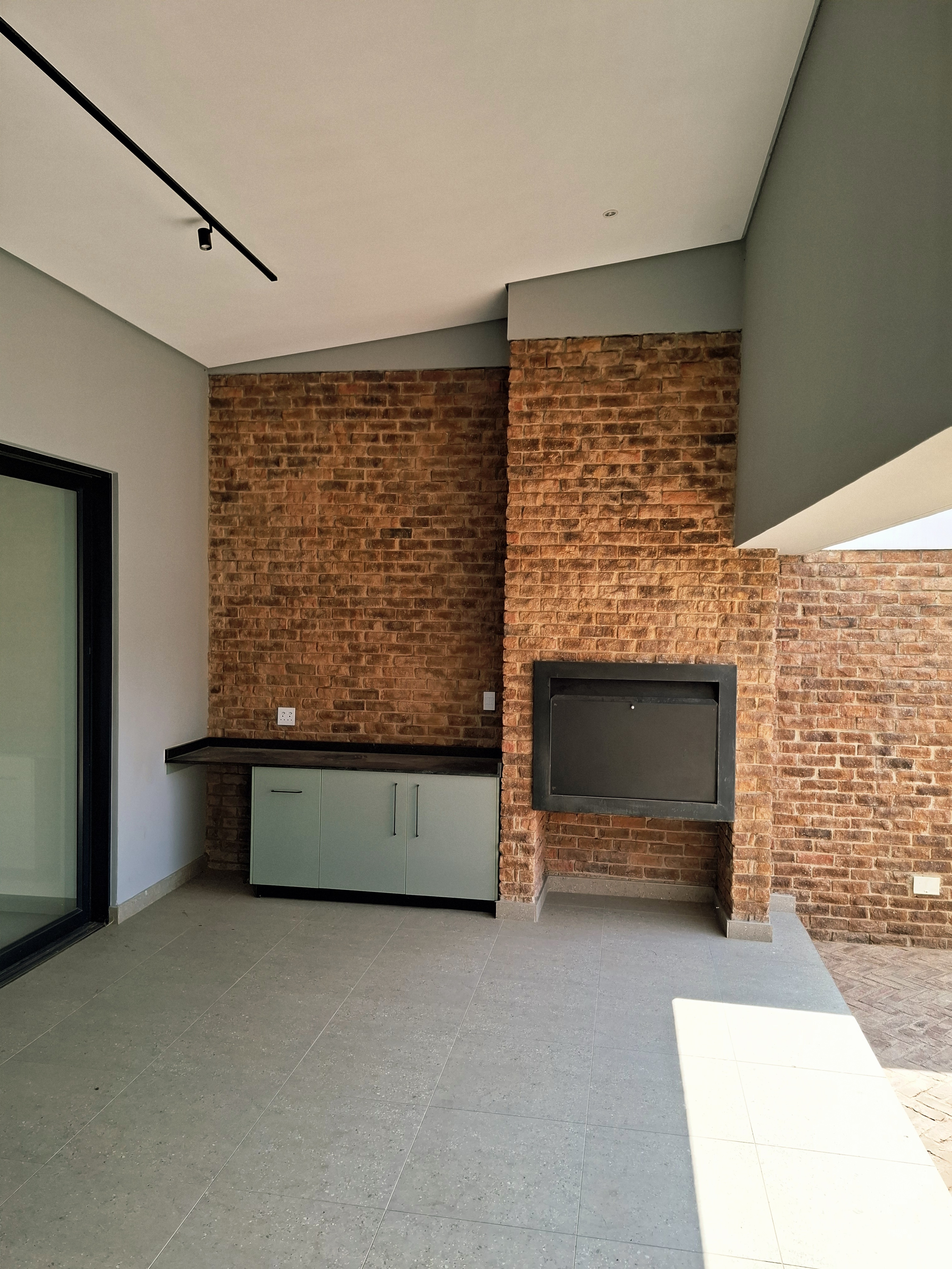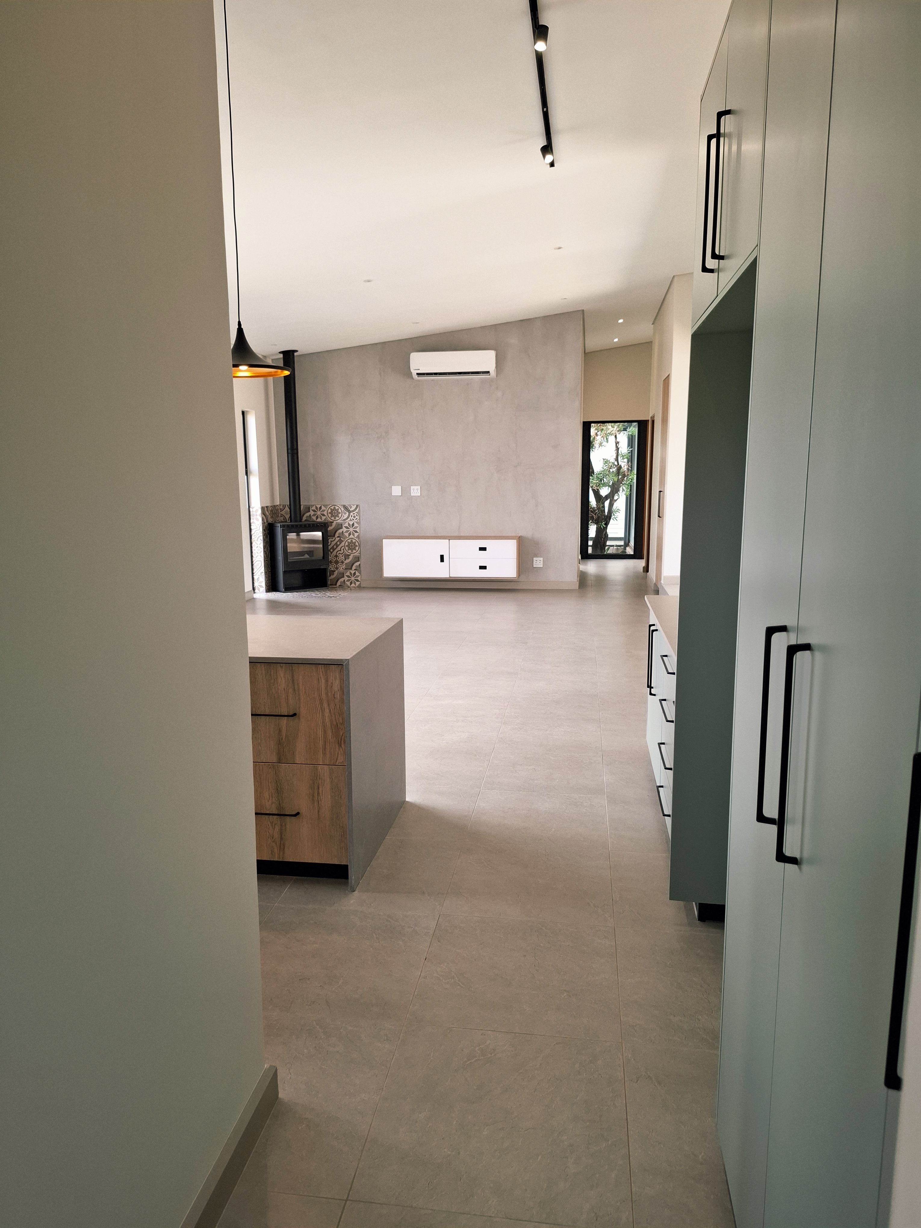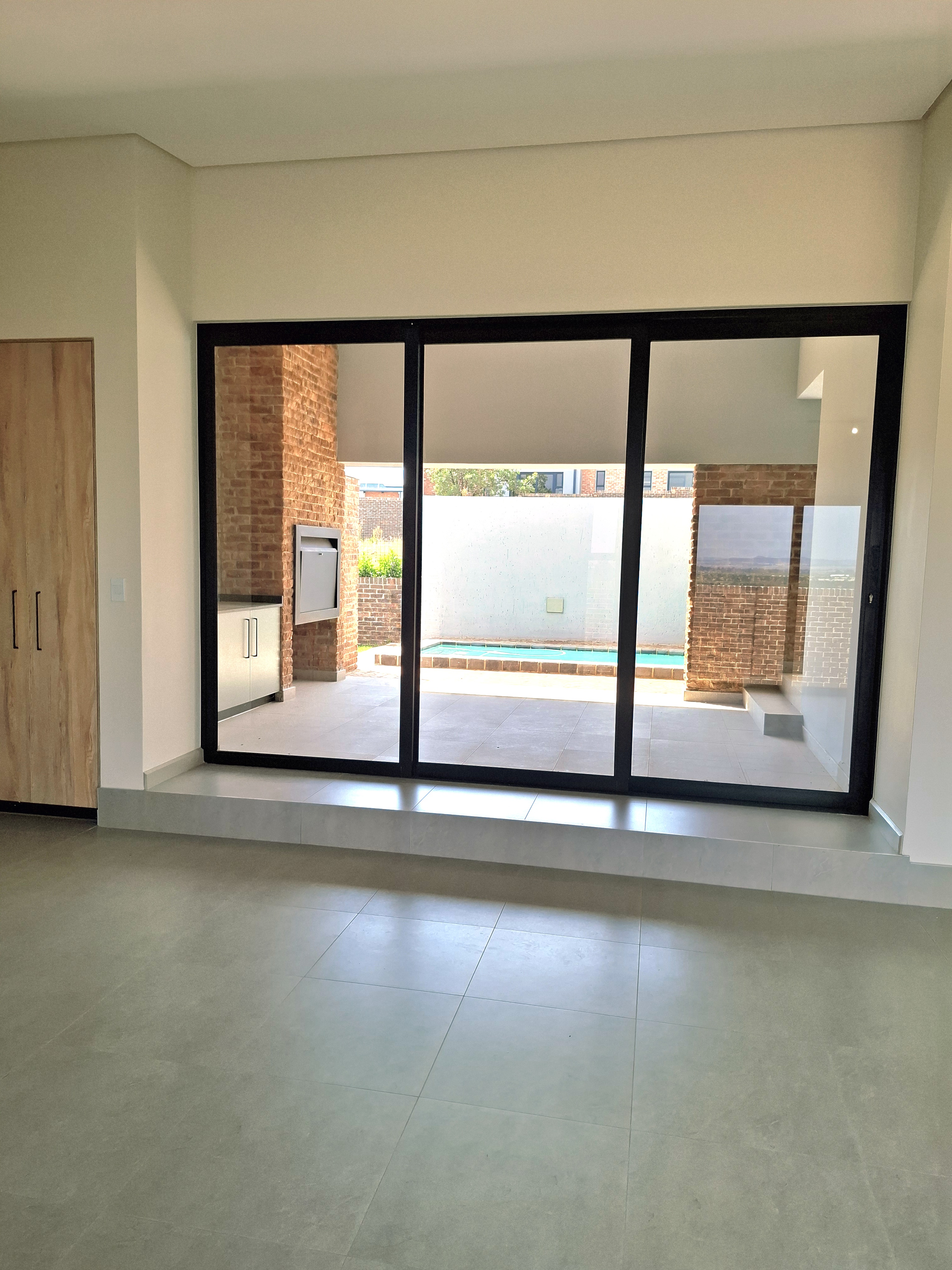 Welcome to this exquisite, newly built 3-bedroom home with in house garden, offering the perfect balance of elegance, comfort, and modern convenience. Designed with attention to detail, this upmarket residence is ideal for tenants seeking a stylish and secure lifestyle in a premium location. Each of the three bedrooms includes its own modern en-suite bathroom, providing ultimate privacy and luxury. The open-plan kitchen and living area showcase high-end finishes and seamless flow onto a covered patio with a built-in braai — perfect for effortless indoor-outdoor living and entertaining. Enjoy the sparkling swimming pool and beautifully finished outdoor area — ideal for relaxing and hosting guests. The home also features; 2 x Gas Geysers 5 Burner gas stove, electric oven- Gas bottles will be supplied. Aircon in main bedroom and living area Slow combustion fireplace 5 KVA Inverter with Battery and 5 solar panels Water filtration for household use in scullery/kitchen Contact me today for a viewing!