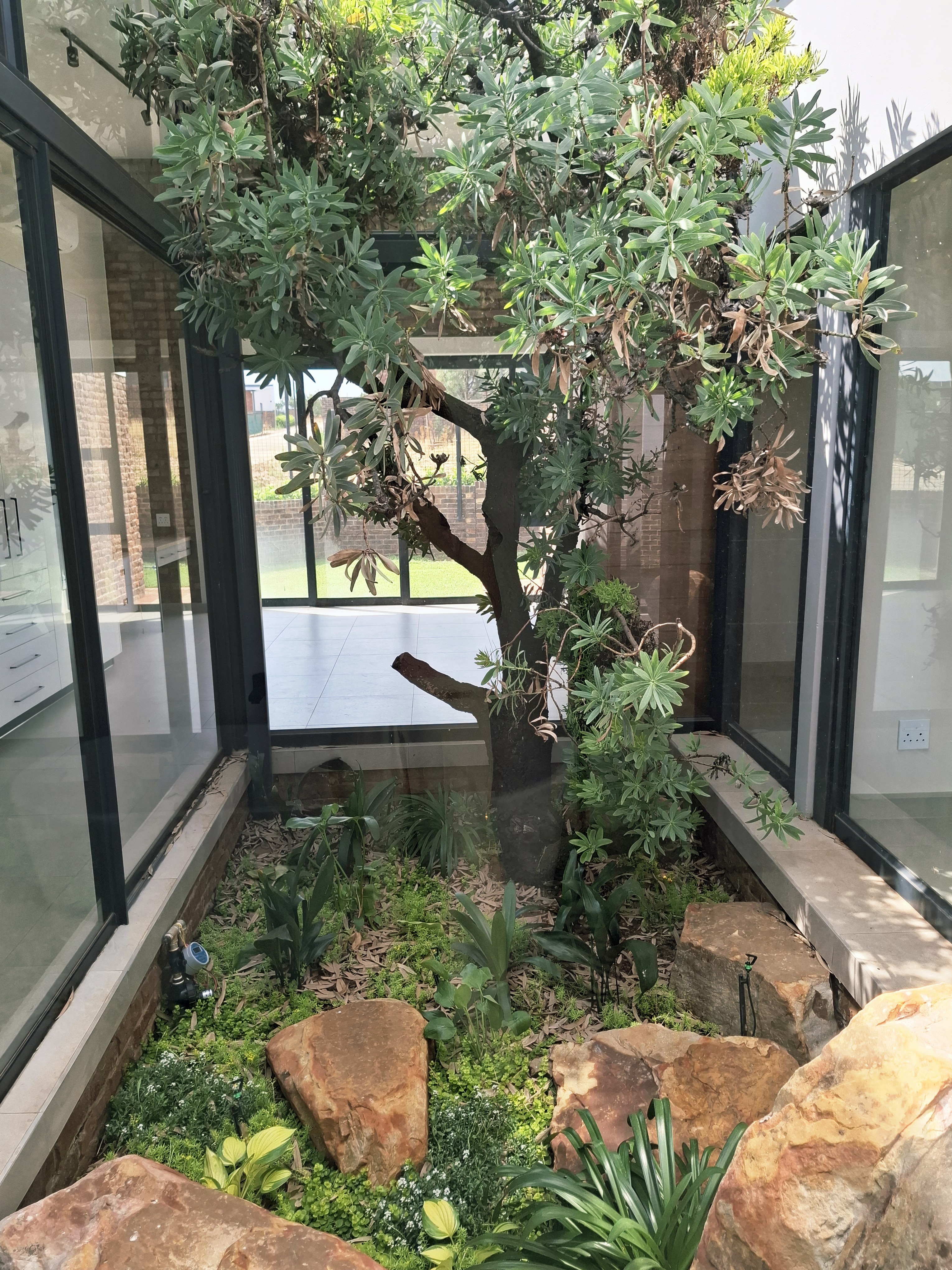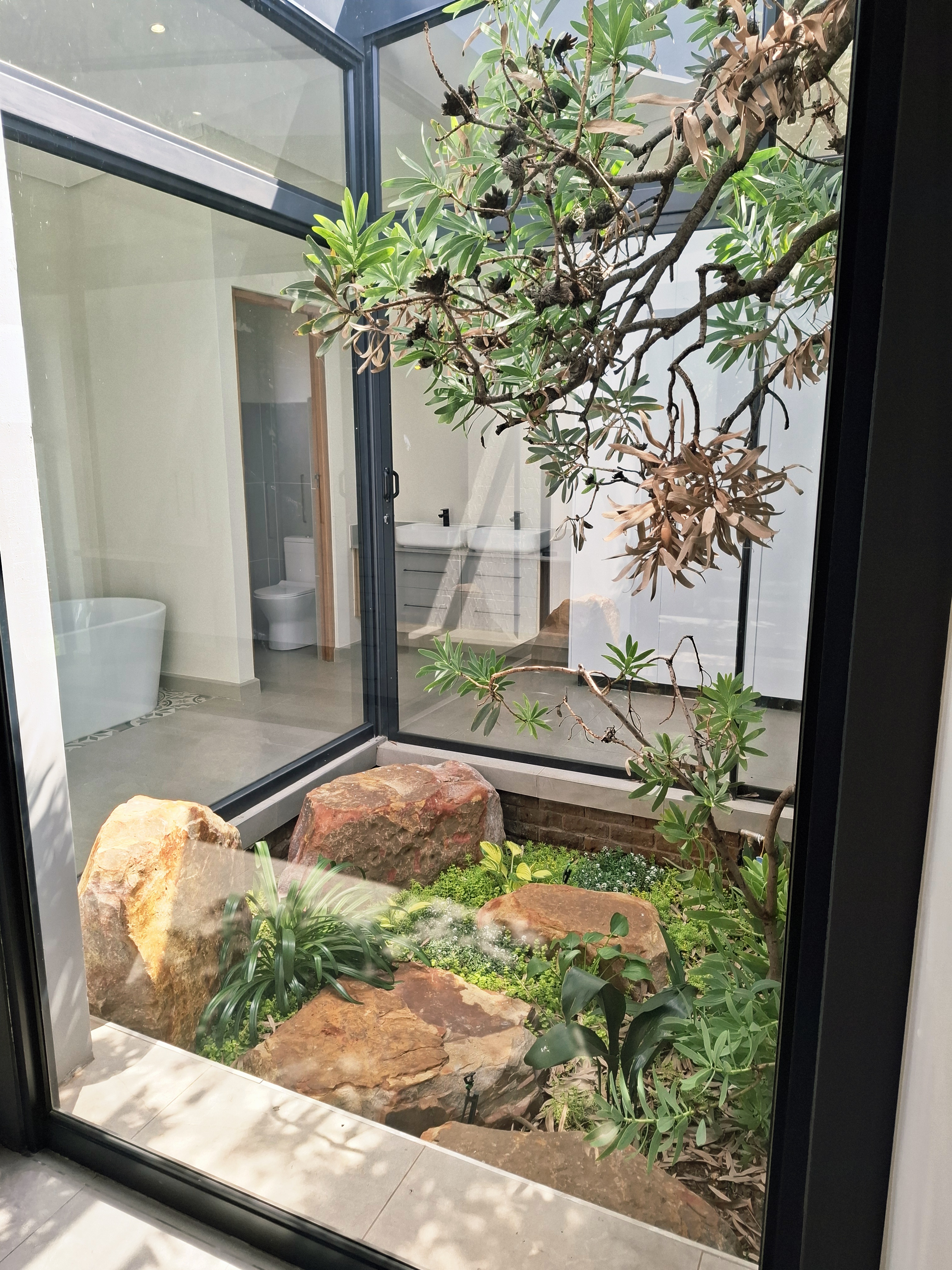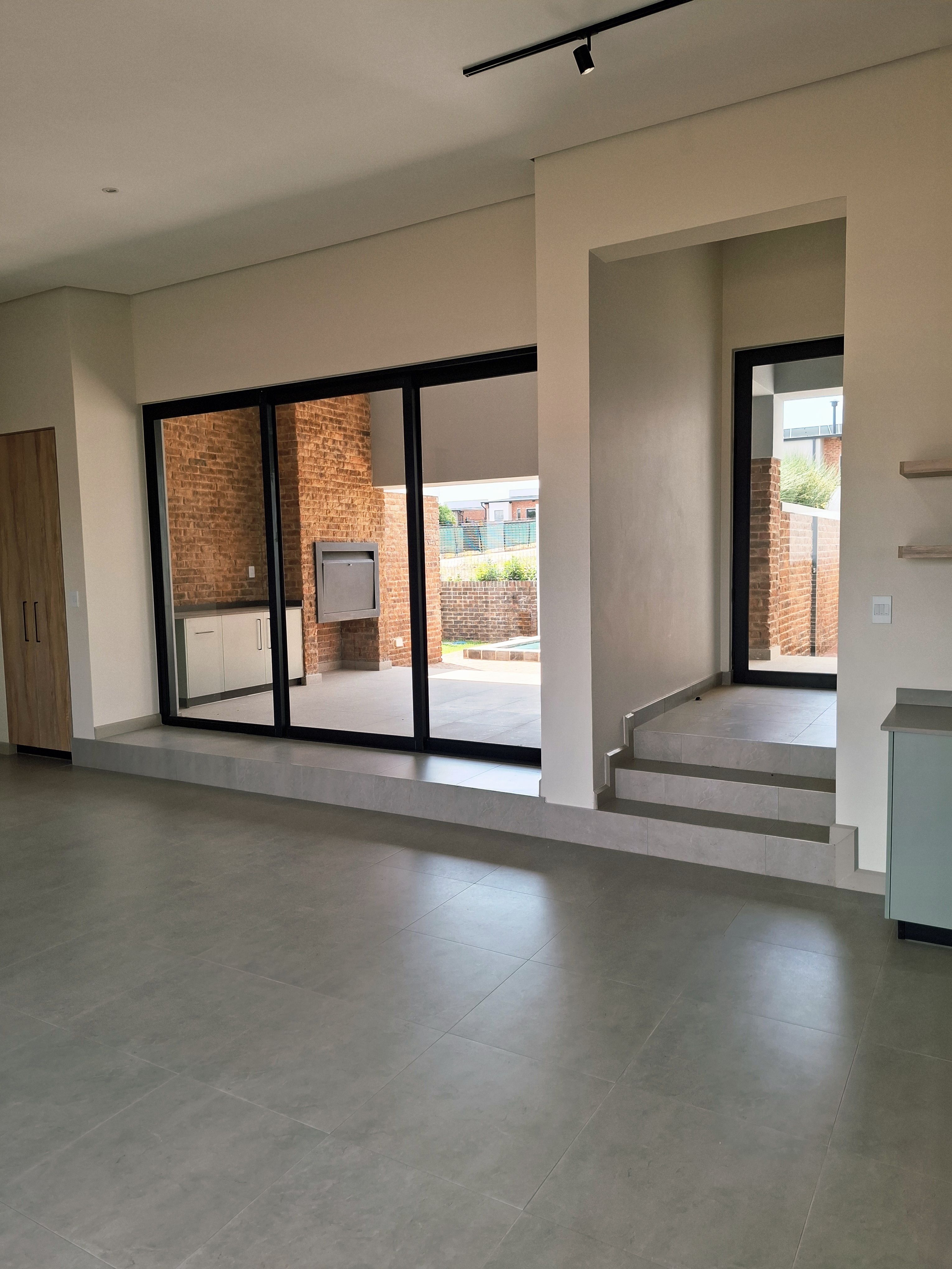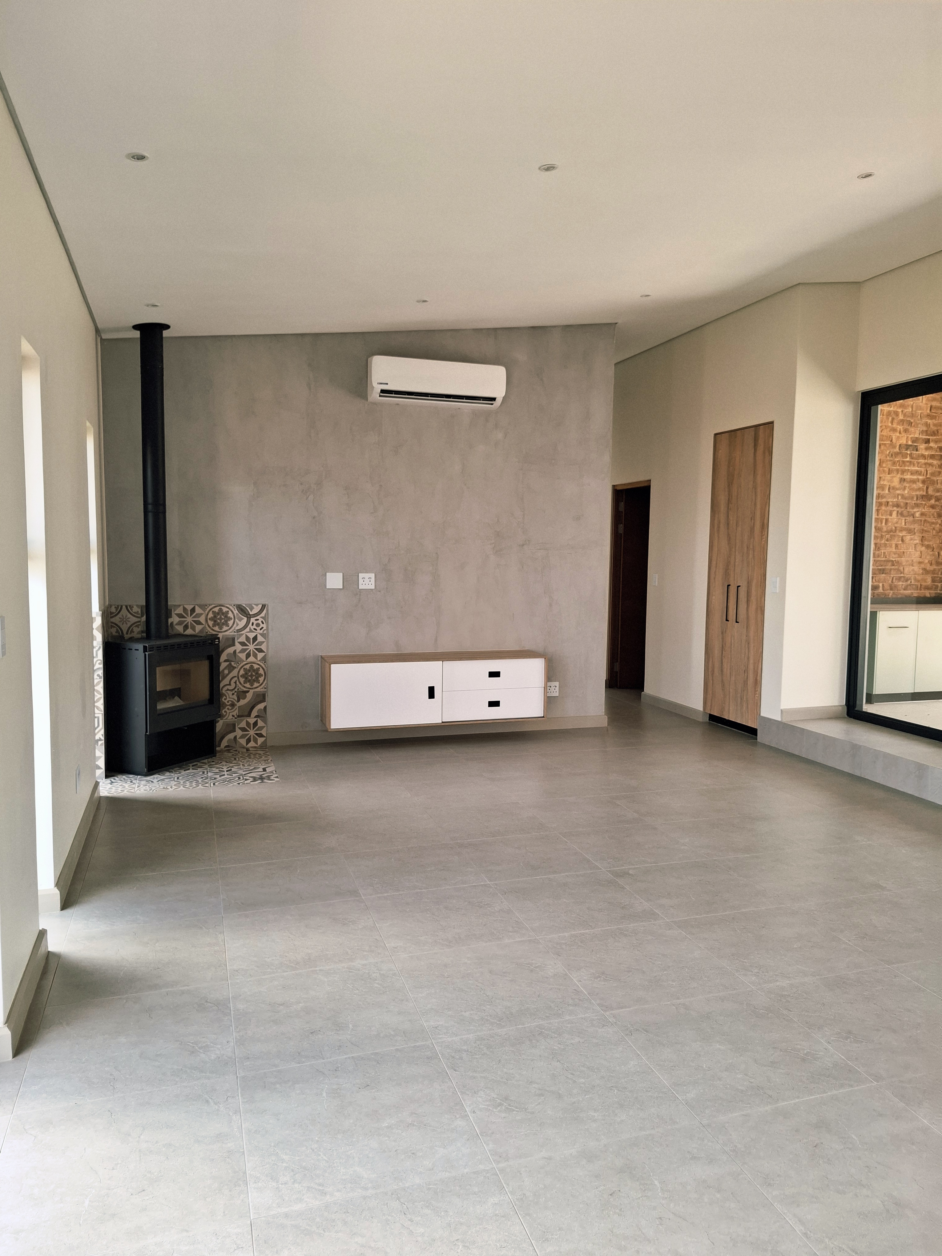 Welcome to this exquisite, newly built 3-bedroom home with in house garden, offering the perfect balance of elegance, comfort, and modern convenience. Designed with attention to detail, this upmarket residence is ideal for tenants seeking a stylish and secure lifestyle in a premium location. Each of the three bedrooms includes its own modern en-suite bathroom, providing ultimate privacy and luxury. The open-plan kitchen and living area showcase high-end finishes and seamless flow onto a covered patio with a built-in braai — perfect for effortless indoor-outdoor living and entertaining. Enjoy the sparkling swimming pool and beautifully finished outdoor area — ideal for relaxing and hosting guests. The home also features; 2 x Gas Geysers 5 Burner gas stove, electric oven- Gas bottles will be supplied. Aircon in main bedroom and living area Slow combustion fireplace 5 KVA Inverter with Battery and 5 solar panels Water filtration for household use in scullery/kitchen Contact me today for a viewing!