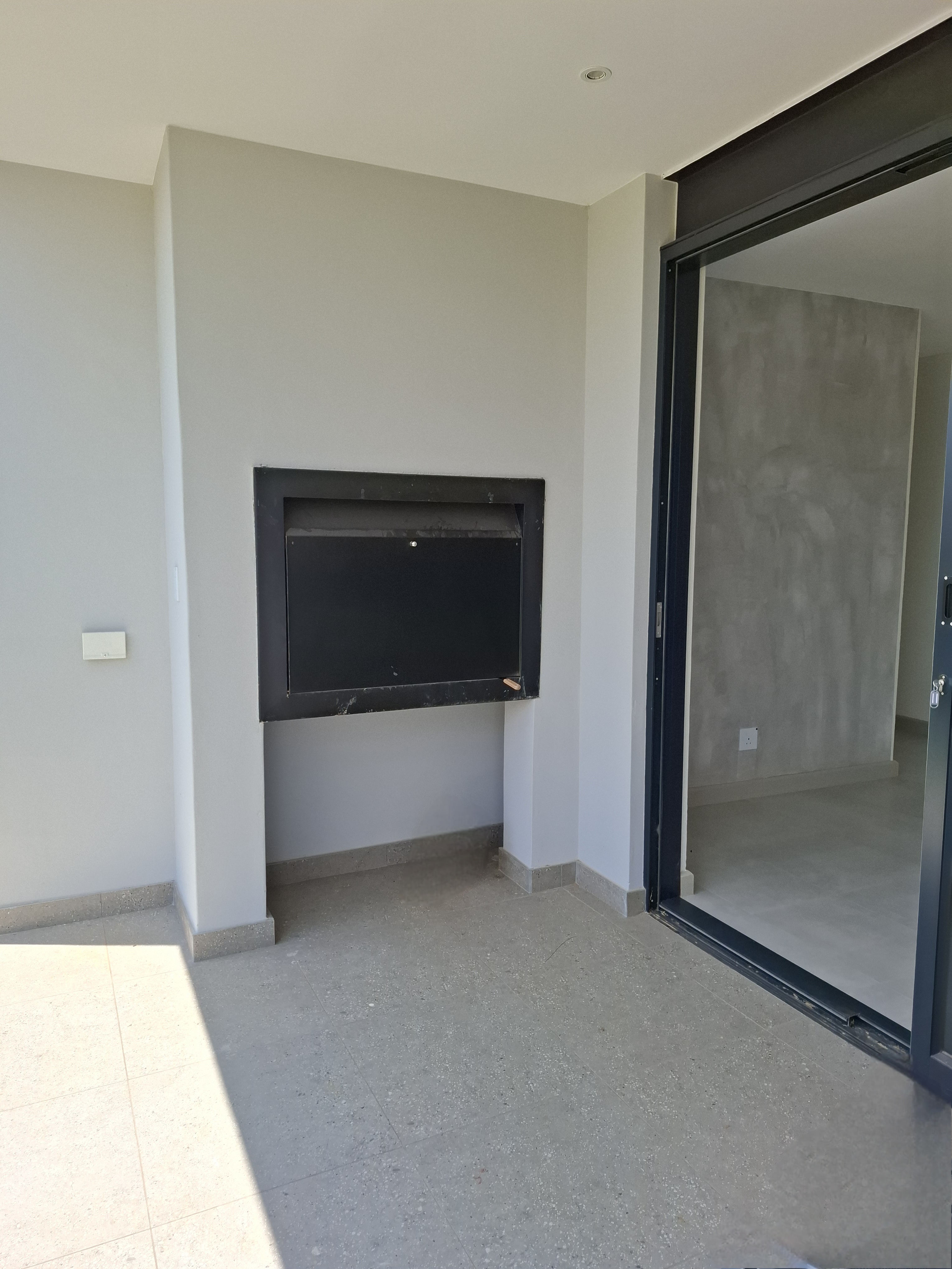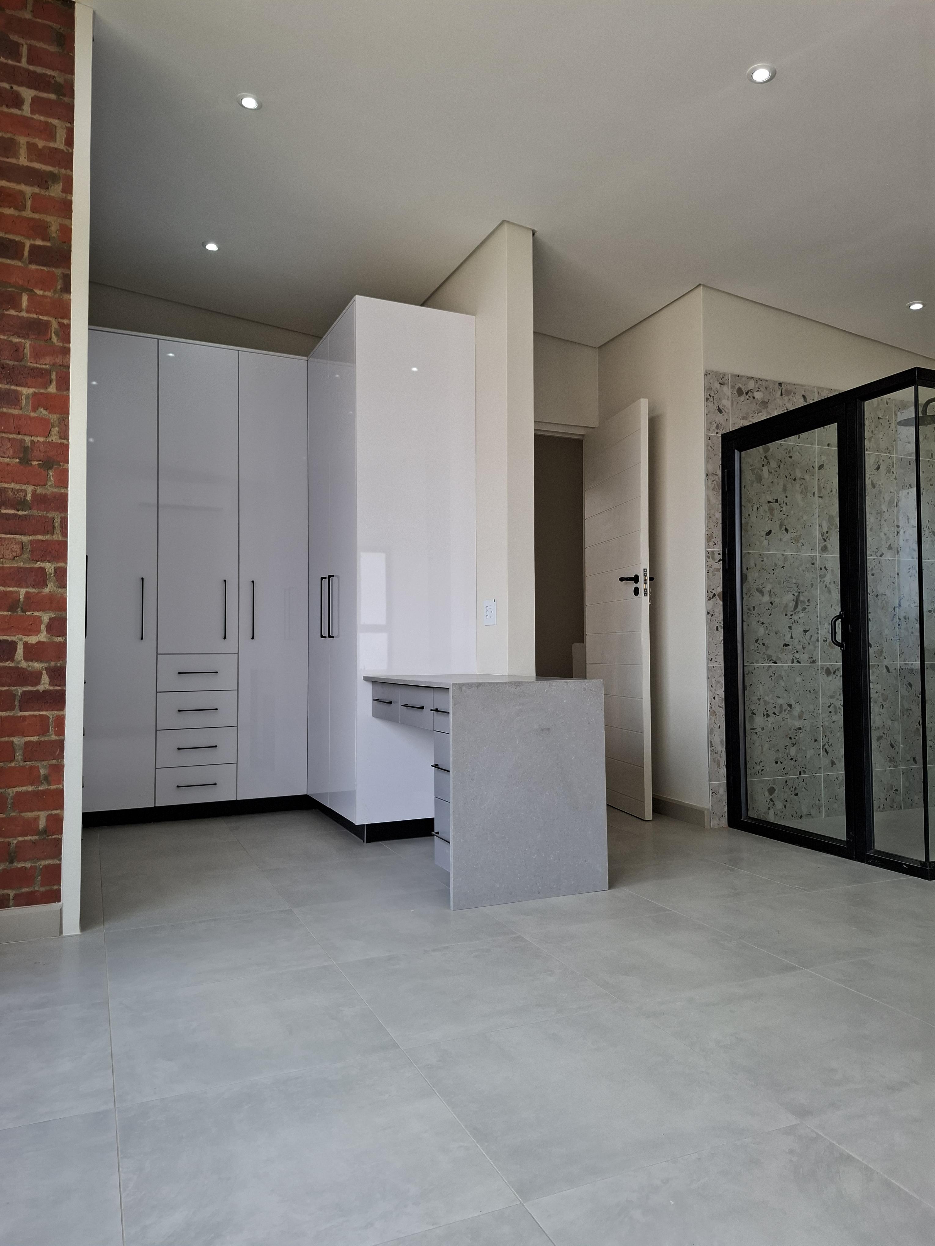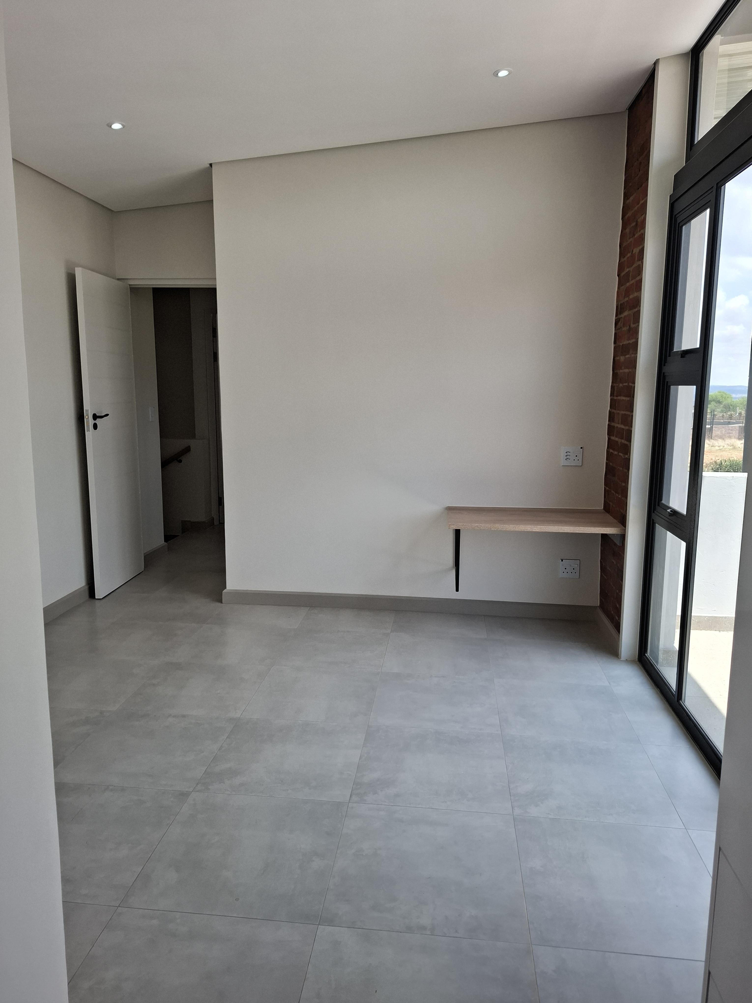 Ideal for tenants seeking upmarket living in a secure and peaceful environment. Upstairs, you’ll find two beautifully designed bedrooms and a study corner, perfect for working from home or extra storage space. The main bedroom features a luxurious en-suite bathroom complete with a bath, shower, toilet, and basin, as well as ample built-in cupboards. The guest bedroom upstairs includes its own bathroom with bath, toilet, and basin, and opens onto a private balcony — a perfect spot to enjoy morning coffee or unwind at sunset. Downstairs, a third bedroom offers its own bathroom with shower and basin, ideal for guests or family members preferring ground-floor access. The open-plan living area flows effortlessly into a modern kitchen with sleek finishes, leading out to a covered patio with a built-in braai — perfect for entertaining. No Pets No Smoking