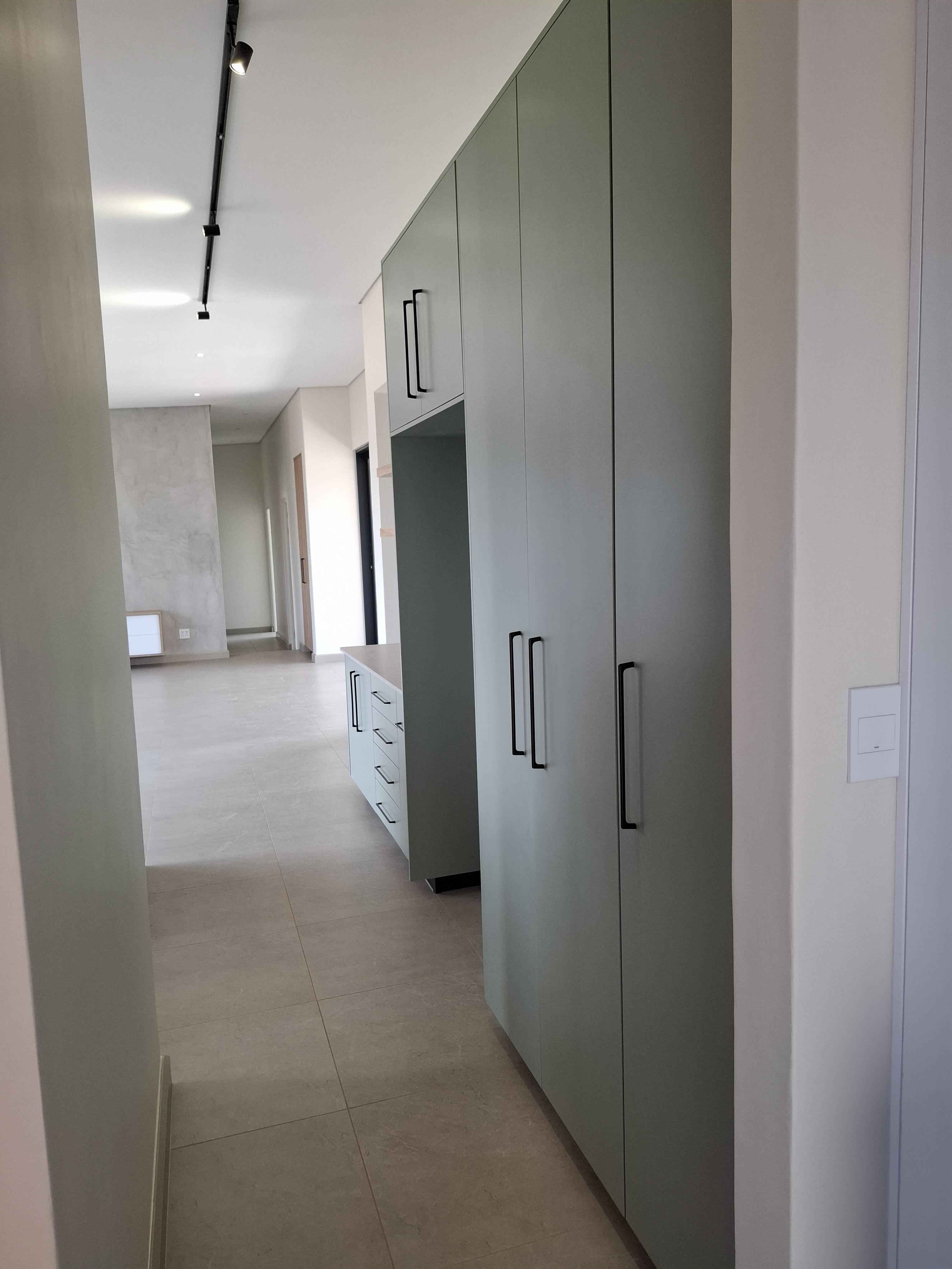 Welcome to this exquisite, newly built 3-bedroom home, offering the perfect balance of elegance, comfort, and modern convenience. Designed with attention to detail, this upmarket residence is ideal for tenants seeking a stylish and secure lifestyle in a premium location. Each of the three bedrooms includes its own modern en-suite bathroom, providing ultimate privacy and luxury. The open-plan kitchen and living area showcase high-end finishes and seamless flow onto a covered patio with a built-in braai — perfect for effortless indoor-outdoor living and entertaining. Enjoy the sparkling swimming pool and beautifully finished outdoor area — ideal for relaxing and hosting guests. The home also features solar panels and an inverter system, ensuring energy efficiency and uninterrupted power. Property Features: 3 Bedrooms – all with en-suite bathrooms Open-plan kitchen and lounge with premium finishes Covered patio with built-in braai Swimming pool Solar panels & inverter system Brand new, modern, and upmarket No Smoking No Pets This pristine home offers sophisticated living with a touch of luxury — perfect for professionals or couples who value quality, style, and peace of mind.