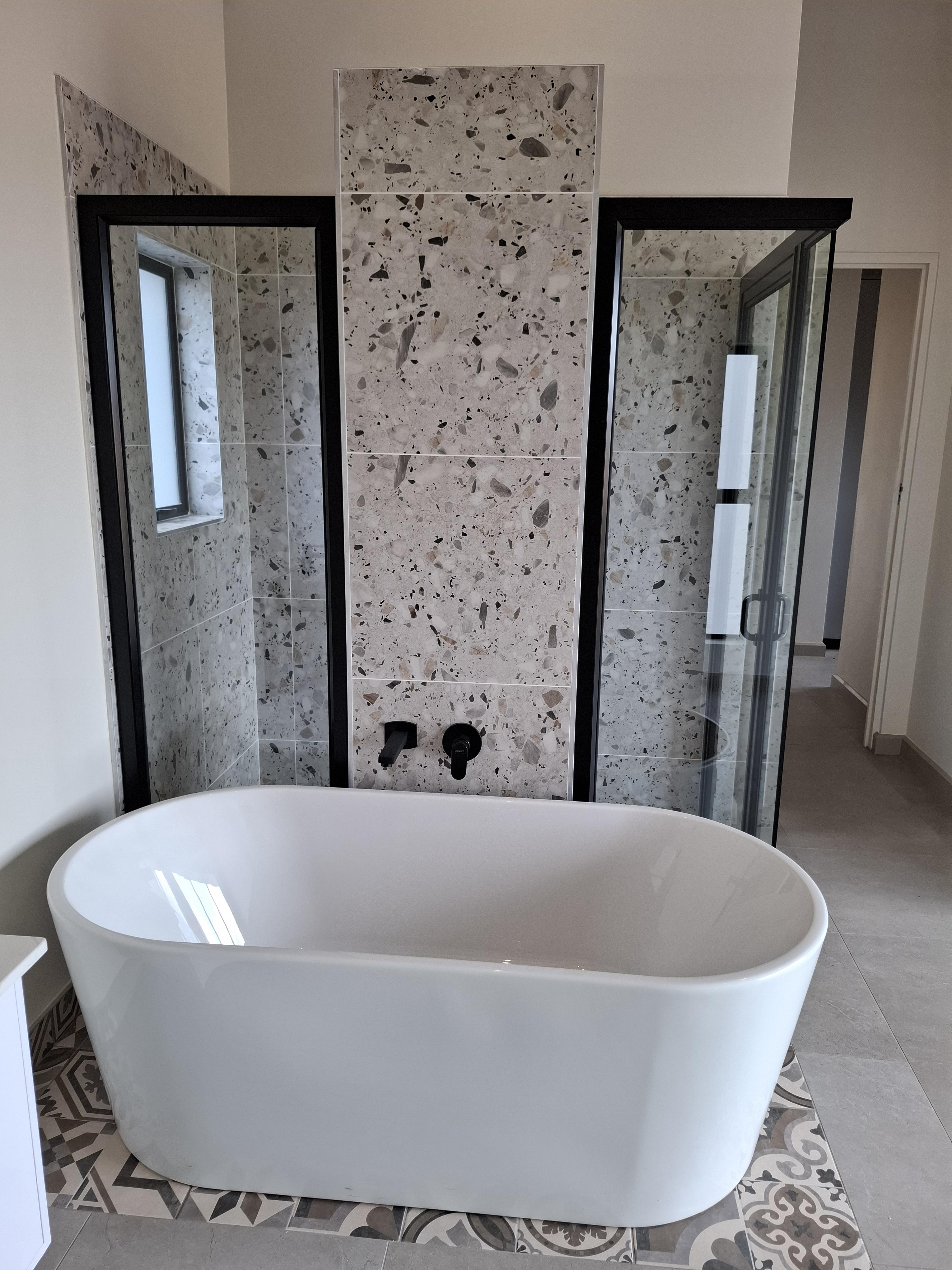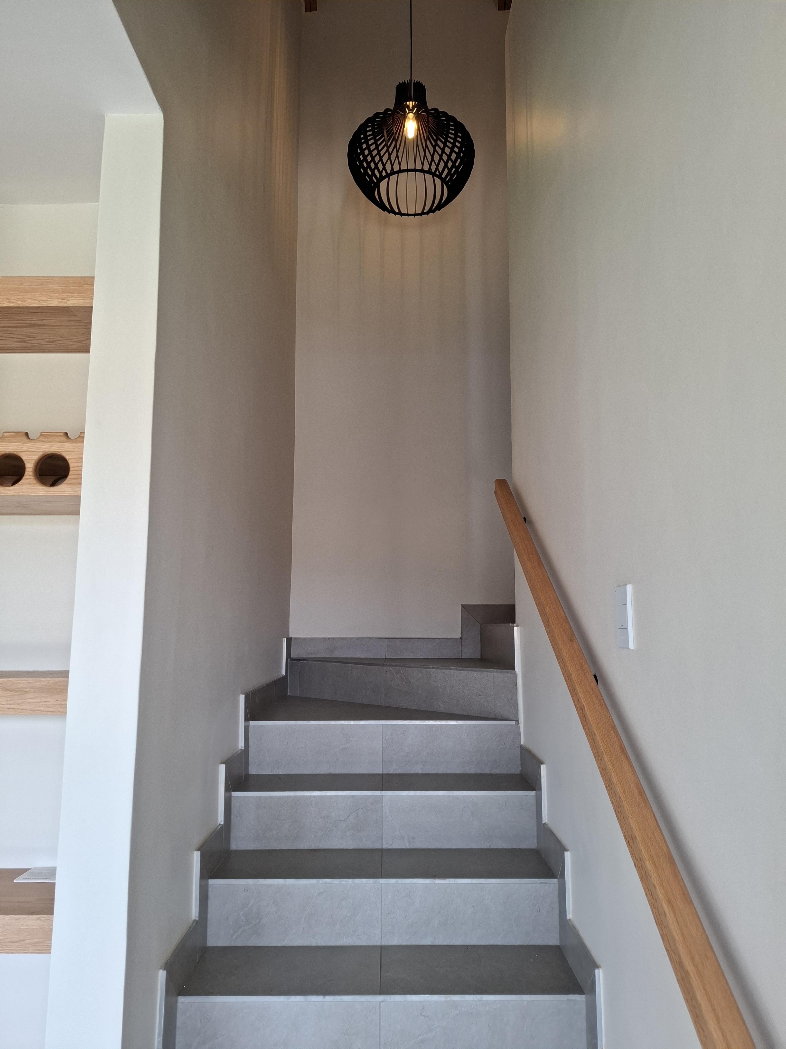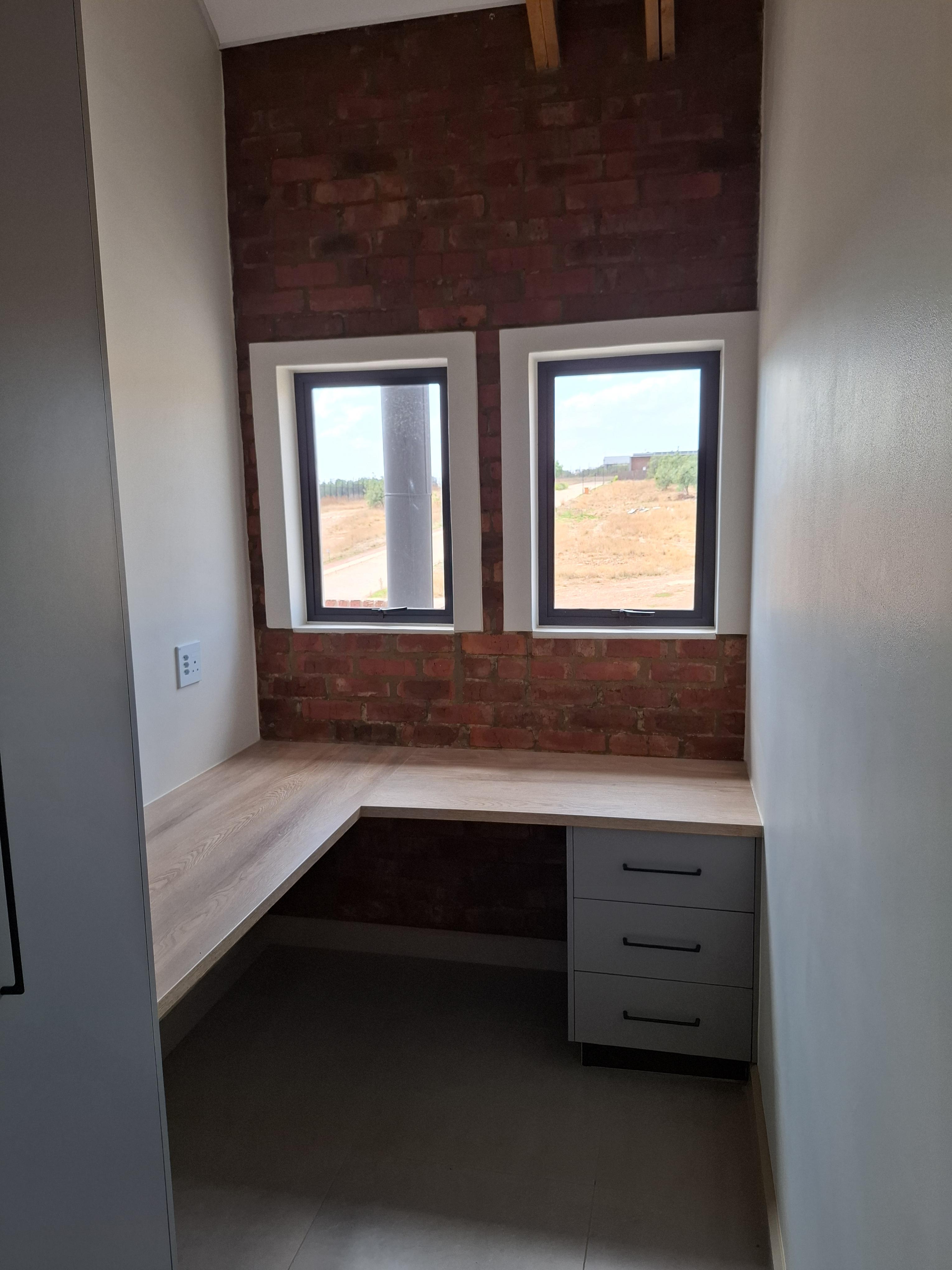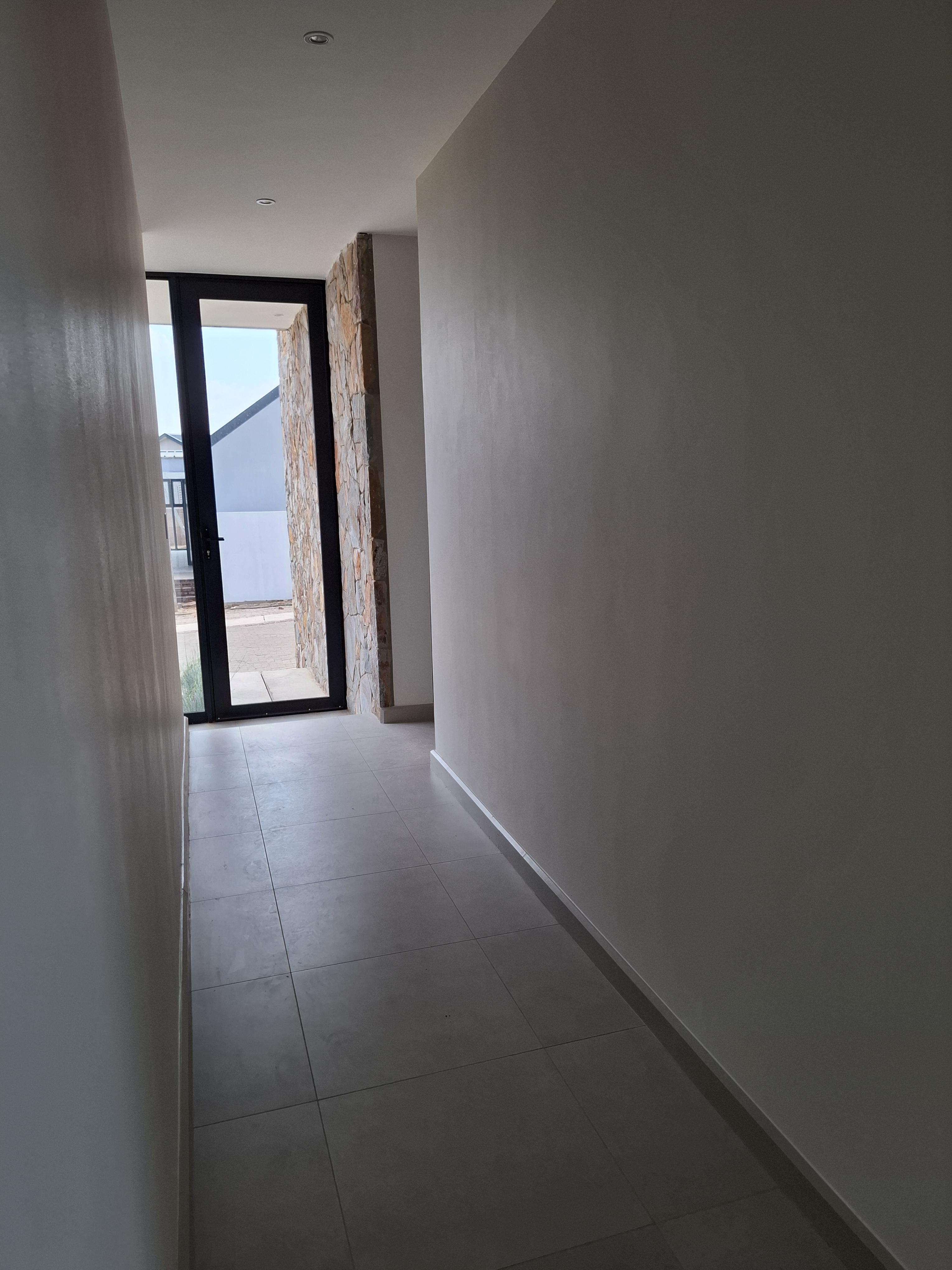 This brand-new, double-storey home offers the perfect combination of modern design, space, and comfort — ideal for tenants seeking upmarket living in a secure and peaceful environment. Upstairs, you’ll find two beautifully designed bedrooms and a study corner, perfect for working from home or extra storage space. The main bedroom features a luxurious en-suite bathroom complete with a bath, shower, toilet, and basin, as well as ample built-in cupboards. The guest bedroom upstairs includes its own bathroom with bath, toilet, and basin, and opens onto a private balcony — a perfect spot to enjoy morning coffee or unwind at sunset. Downstairs, a third bedroom offers its own bathroom with shower and basin, ideal for guests or family members preferring ground-floor access. The open-plan living area flows effortlessly into a modern kitchen with sleek finishes, leading out to a covered patio with a built-in braai — perfect for entertaining. The home is complemented by solar panels, and an inverter system, ensuring comfort and energy efficiency throughout the year. Property Features: Double-storey home with premium finishes 3 Bedrooms – all with private bathrooms Main bedroom (en-suite with bath, shower, toilet & basin) Guest bedroom (bath, toilet & basin) with balcony Ground-floor bedroom (shower & basin) Upstairs study corner Open-plan living area & modern kitchen Covered patio with built-in braai Solar panels & inverter system No Pets No Smoking This upmarket home combines style, comfort, and functionality — ideal for those who appreciate modern architecture, clean lines, and a peaceful lifestyle.