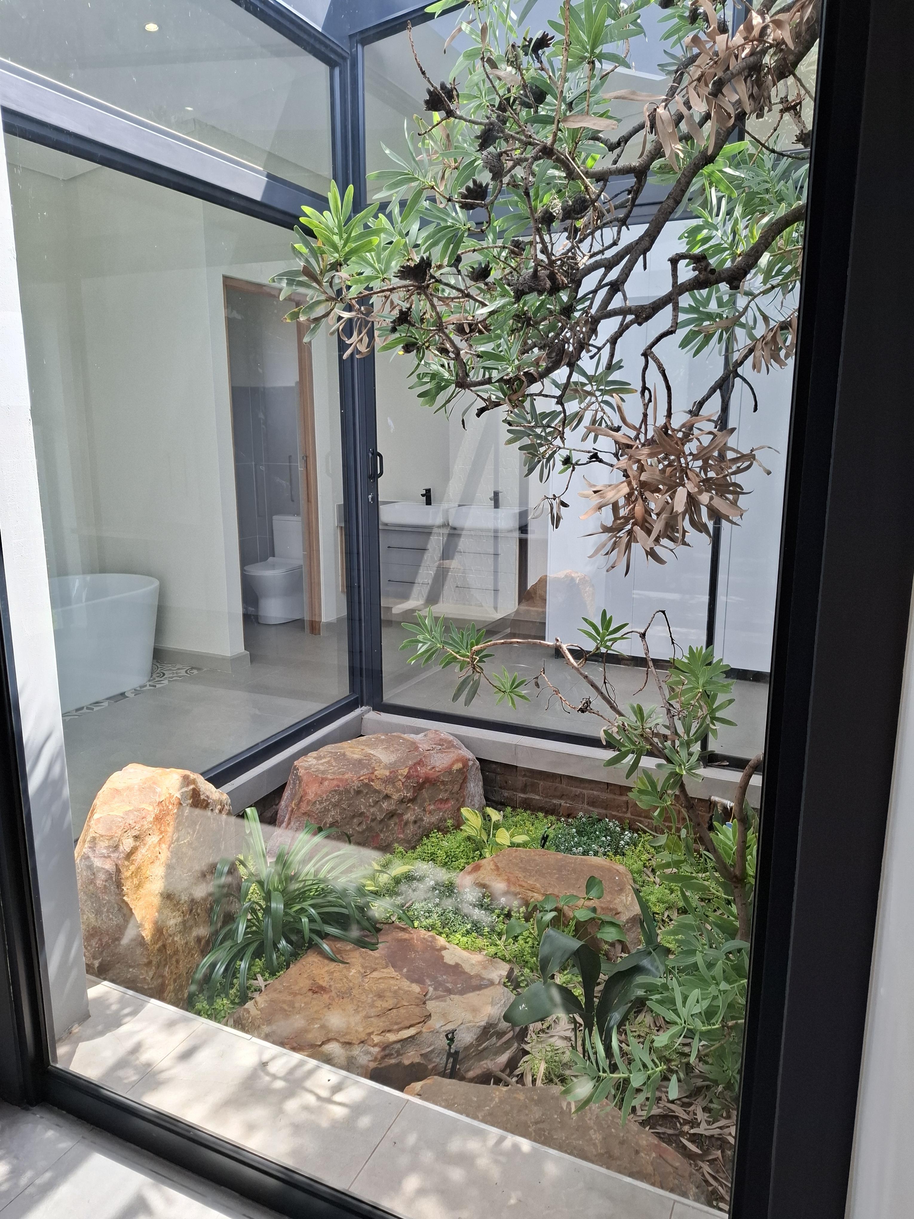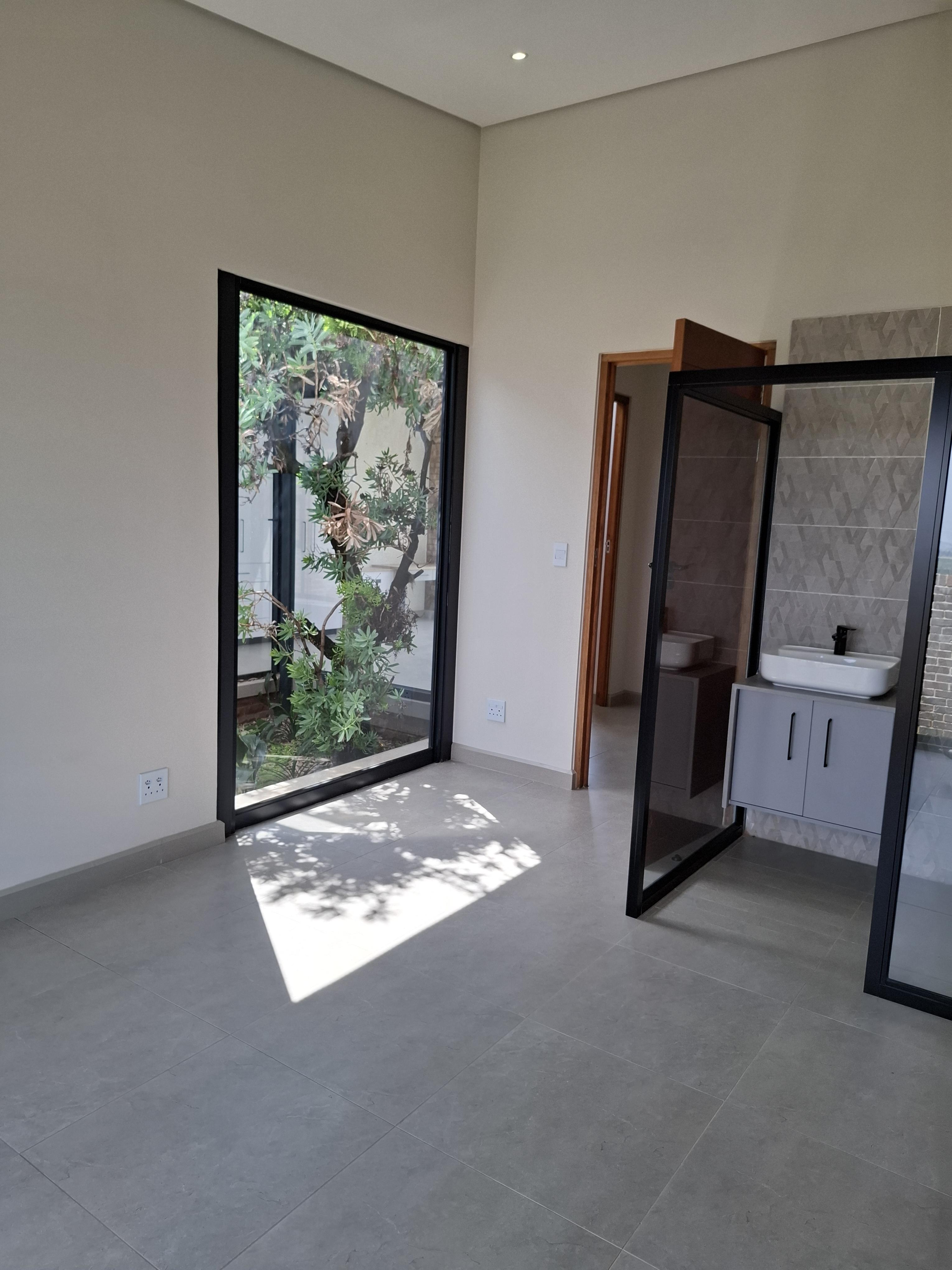 Welcome to this exquisite, newly built 3-bedroom home with in house garden, offering the perfect balance of elegance, comfort, and modern convenience. Designed with attention to detail, this upmarket residence is ideal for tenants seeking a stylish and secure lifestyle in a premium location. Each of the three bedrooms includes its own modern en-suite bathroom, providing ultimate privacy and luxury. The open-plan kitchen and living area showcase high-end finishes and seamless flow onto a covered patio with a built-in braai — perfect for effortless indoor-outdoor living and entertaining. Enjoy the sparkling swimming pool and beautifully finished outdoor area — ideal for relaxing and hosting guests. The home also features solar panels and an inverter system, ensuring energy efficiency and uninterrupted power. Property Features: 3 Bedrooms – all with en-suite bathrooms Open-plan kitchen and lounge with premium finishes Covered patio with built-in braai Swimming pool Solar panels & inverter system Brand new, modern, and upmarket No Smoking No Pets This pristine home offers sophisticated living with a touch of luxury — perfect for professionals or couples who value quality, style, and peace of mind.