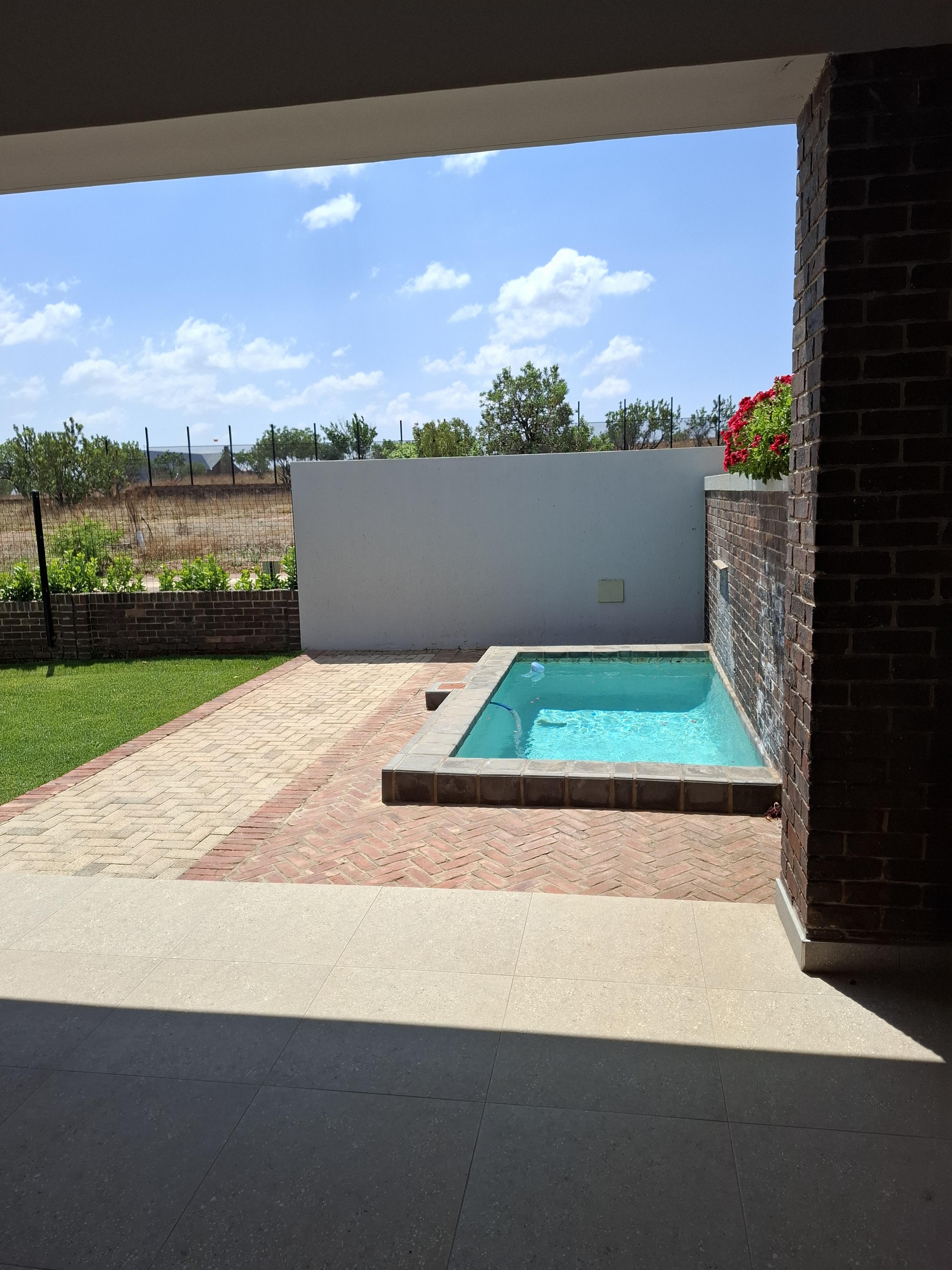This immaculate property is located in the secure and eco-friendly Helderzicht Eco Estate, ideally situated near the North-West University, Vyfhoek Shopping Centre, fuel station, and local gym facilities. The home offers three spacious bedrooms, each with its own en-suite bathroom. The main bedroom features an air-conditioner, bath, shower, basin, and toilet, while the two additional bedrooms each include a shower and basin. The open-plan living area is fitted with an air-conditioner and opens to a built-in braai and swimming pool, creating the perfect setting for indoor and outdoor entertainment. Designed with energy efficiency in mind, the home includes two gas heaters, an inverter with batteries, and five solar panels. The kitchen is equipped with a gas stove and electric oven, and the property operates on prepaid electricity. Please note: No pets and no smoking are permitted. This property is ideal for professionals, academics, or families seeking a secure, modern, and sustainable lifestyle in a prime location close to all major amenities.