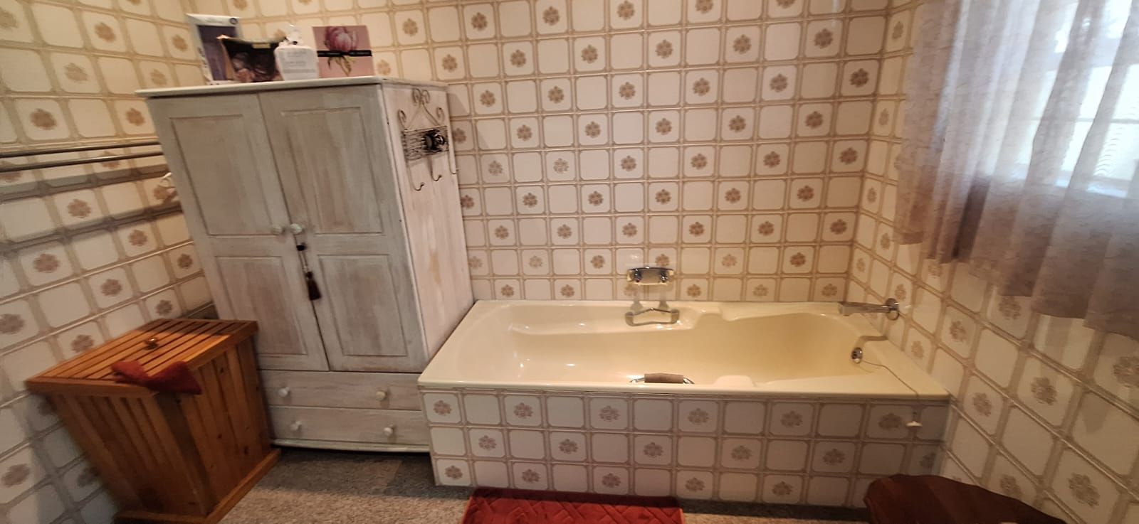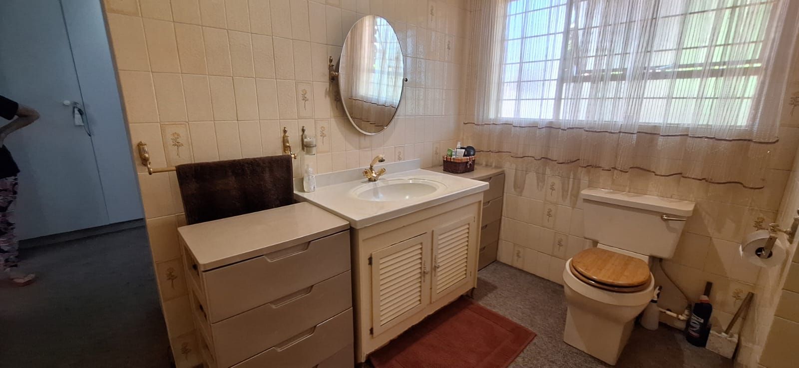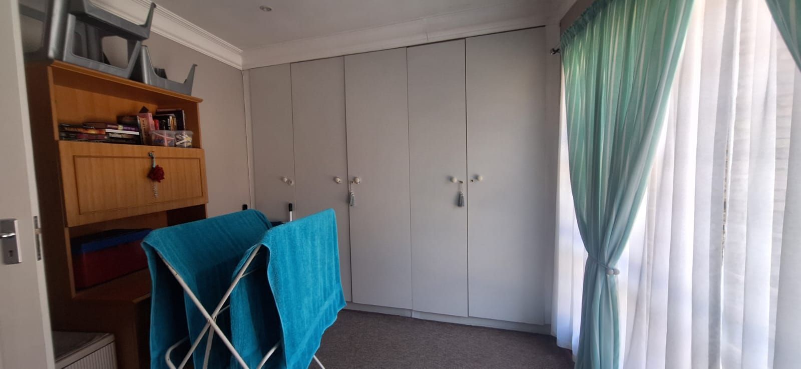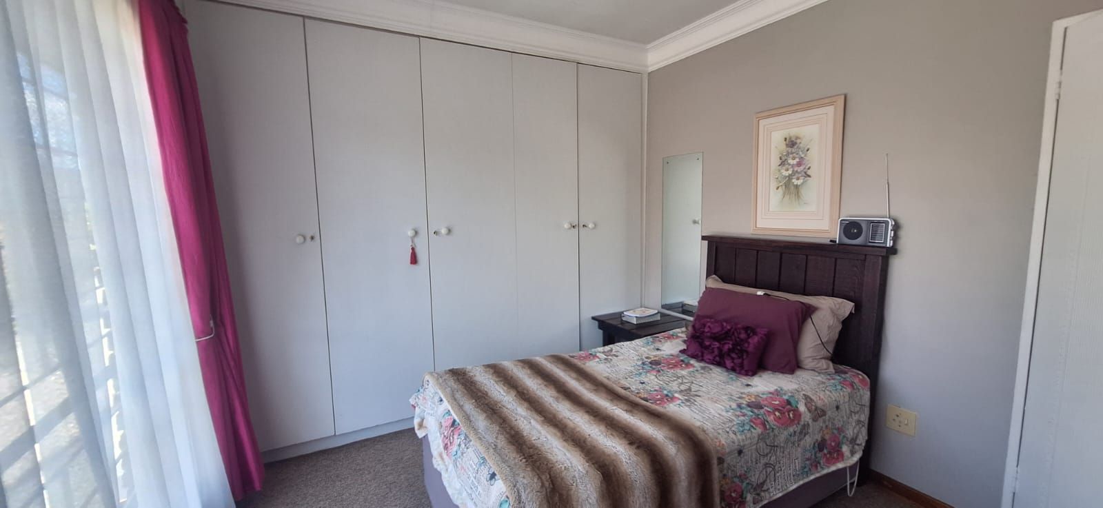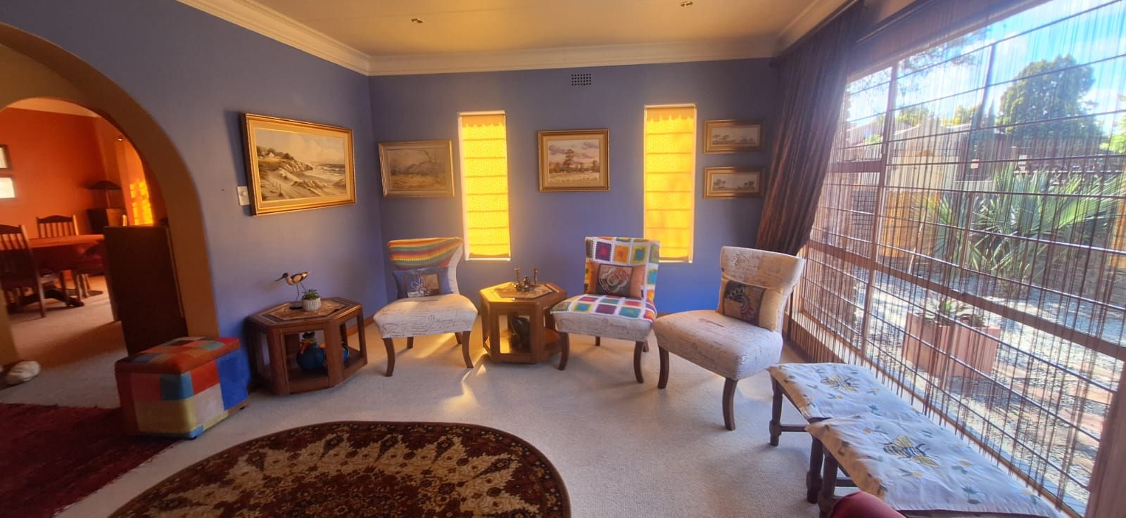 This home offers four spacious bedrooms, all fitted with built-in cupboards. The main bedroom is a true retreat, featuring a stylish en-suite bathroom with a bath, shower, toilet, and basin. The guest bathroom is neatly finished with a bath, basin, and toilet. The home is carpeted throughout, excluding the kitchen, ensuring comfort and warmth all year round.