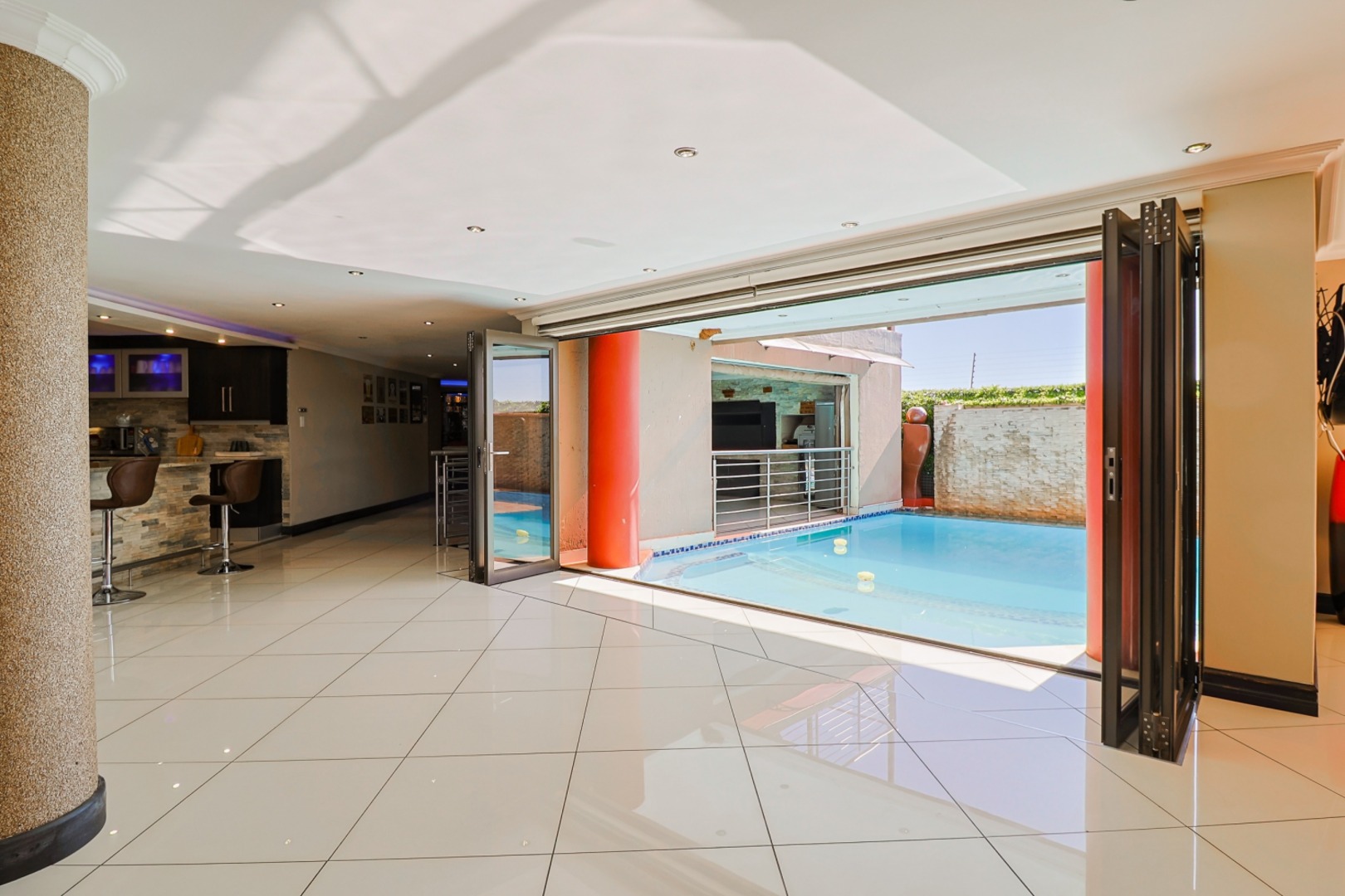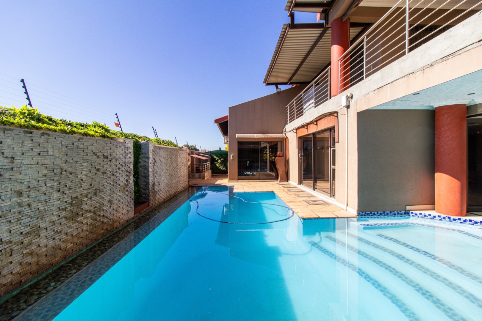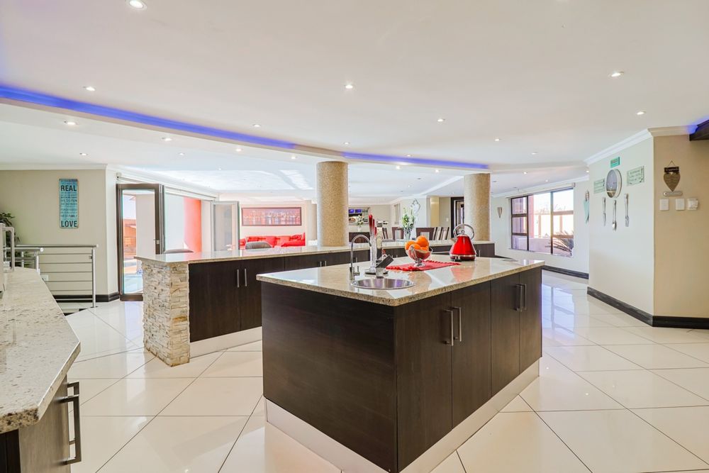 Tina Turner - Simply the best! Spacious! Unique One of a kind in Henley on Klip. Ultra-modern home for the CEO's, corporate business owners, high profile executors, entertainers or any one with expensive taste. 4 large bedrooms with en suite bathrooms. Large ultra-modern kitchen with huge open plan leading to the massive dining room, TV room, corporate bar, entertainment area and swimming pool. Separate scullery. Entertain your friends, family, business associates and clients in the fully equipped modern bar, leading into an enclosed braai area and swimming pool. Wine cellar. Cinema with quality sound system and 9 lazy boy seater and billiard room and table. Air-conditioned and under floor heating. Jacuzzi, sauna, large gym. Borehole with water softener for daily household. Finishing of quality and expensive taste. Garaging for 5 cars. Fully paved. Top security, beams and electric fencing. Established garden. Pictures and words cannot describe what this property offers. A must see. Priced well below the actual value. This luxurious, ultra-modern property with everything that you would need under one roof, is not to be find in the immediate area and at price tag that understate the true value. Close to schools, major routes like the R59 and others. 10 minutes from Meyerton CBD and 30km from JHB city centre and Vereeniging / Vanderbijlpark. Close to the well-known Oprah Winfrey Leadership Academy for Girls