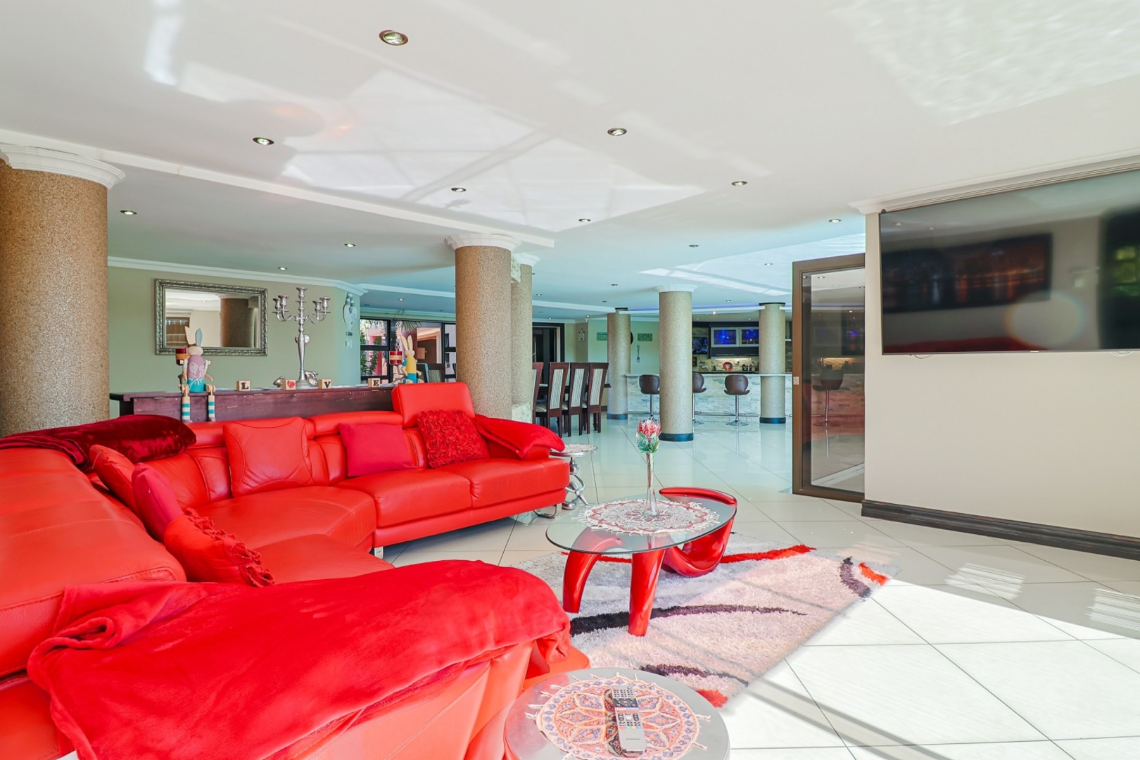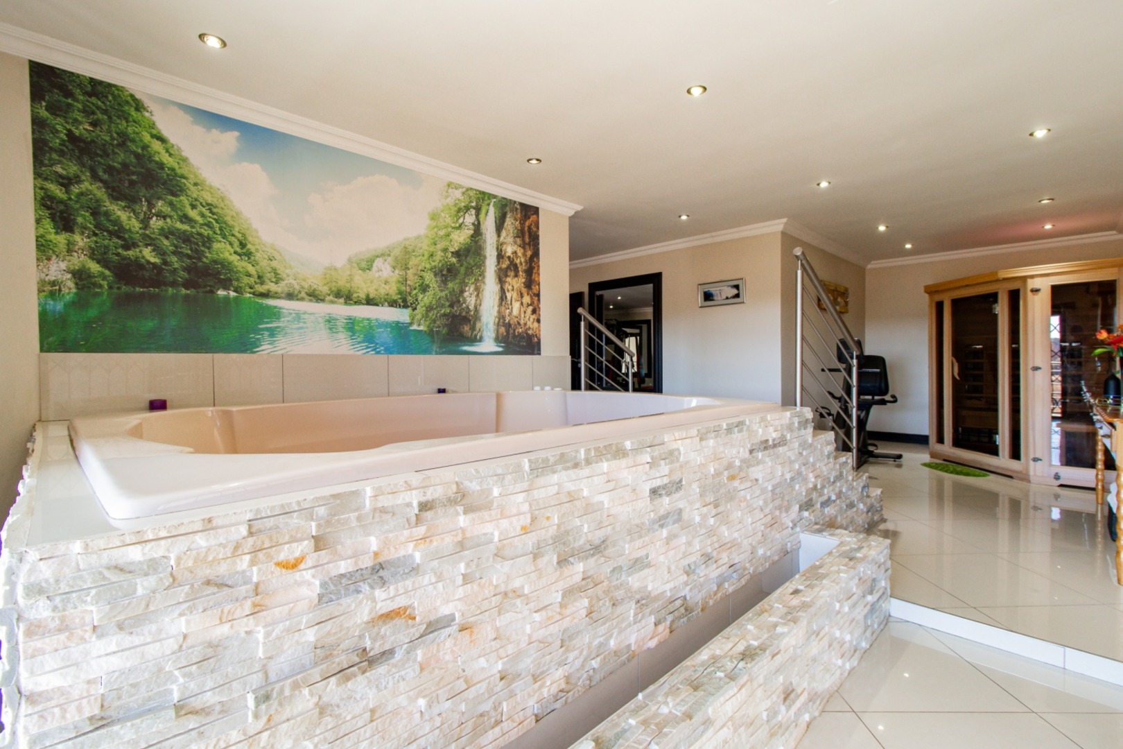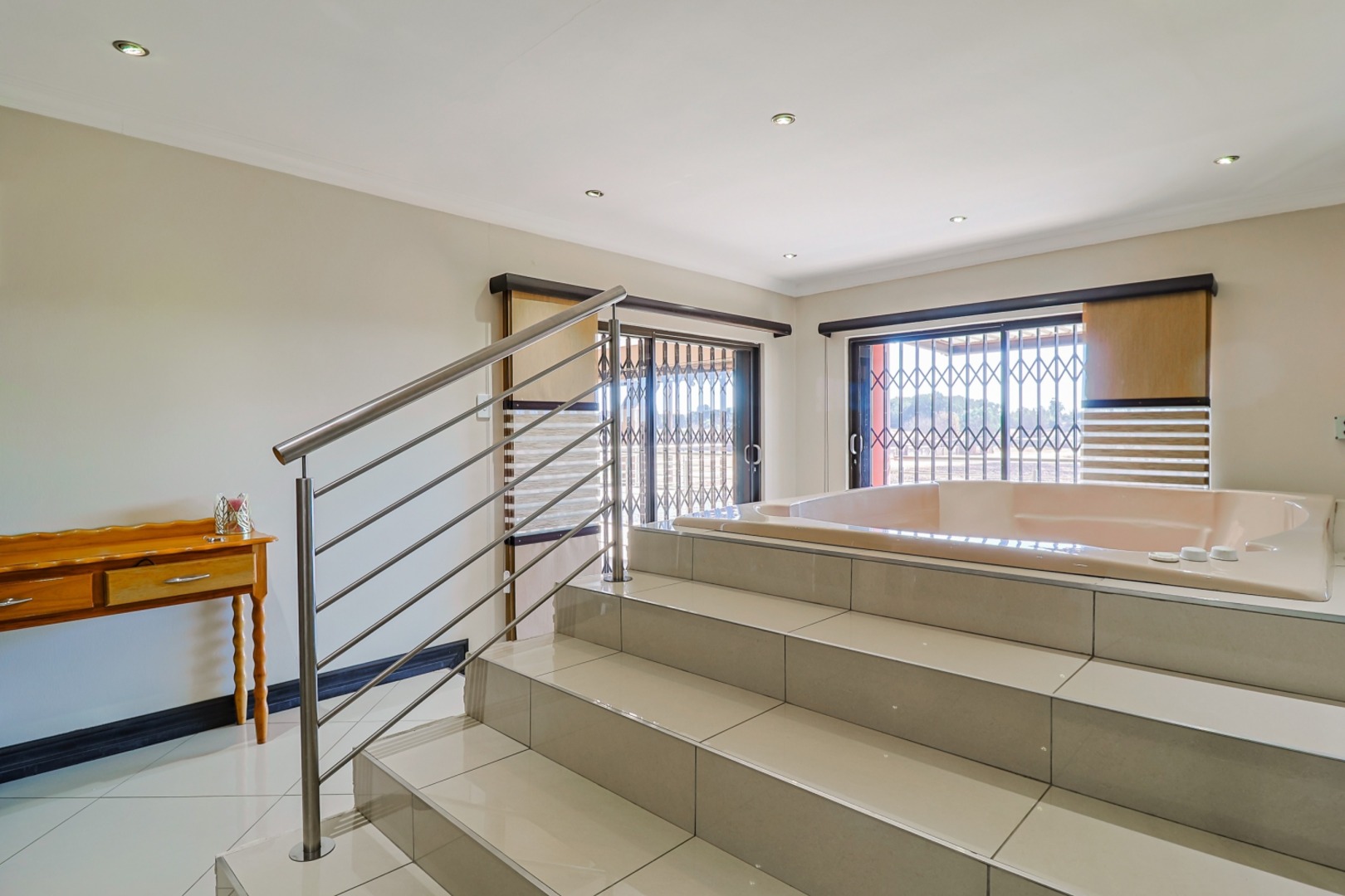 Tina Turner - Simply the best! Spacious! Unique One of a kind in Henley on Klip. Ultra-modern home for the CEO's, corporate business owners, high profile executors, entertainers or any one with expensive taste. 4 large bedrooms with en suite bathrooms. Large ultra-modern kitchen with huge open plan leading to the massive dining room, TV room, corporate bar, entertainment area and swimming pool. Separate scullery. Entertain your friends, family, business associates and clients in the fully equipped modern bar, leading into an enclosed braai area and swimming pool. Wine cellar. Cinema with quality sound system and 9 lazy boy seater and billiard room and table. Air-conditioned and under floor heating. Jacuzzi, sauna, large gym. Borehole with water softener for daily household. Finishing of quality and expensive taste. Garaging for 5 cars. Fully paved. Top security, beams and electric fencing. Established garden. Pictures and words cannot describe what this property offers. A must see. Priced well below the actual value. This luxurious, ultra-modern property with everything that you would need under one roof, is not to be find in the immediate area and at price tag that understate the true value. Close to schools, major routes like the R59 and others. 10 minutes from Meyerton CBD and 30km from JHB city centre and Vereeniging / Vanderbijlpark. Close to the well-known Oprah Winfrey Leadership Academy for Girls
