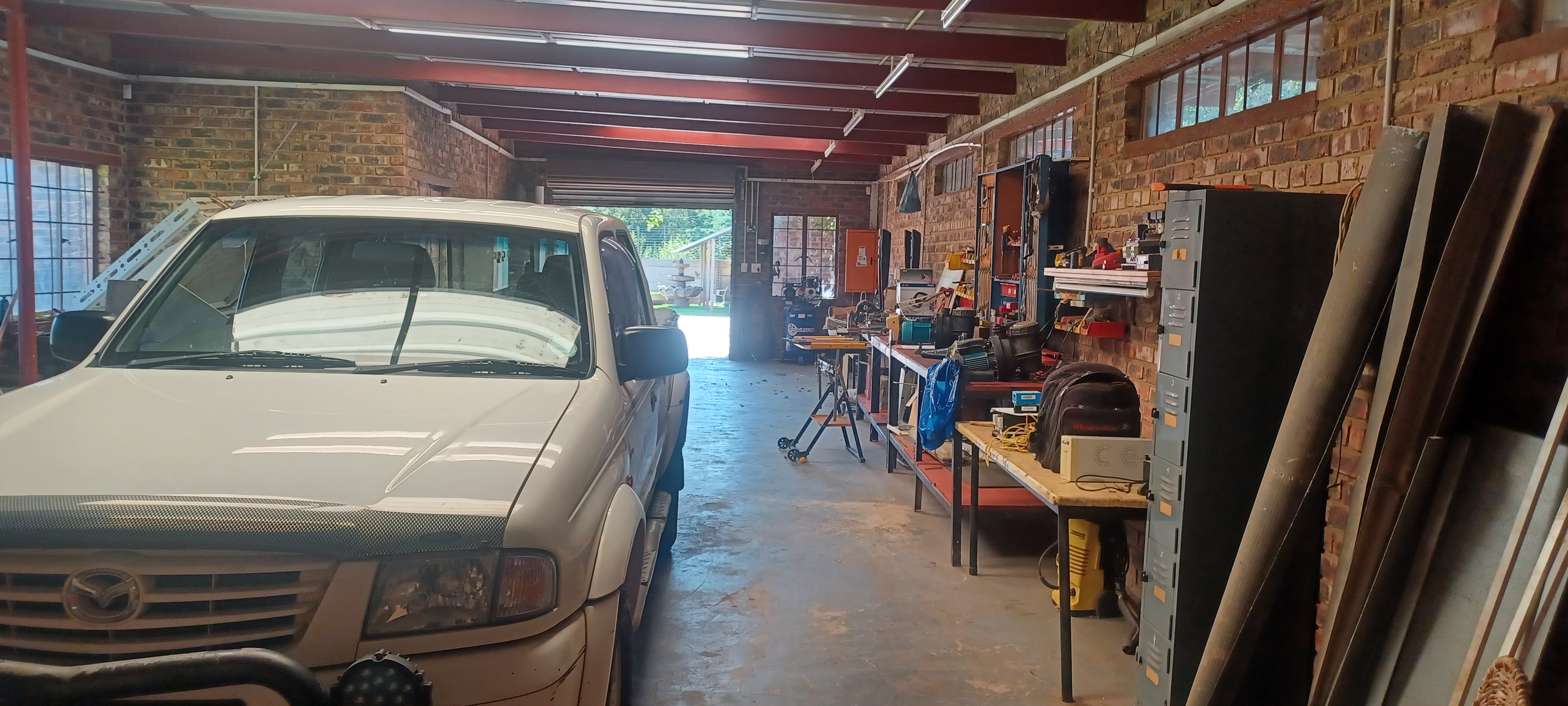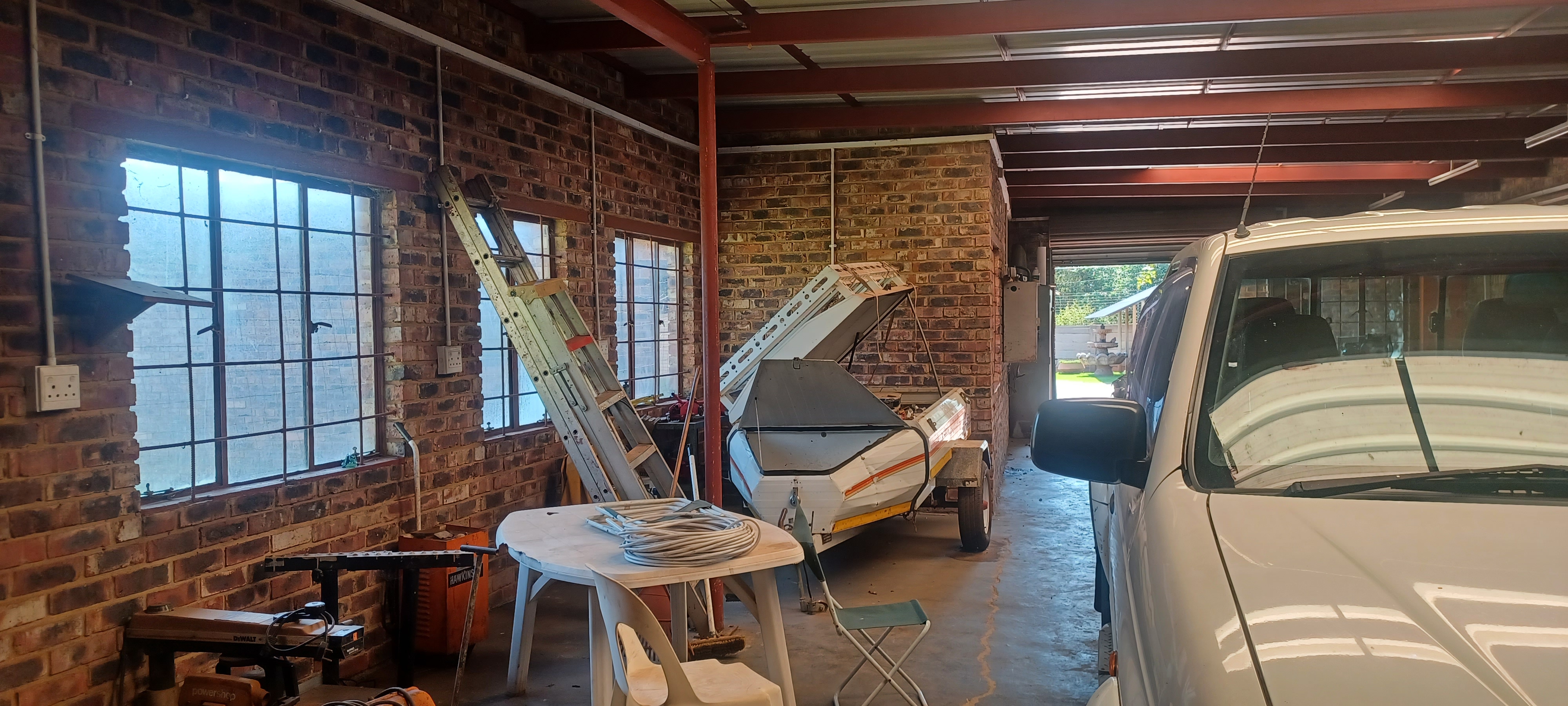 Enough parking for 3 cars, has an overhead Claw Beam and Winch. Also has lots of shelving etc.