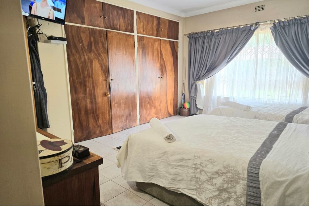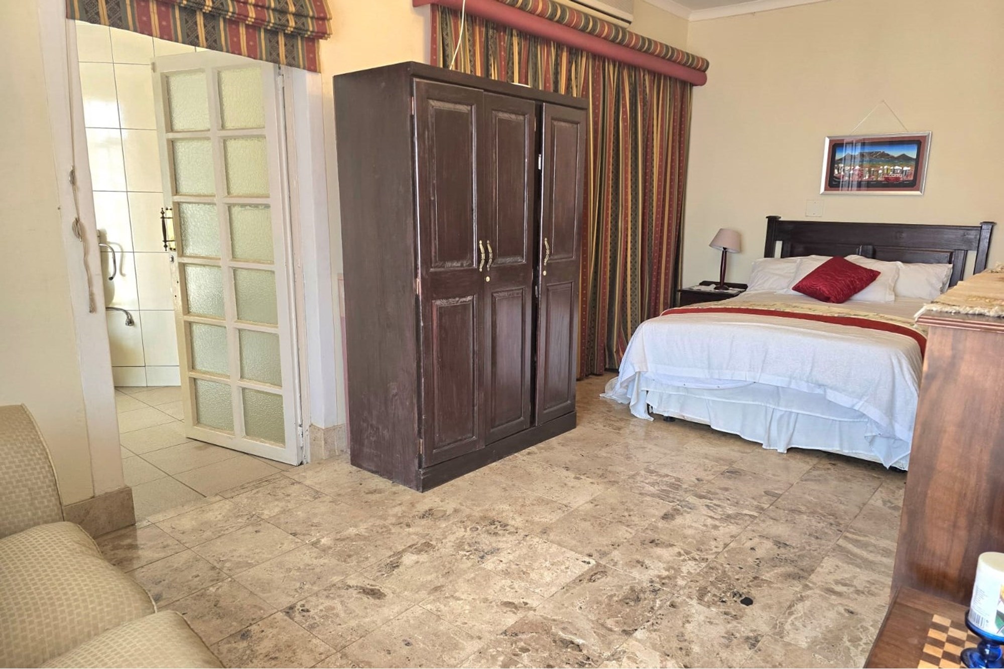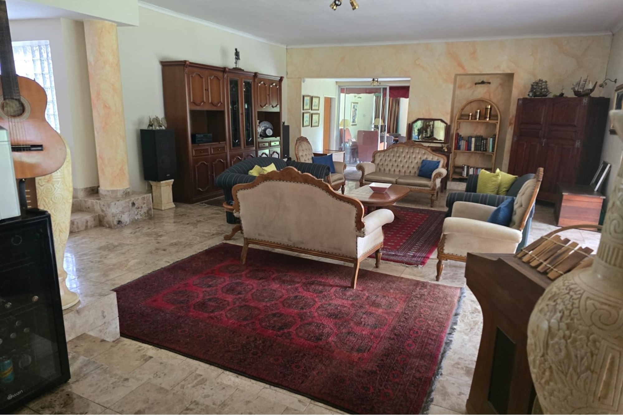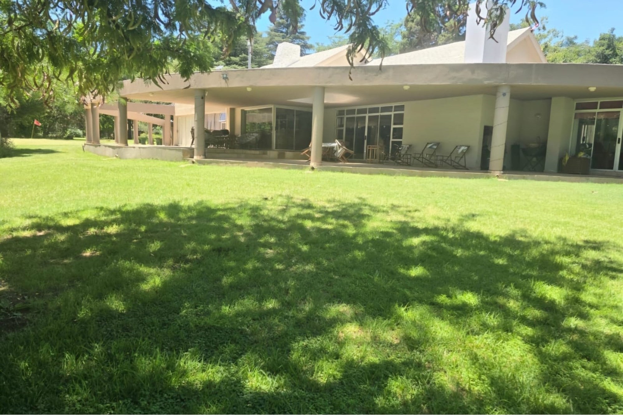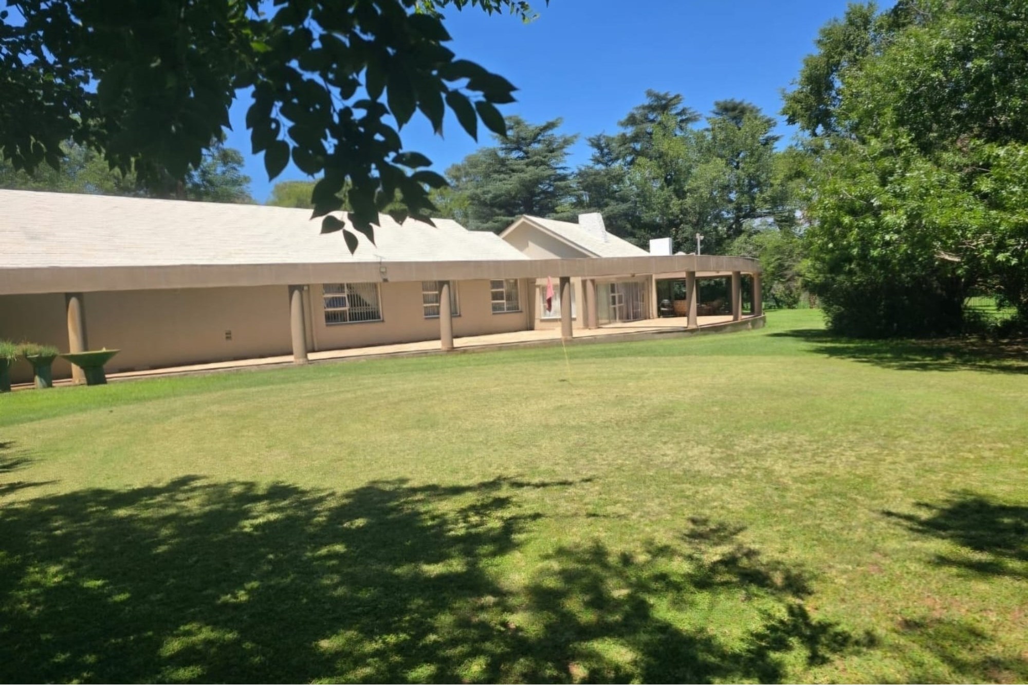 Large river front residence with amazing extra-large front patio overlooking the Klip river. The stand measures 8034m2 and is fenced with 2 entrances to the property. Inside you will find a large double- sized sunken lounge and a sunken TV room with a fireplace. The house comprises of 2 entrance halls, one leading into the lounge and entertainment areas, the other into the bedrooms. There are 4 bedrooms (2 en suite, 1 with a jacuzzi), 2 additional bathrooms, study, dining room, large bar with small lounge/dining area, office, kitchen and scullery.